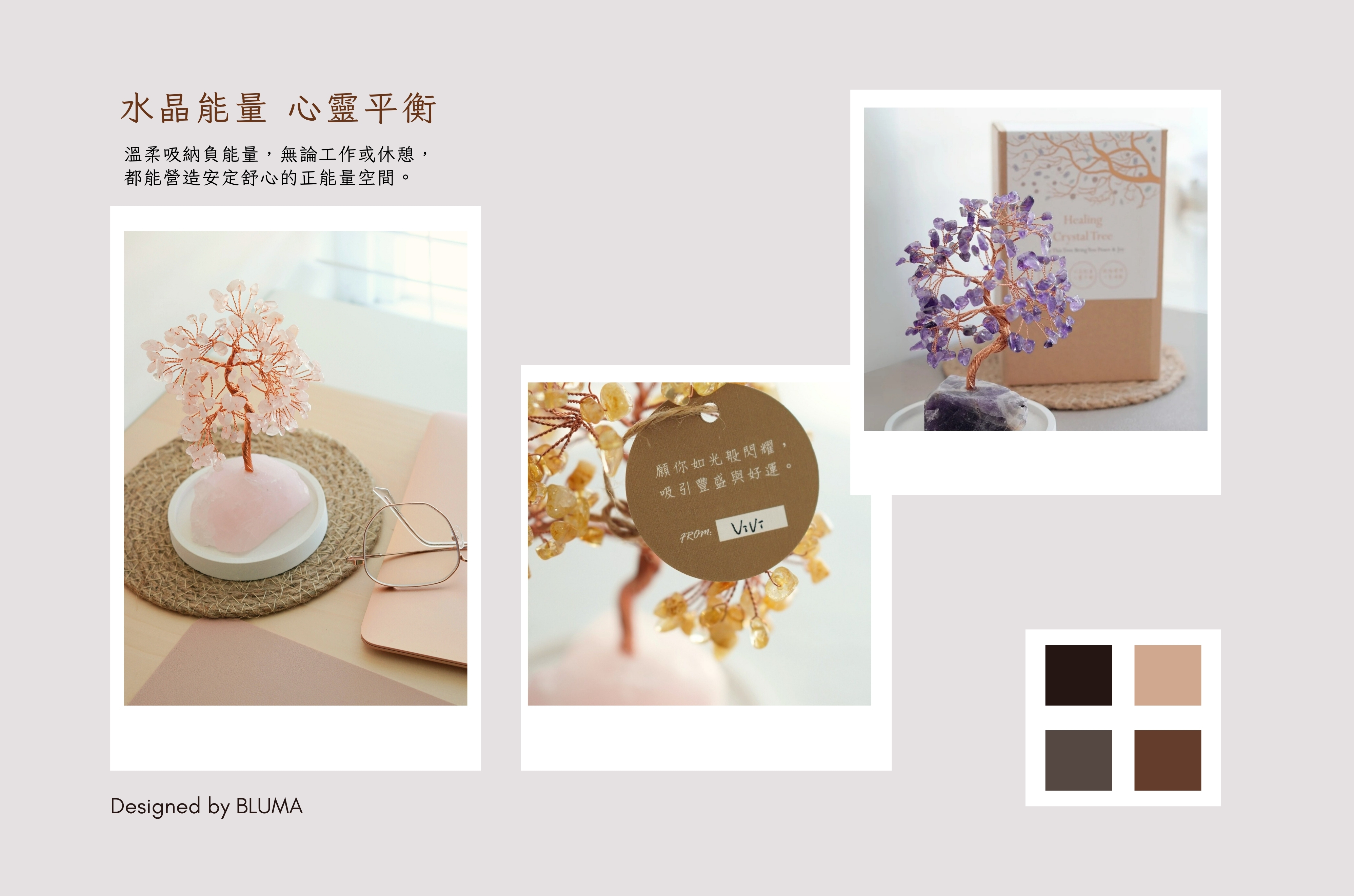 我們特別設計了五款水晶樹,每一款都代表不同的祝福,無論是送禮還是留給自己,都能成為生活裡的小確幸。