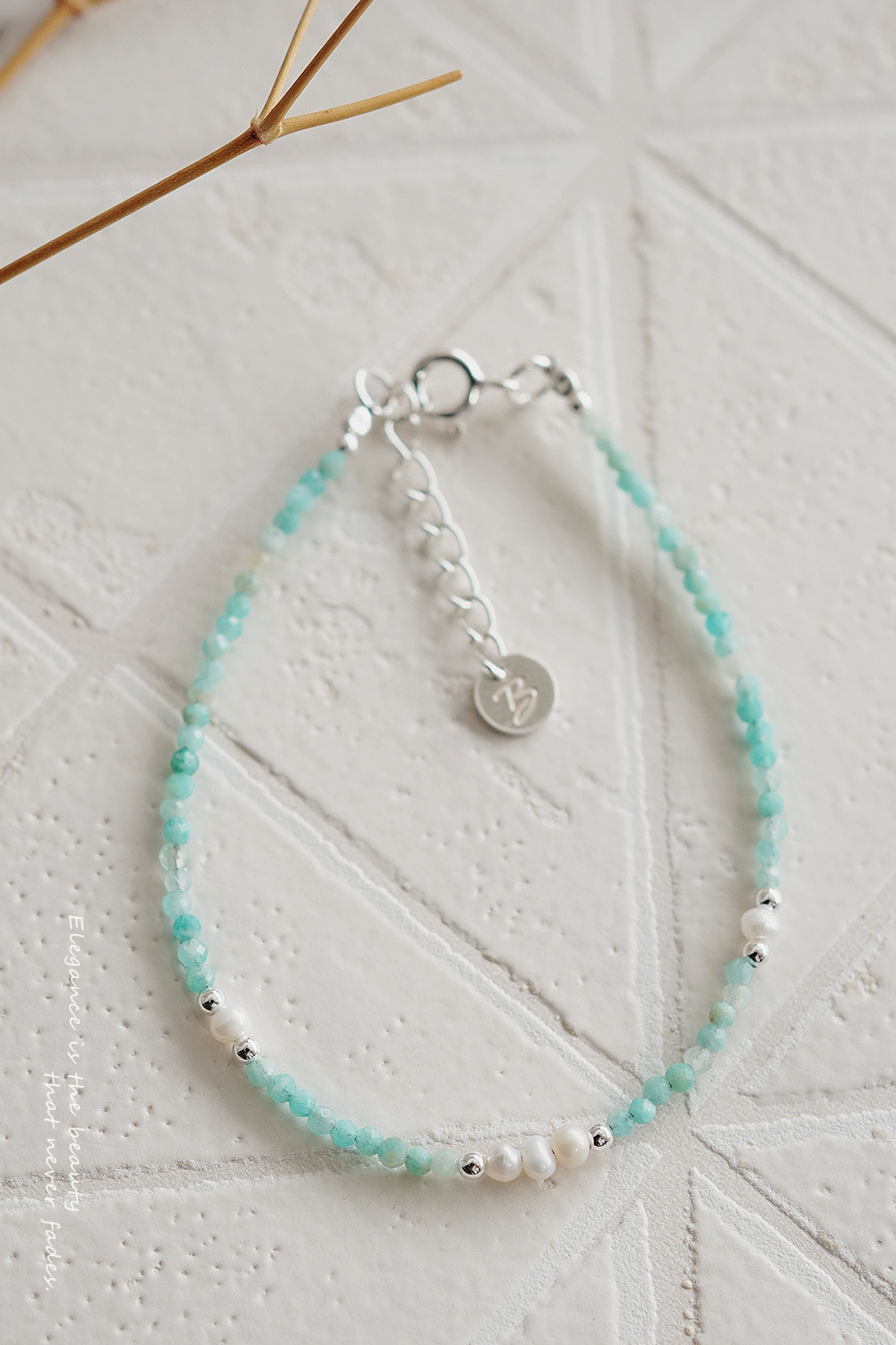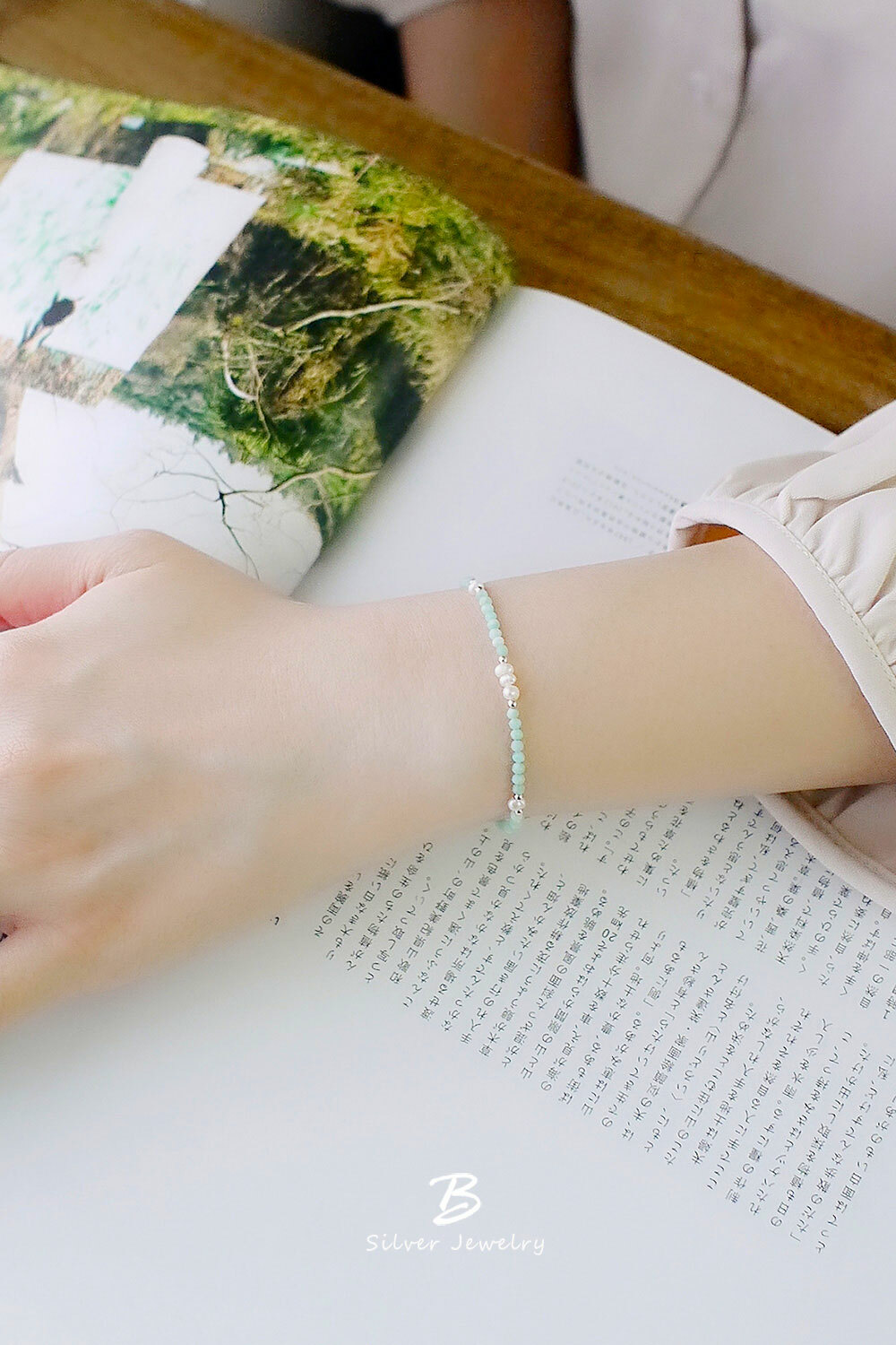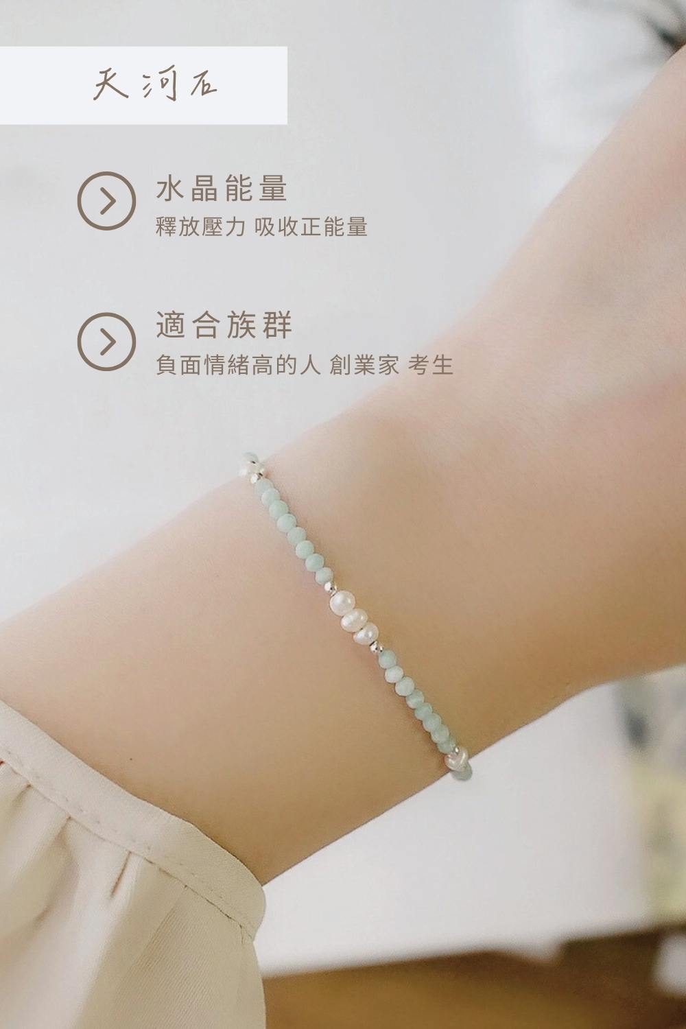 搭配淡水珍珠與925純銀珠,更加顯色,優雅別緻的點綴在手腕上。