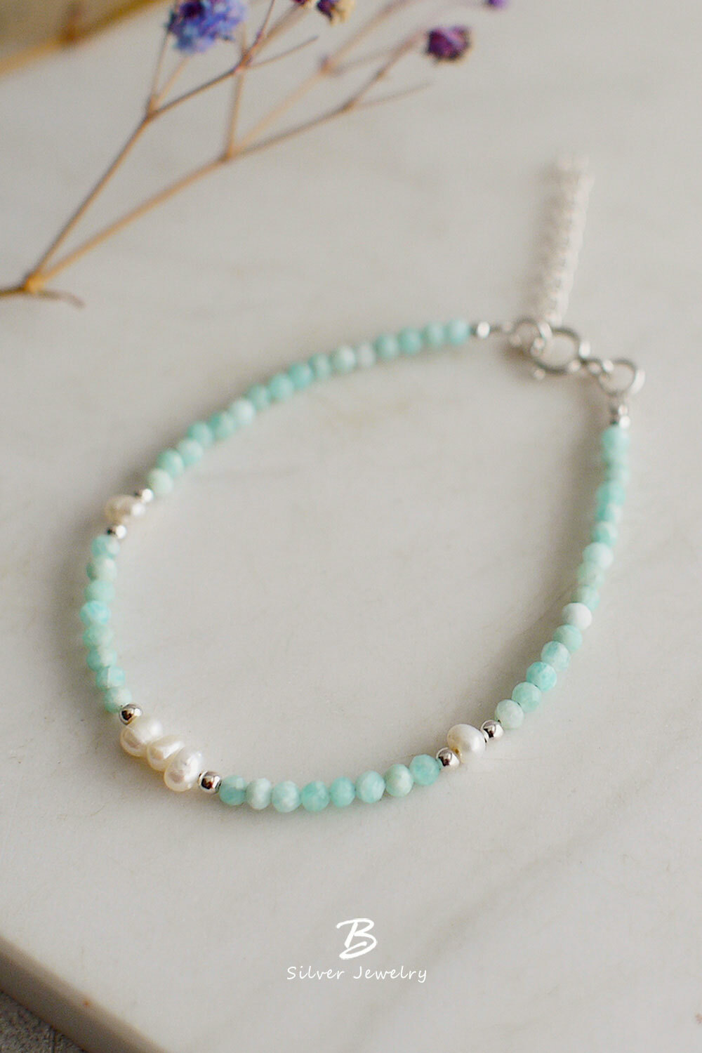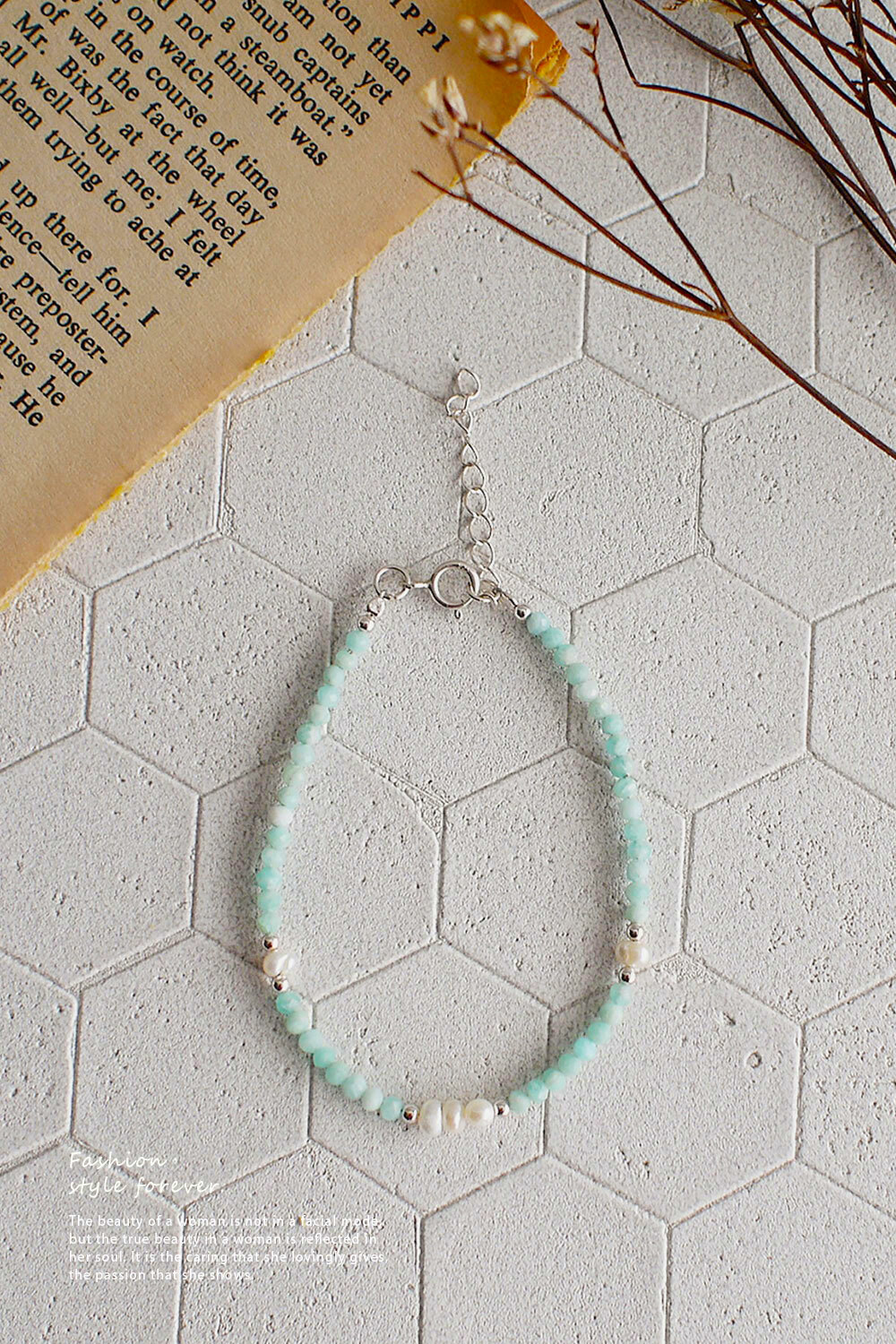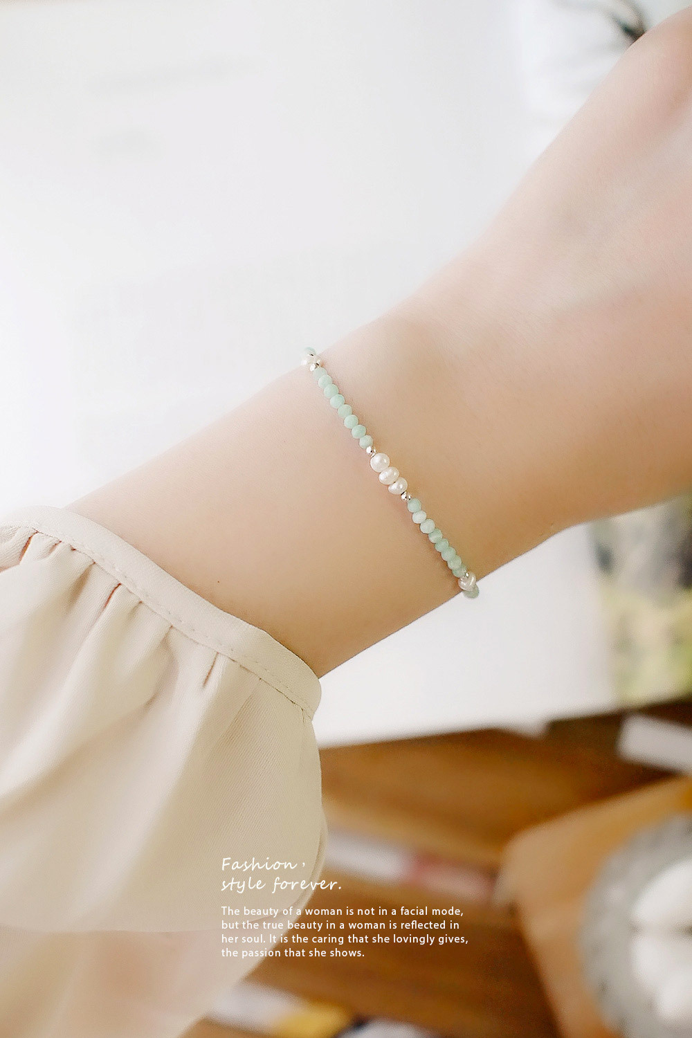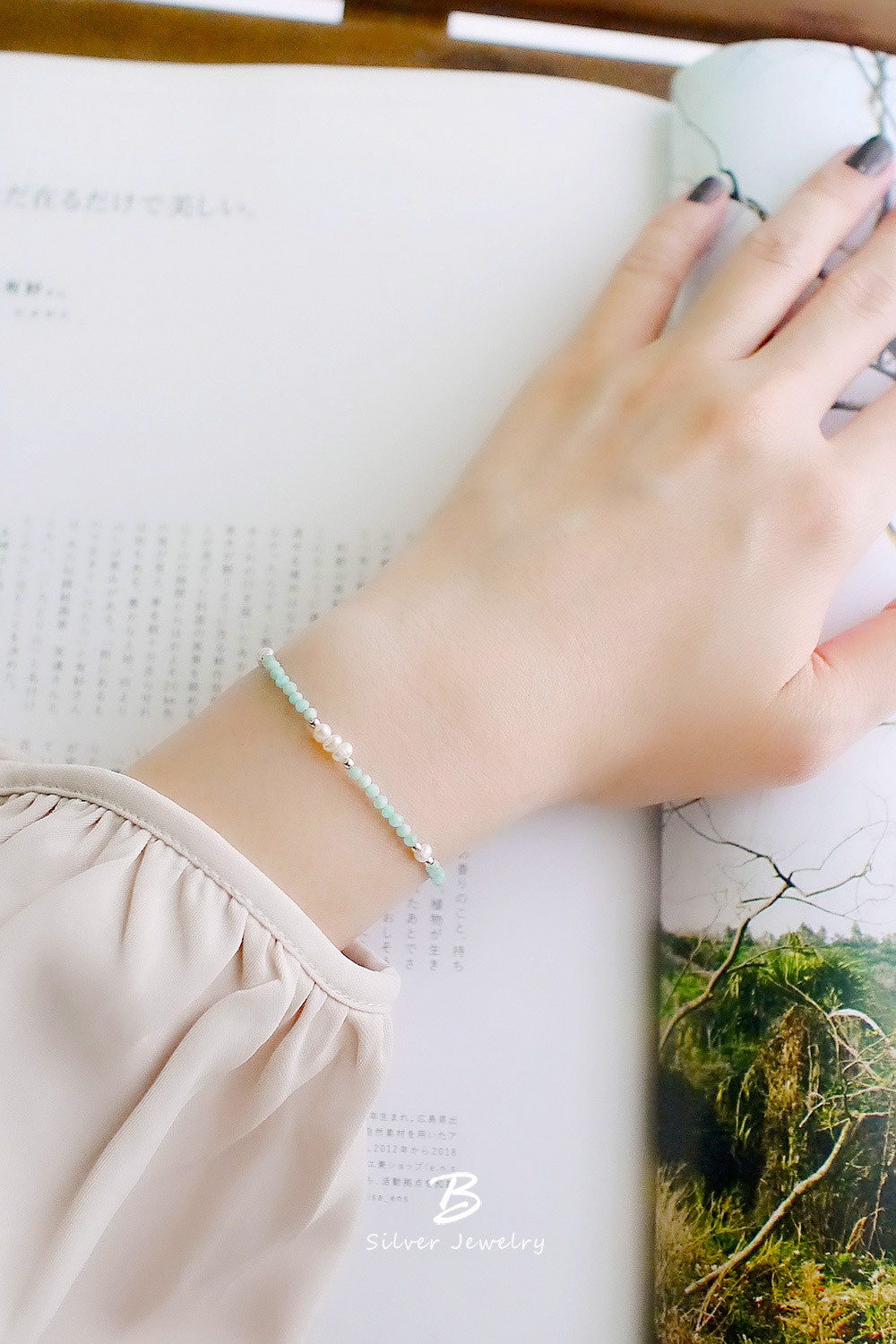 搭配淡水珍珠與925純銀珠,更加顯色,優雅別緻的點綴在手腕上。