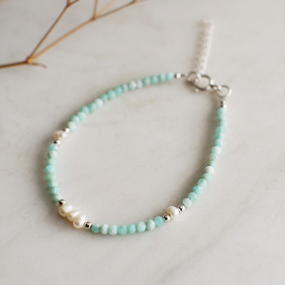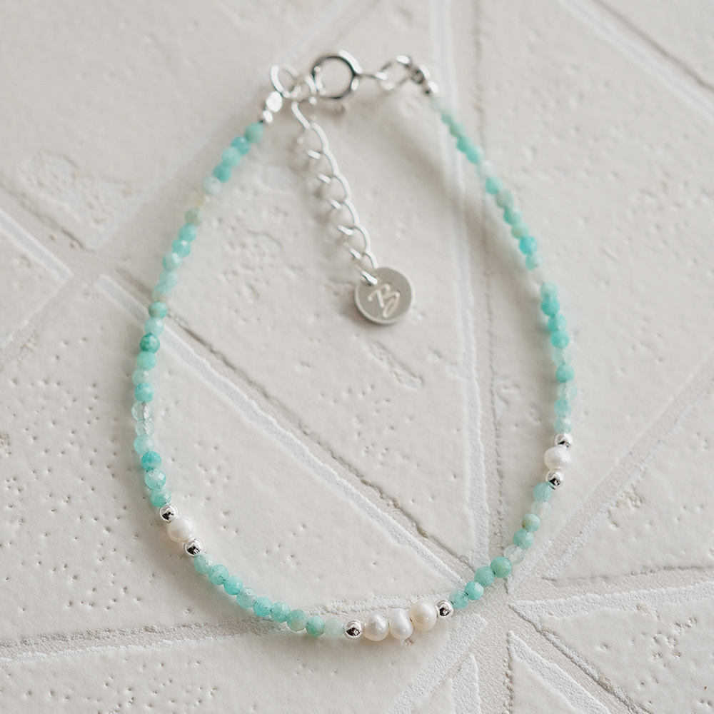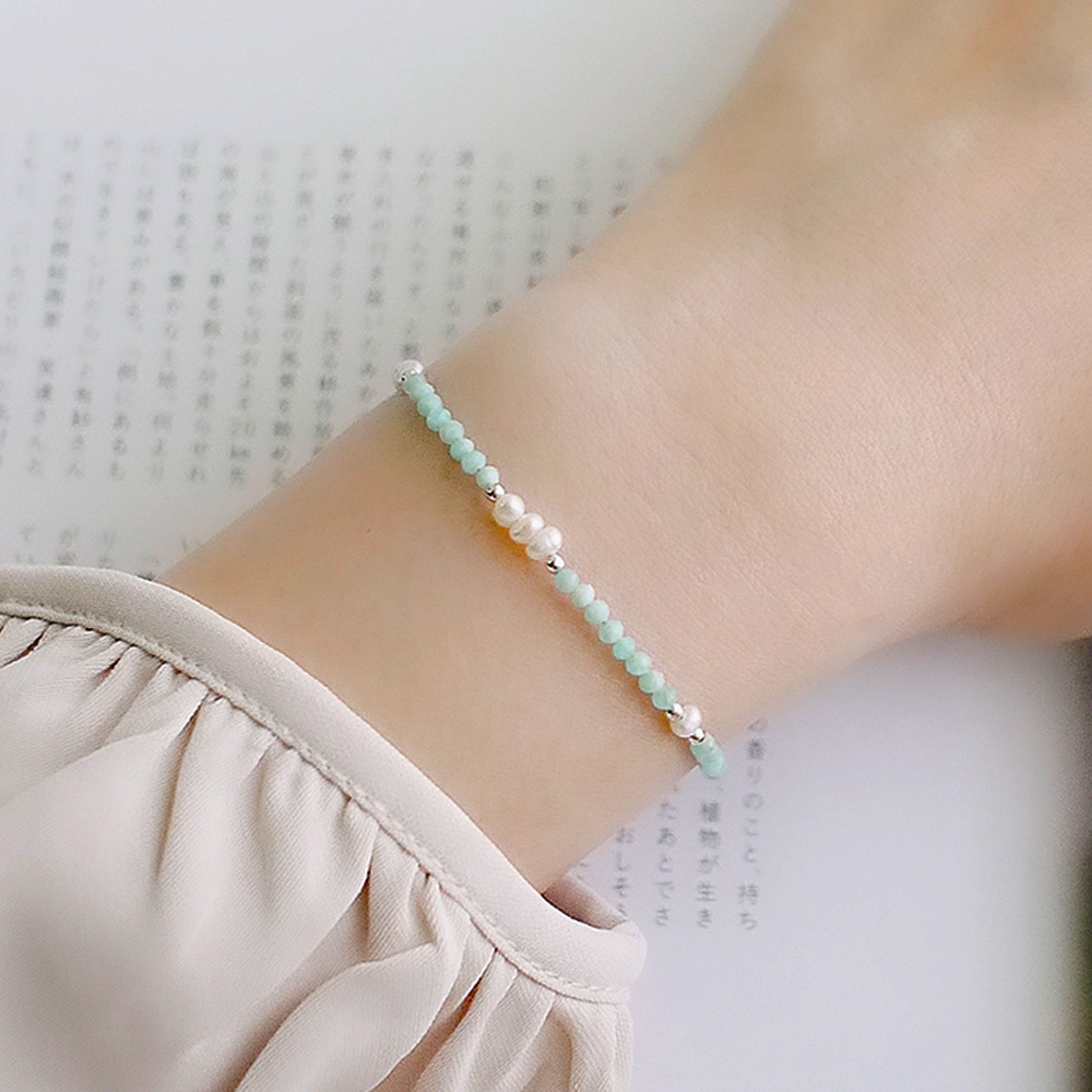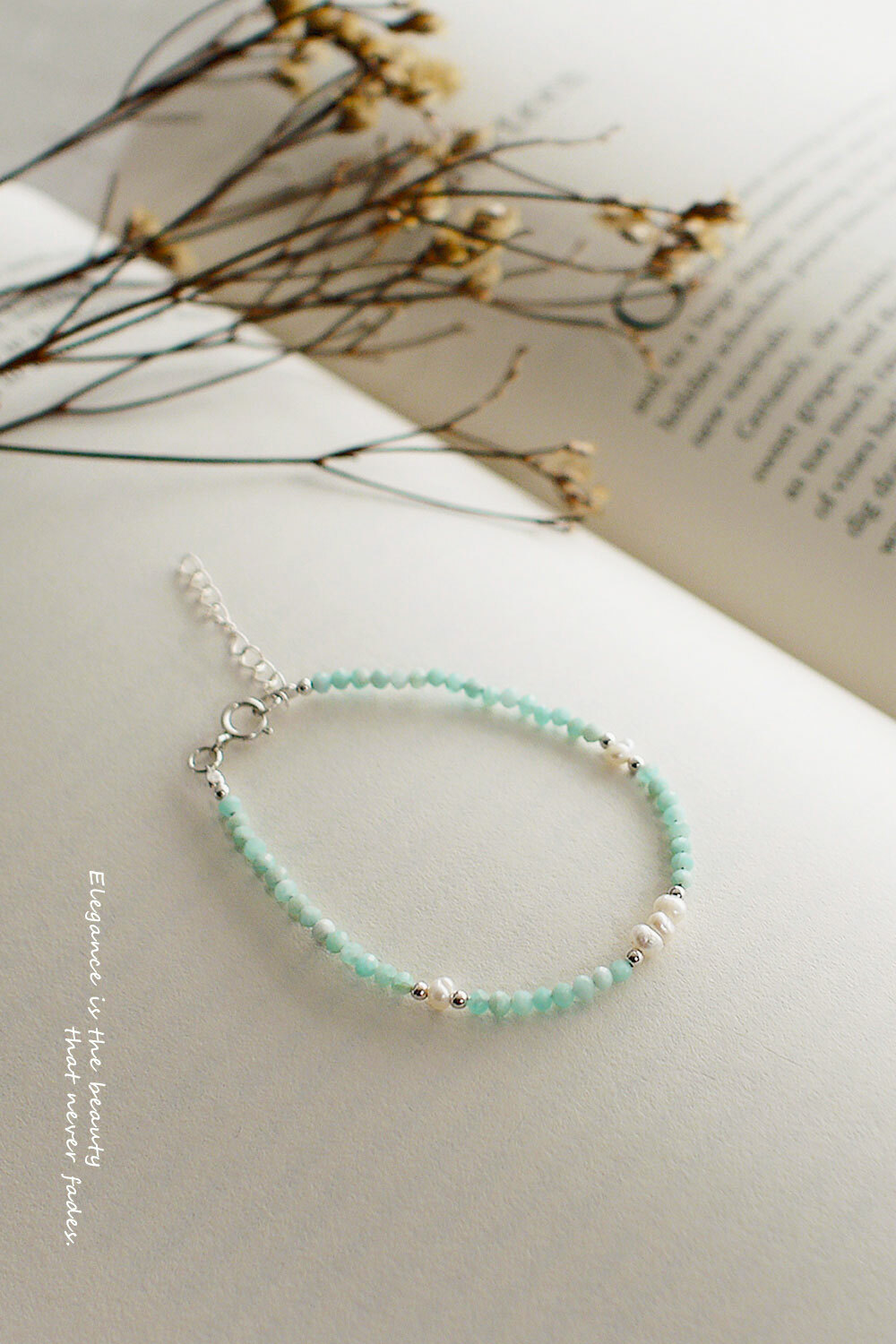 搭配淡水珍珠與925純銀珠,更加顯色,優雅別緻的點綴在手腕上。