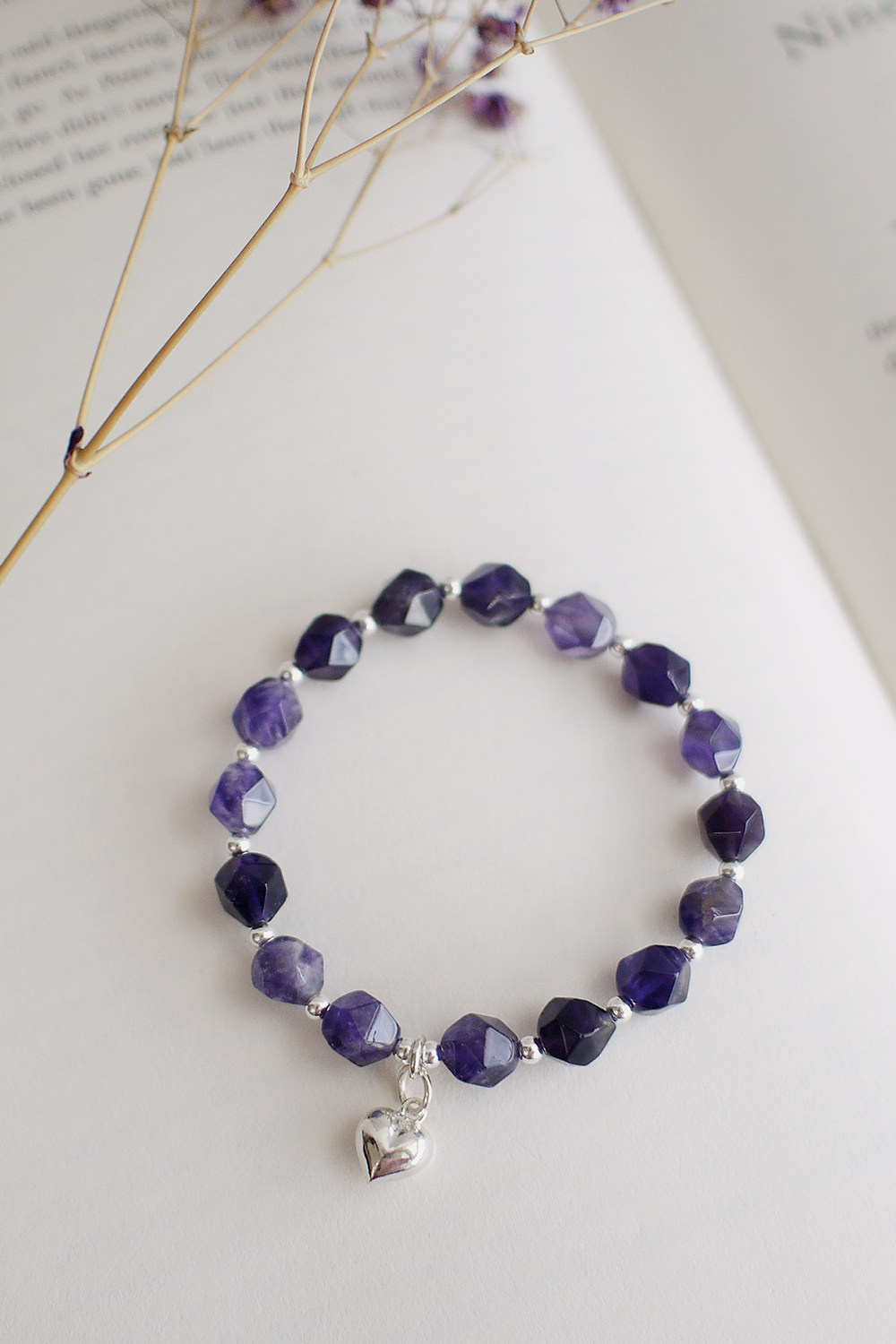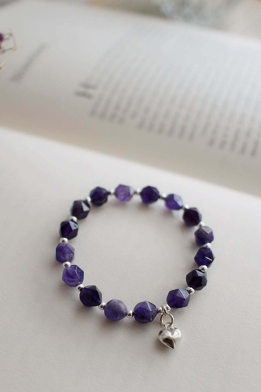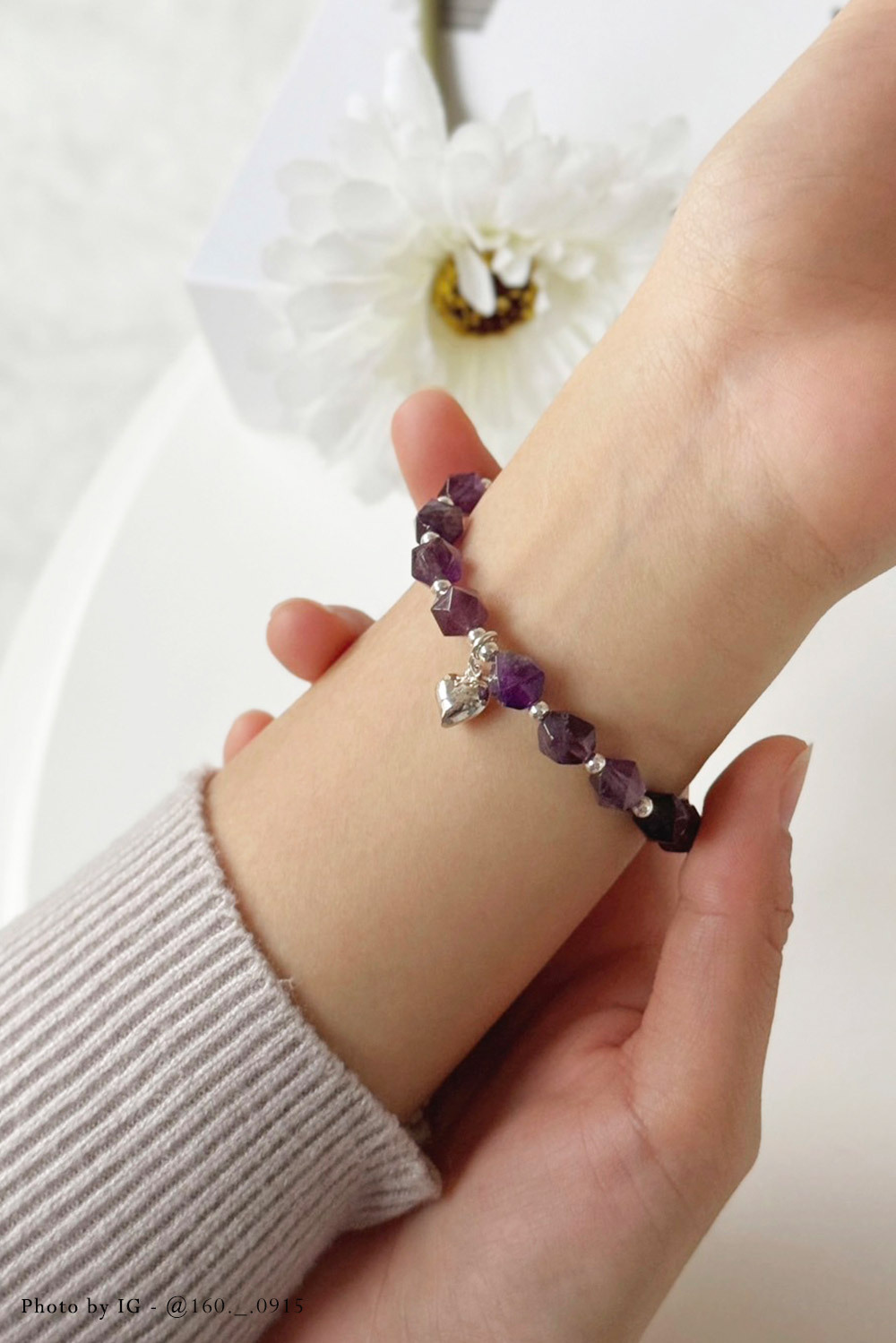 切面水晶搭配925純銀珠,搭上愛心吊墜,戴起來優雅又不失個性