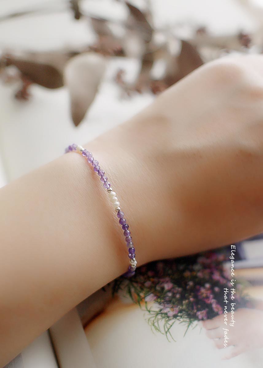 搭配淡水珍珠與925純銀珠,更加顯色,優雅別緻的點綴在手腕上。