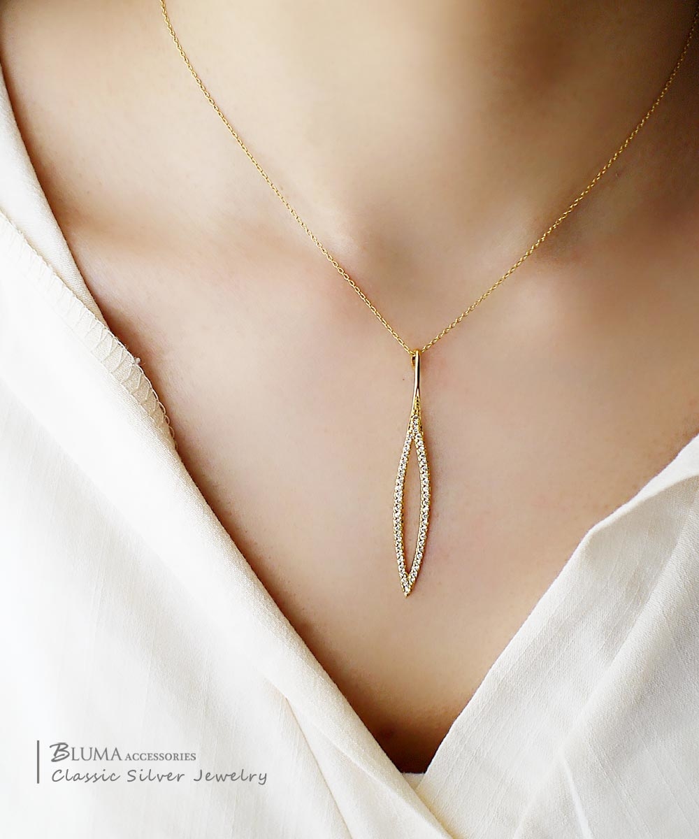 優雅富時尚感的鏤空葉子墜子,細長型設計,自然拉長臉部比例,925純銀鍍18K金,典雅設計,值得珍藏。