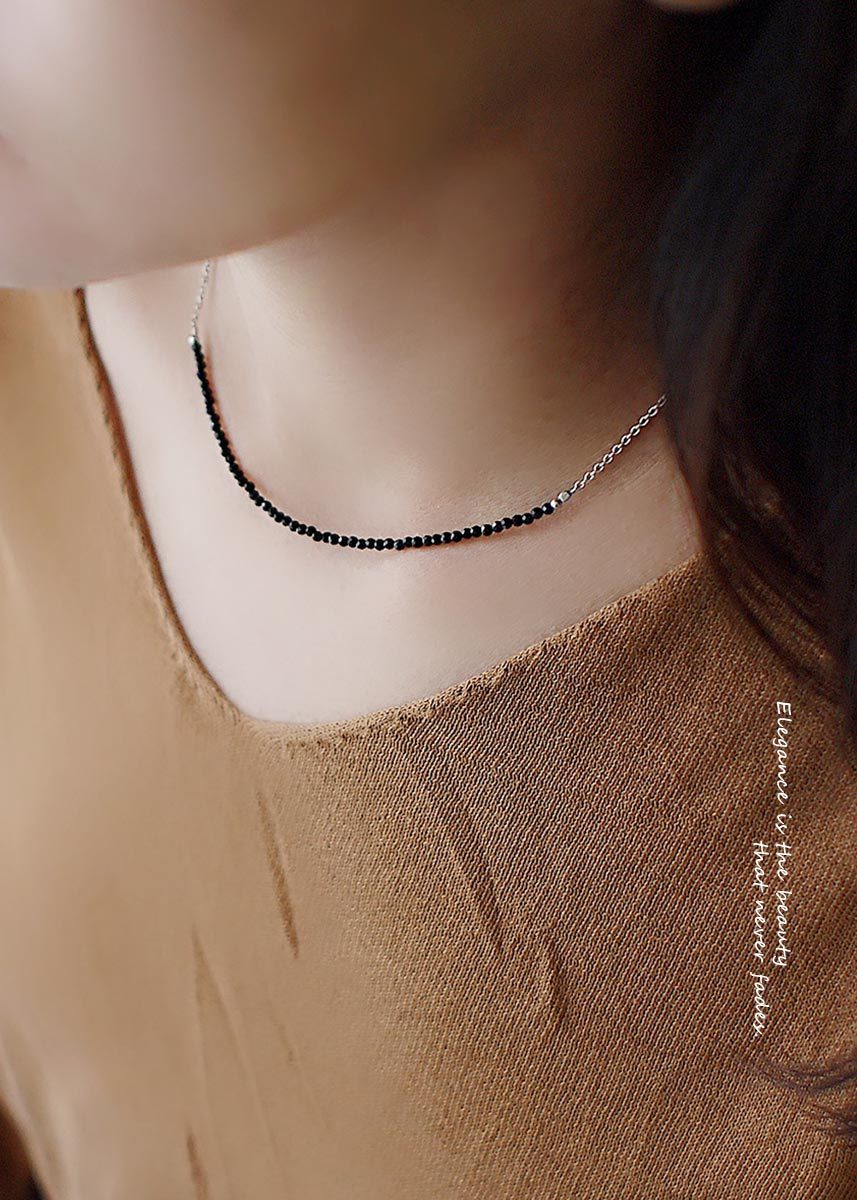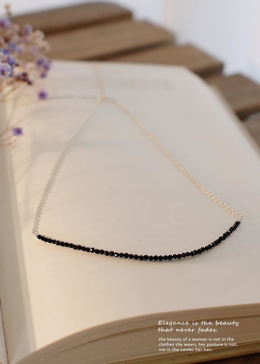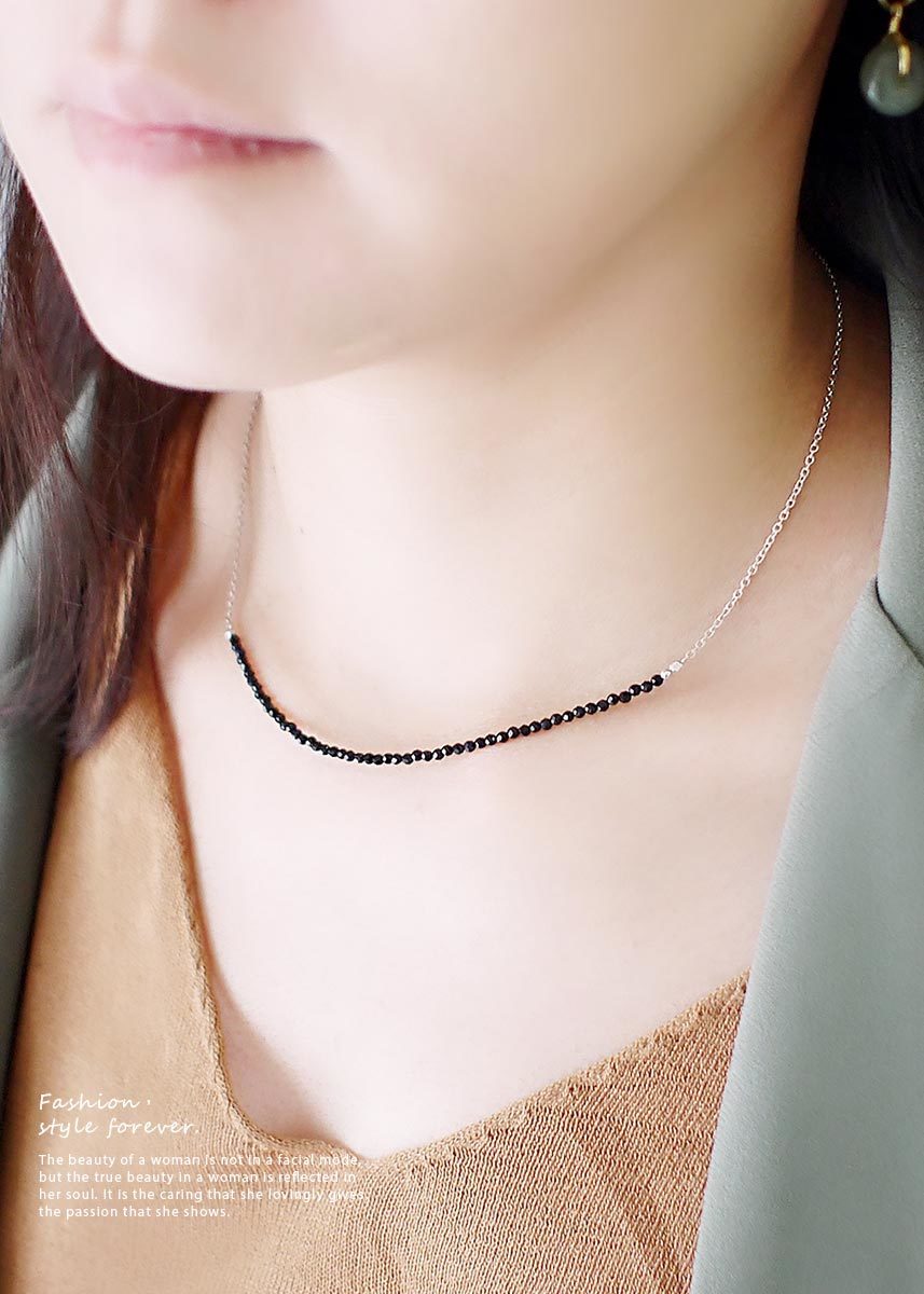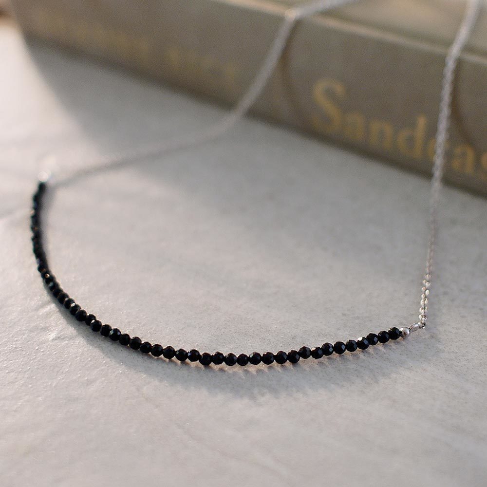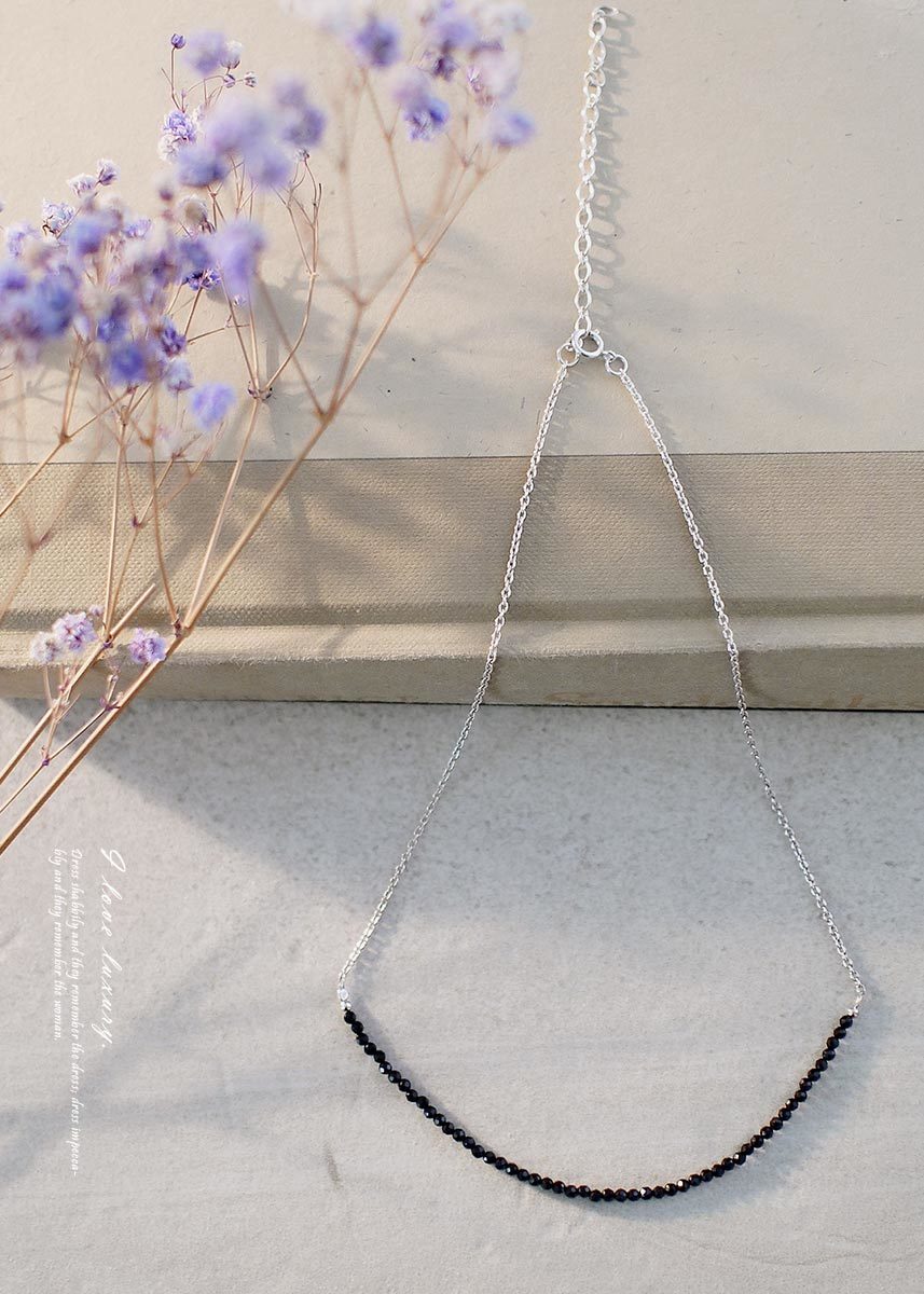 黑色的切面尖晶石,自然閃耀光澤,以美麗的弧度點綴在鎖骨間,展現獨有個性。