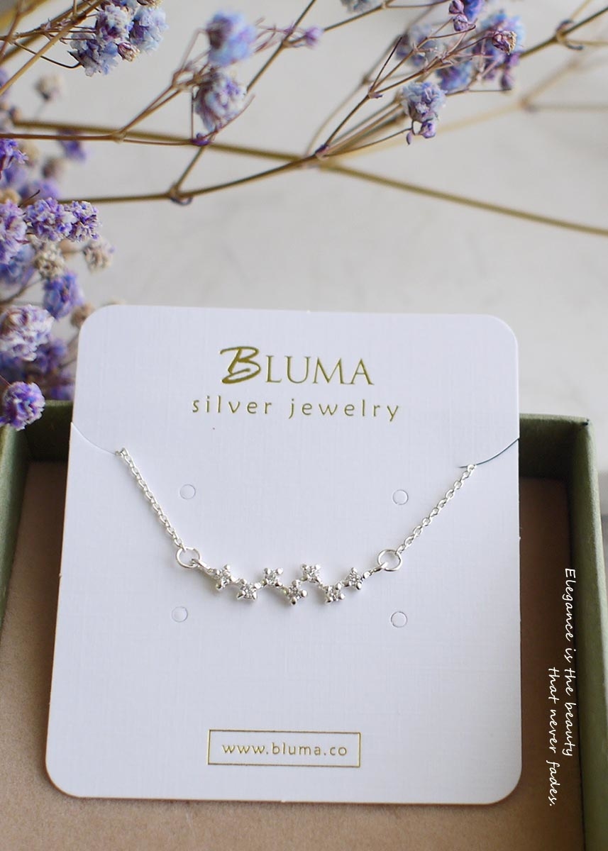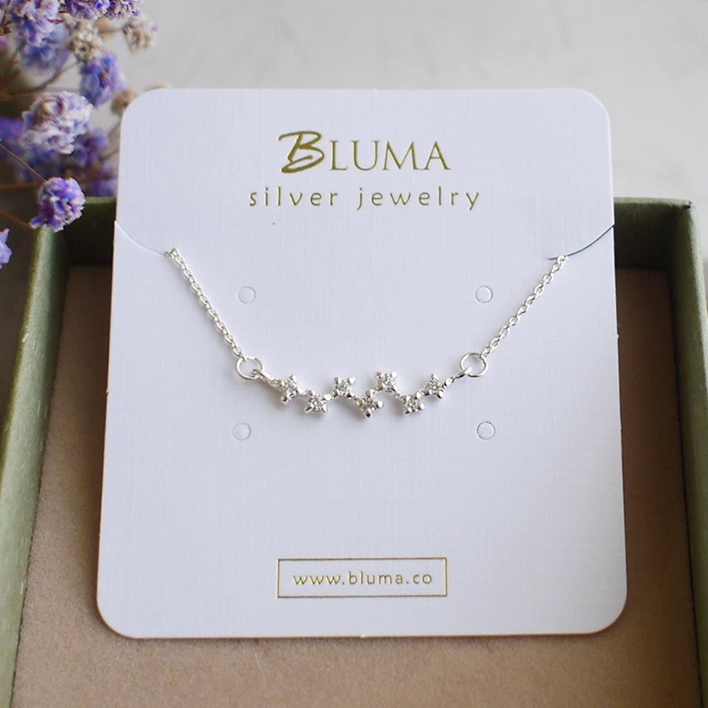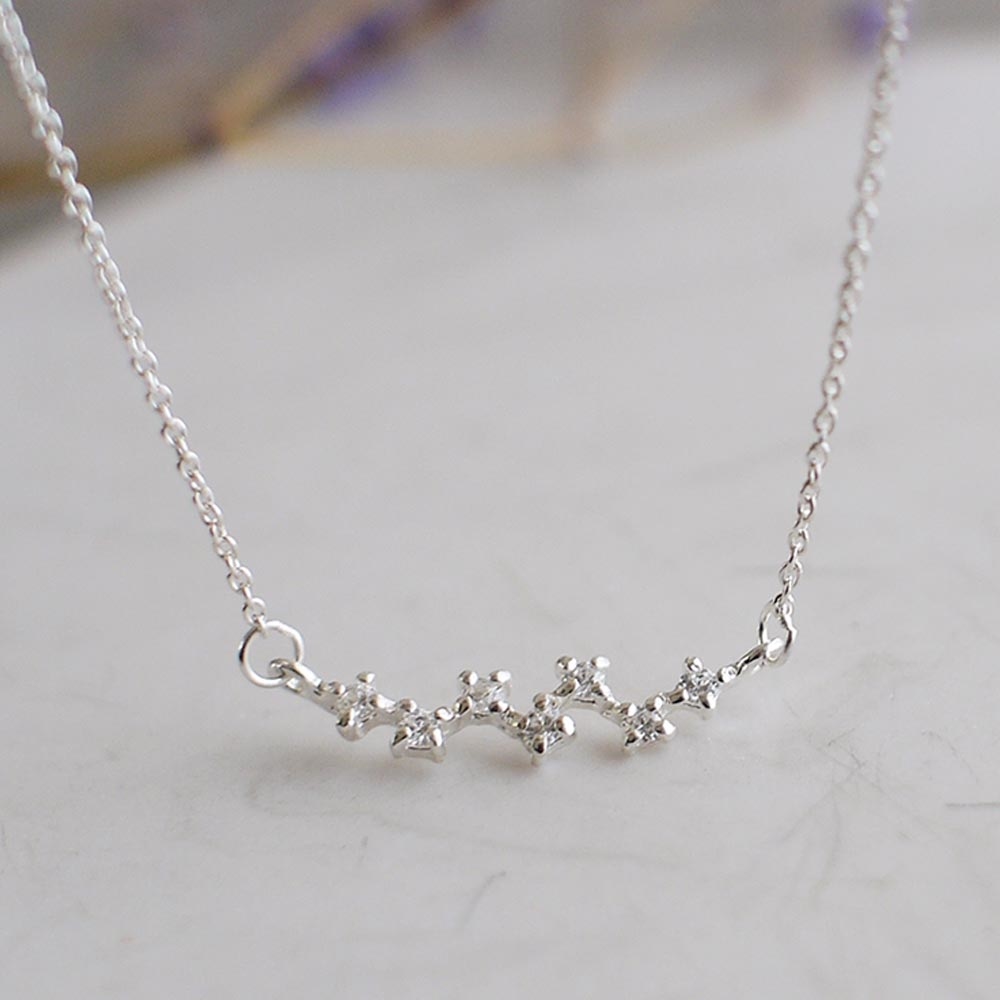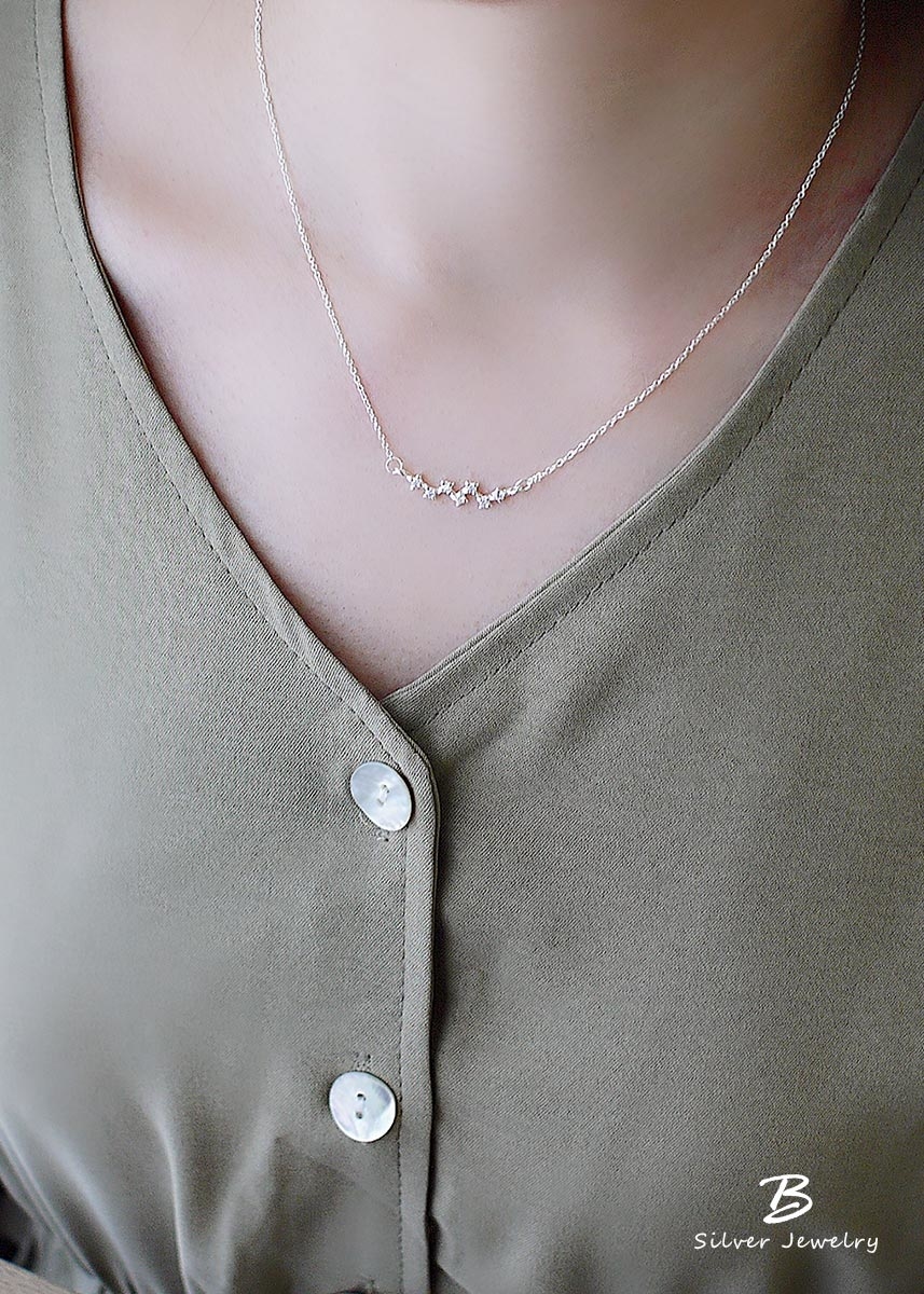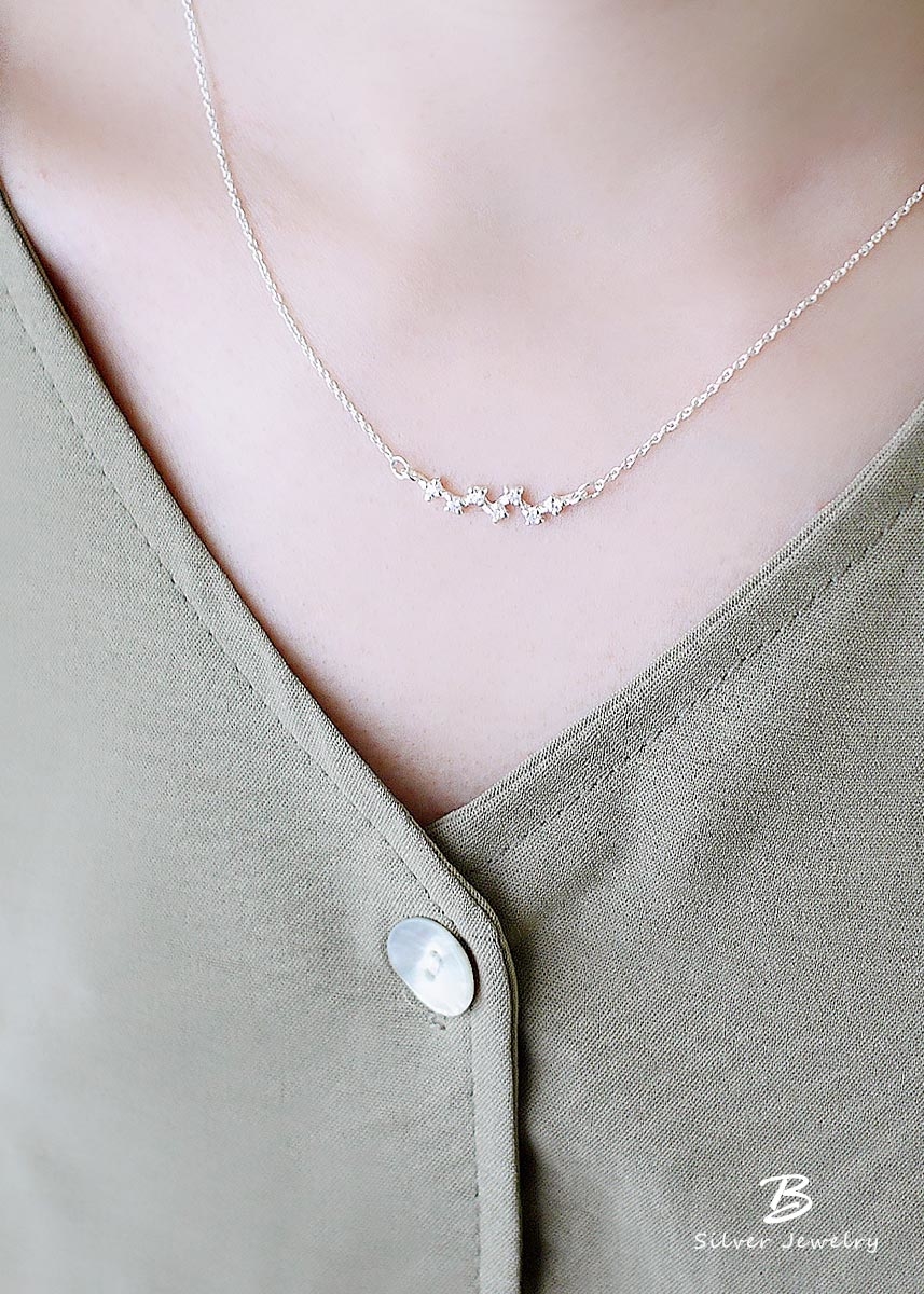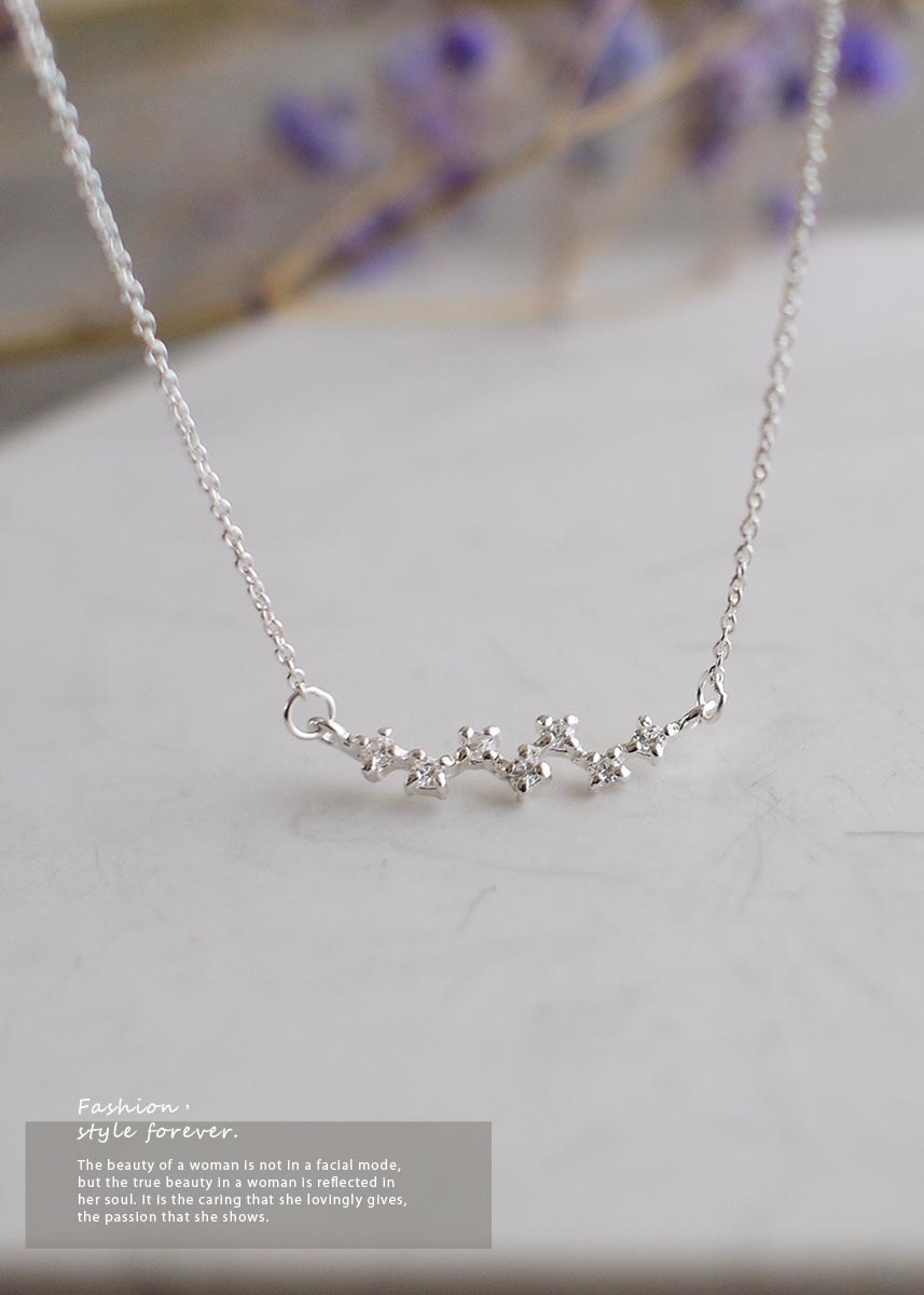 精緻的北斗七星鎖骨鍊,925純銀材質以白色鋯石鑲嵌點綴、做工精美、設計典雅。