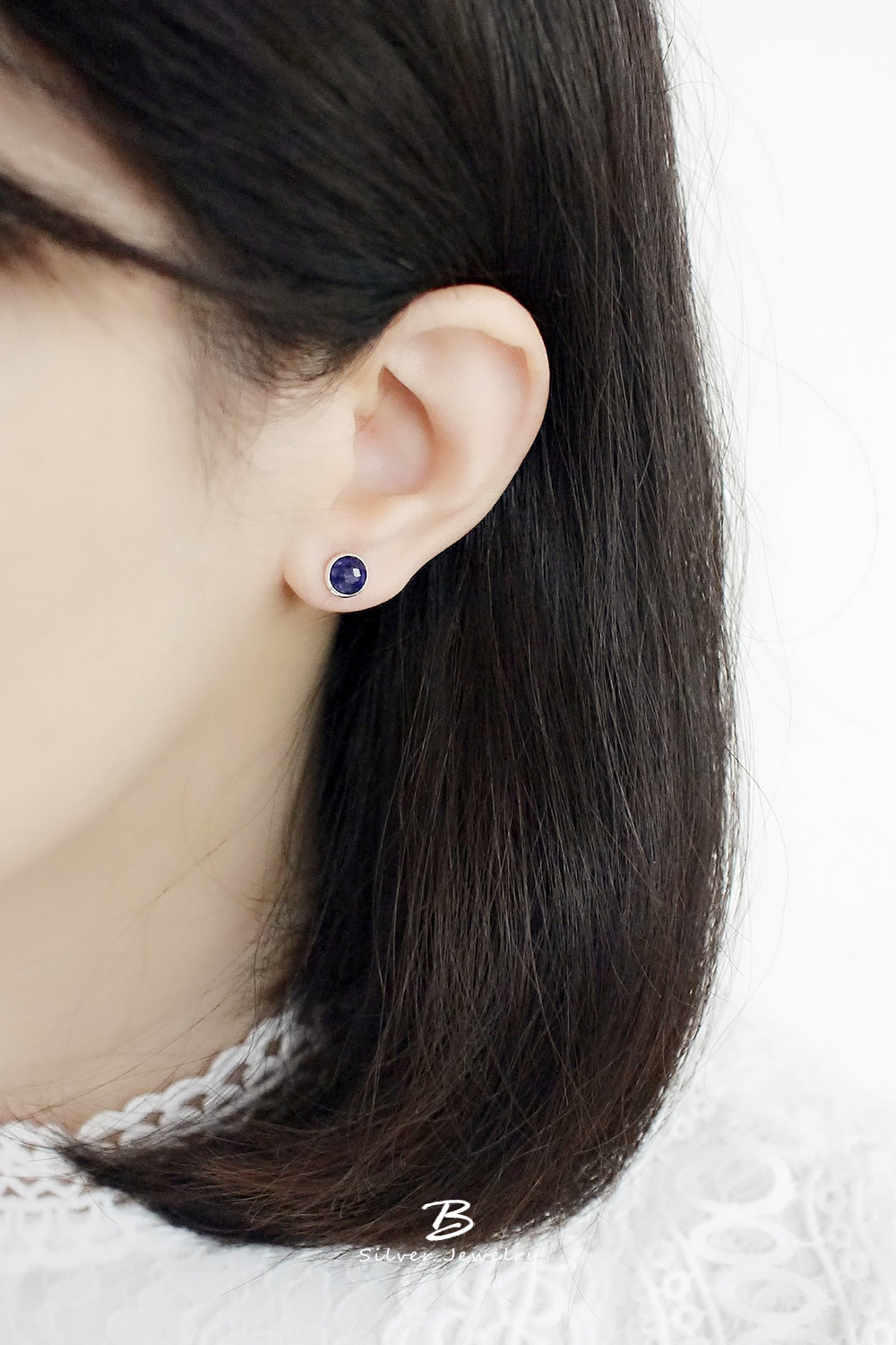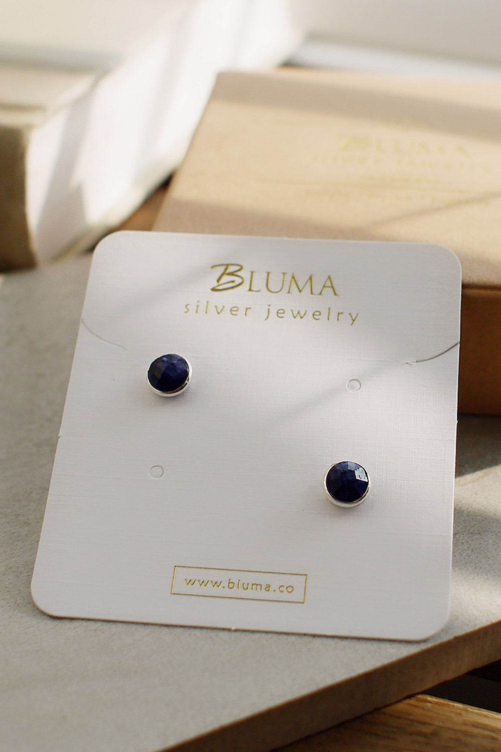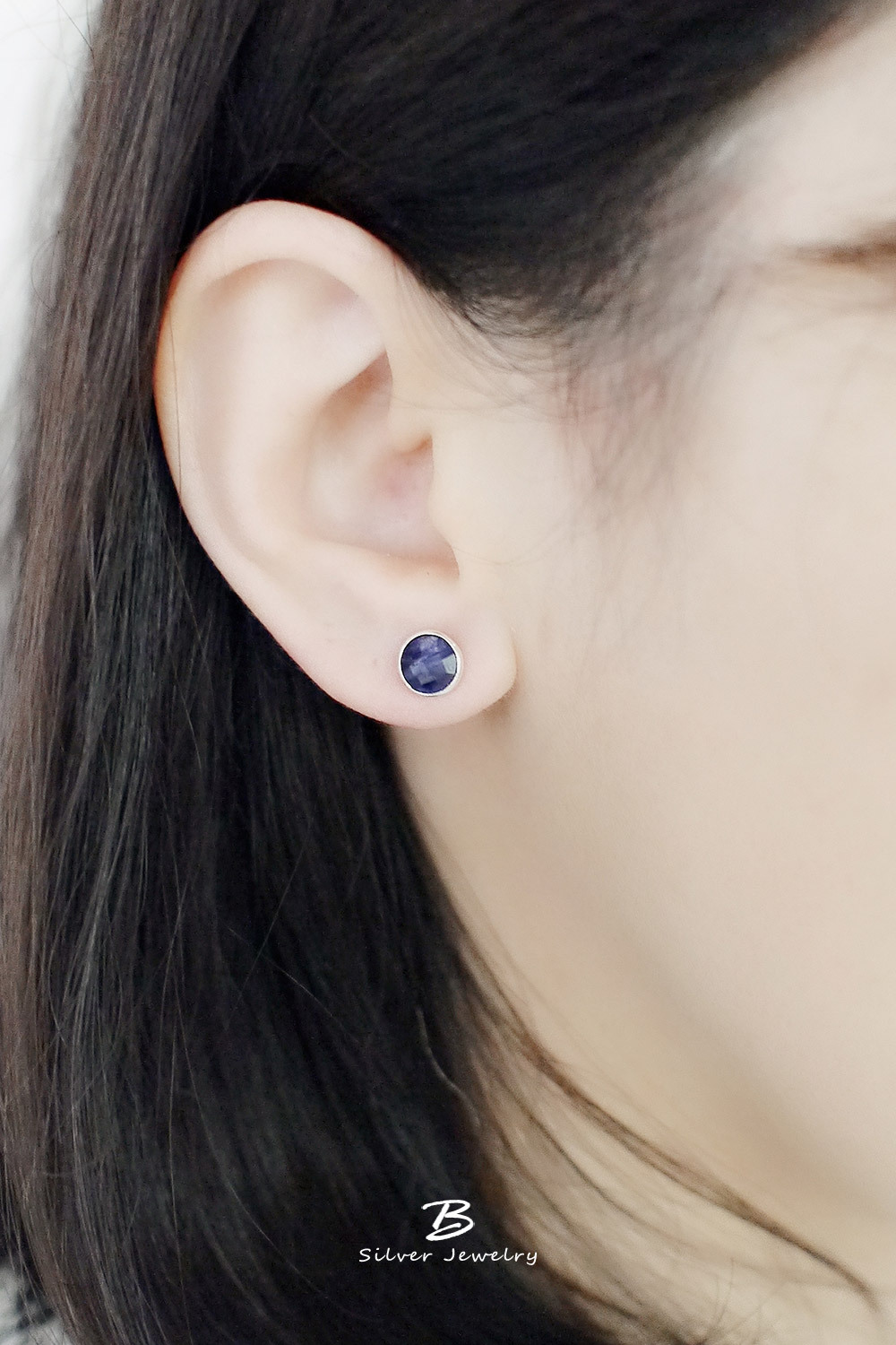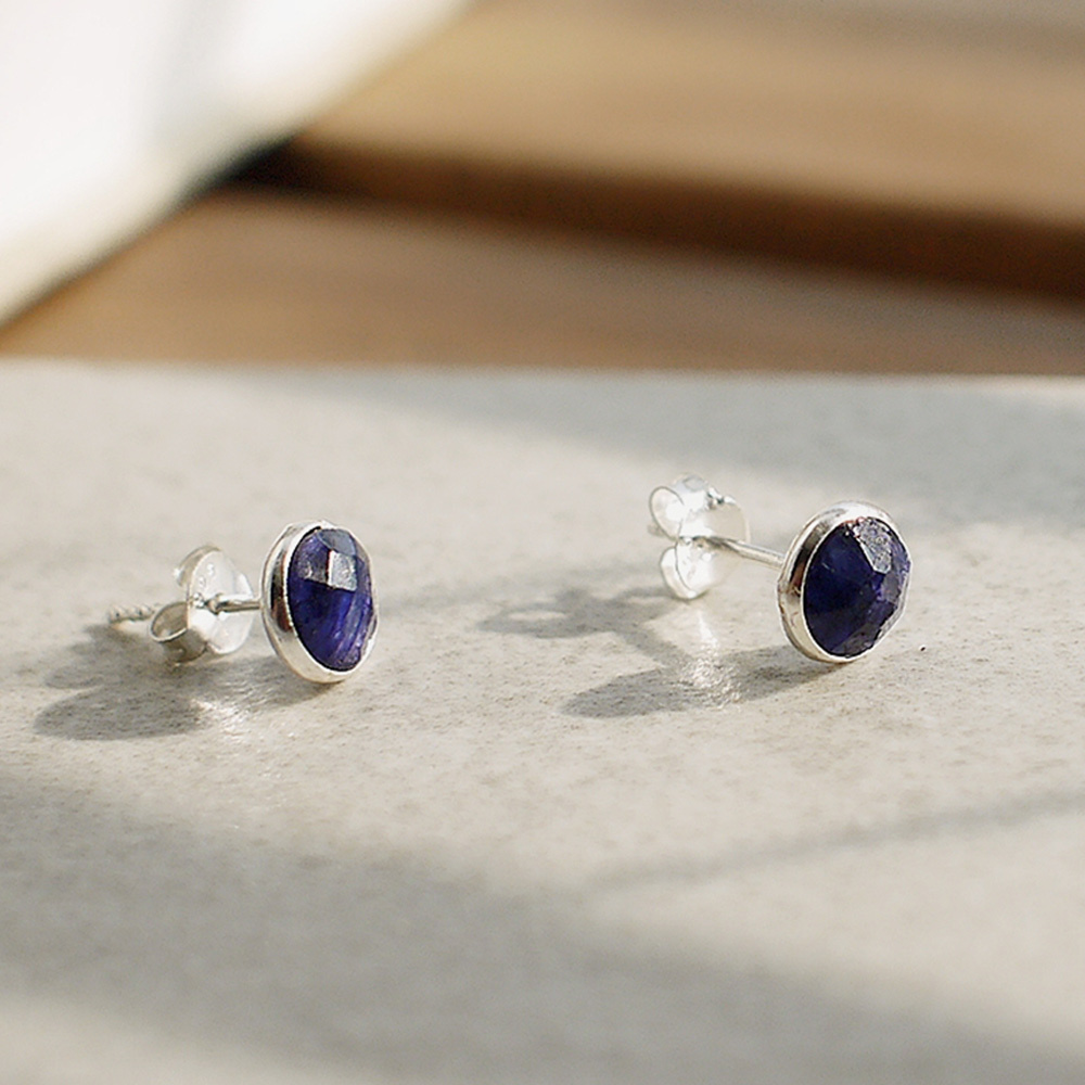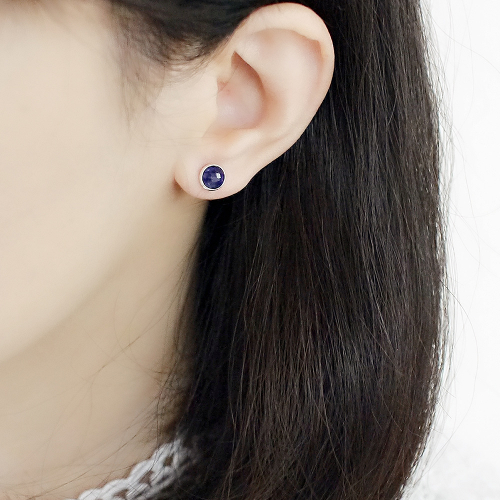 BLUMA藍寶石簡約小圓純銀耳環
