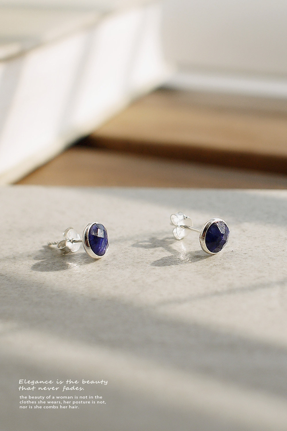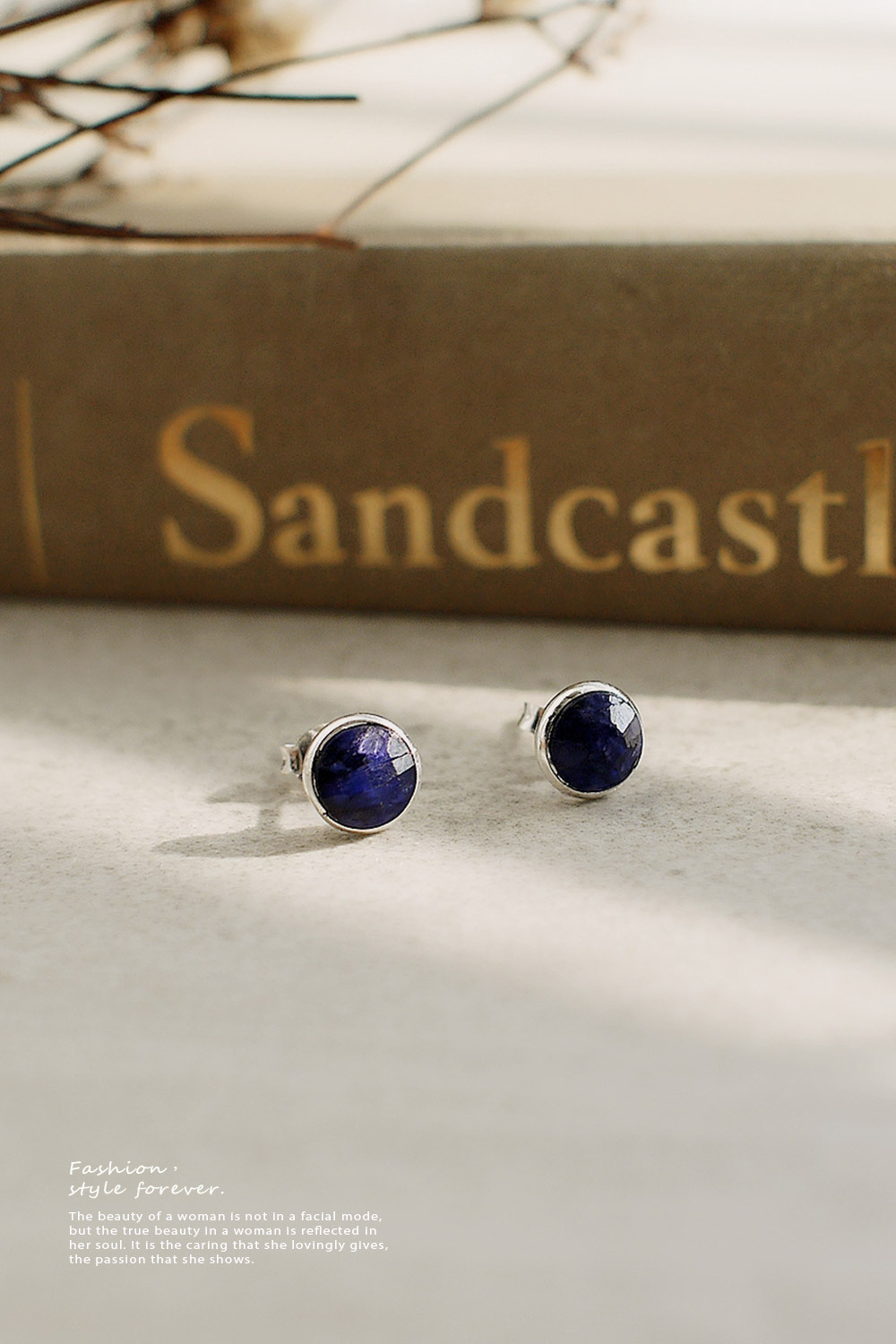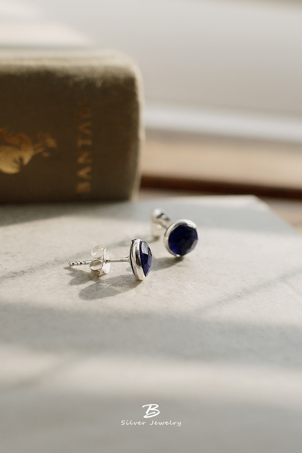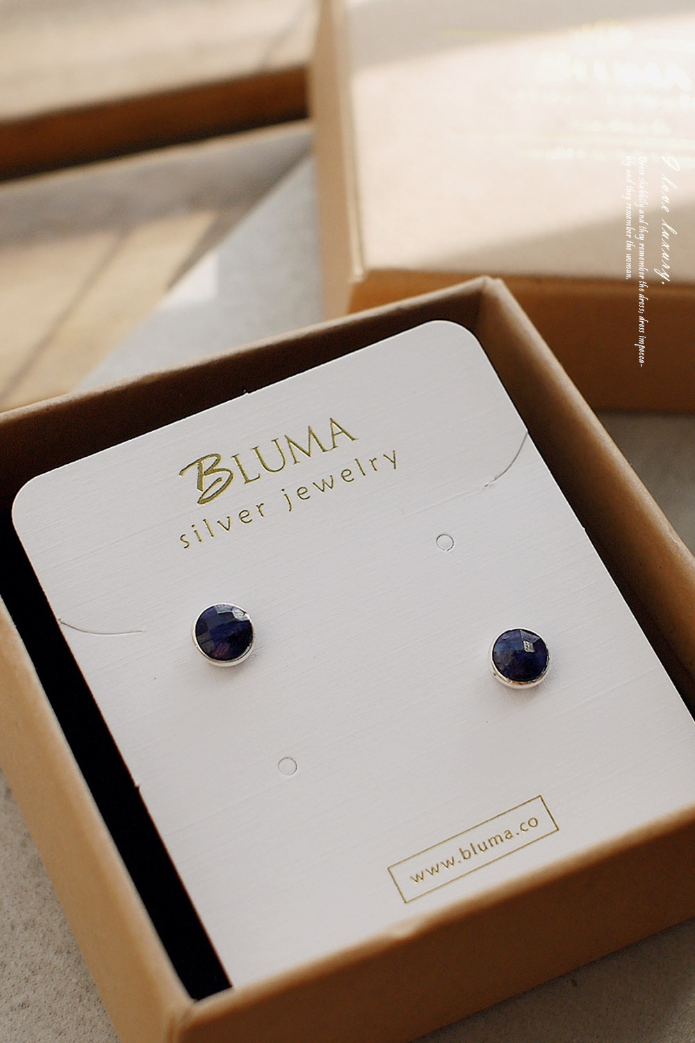 BLUMA藍寶石簡約小圓純銀耳環