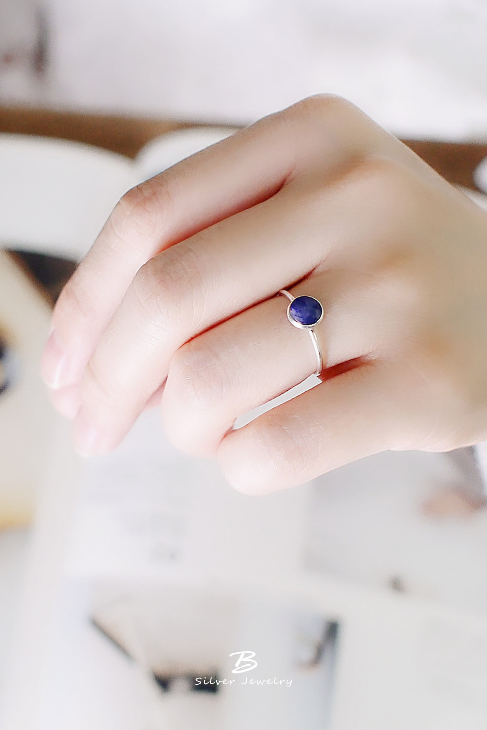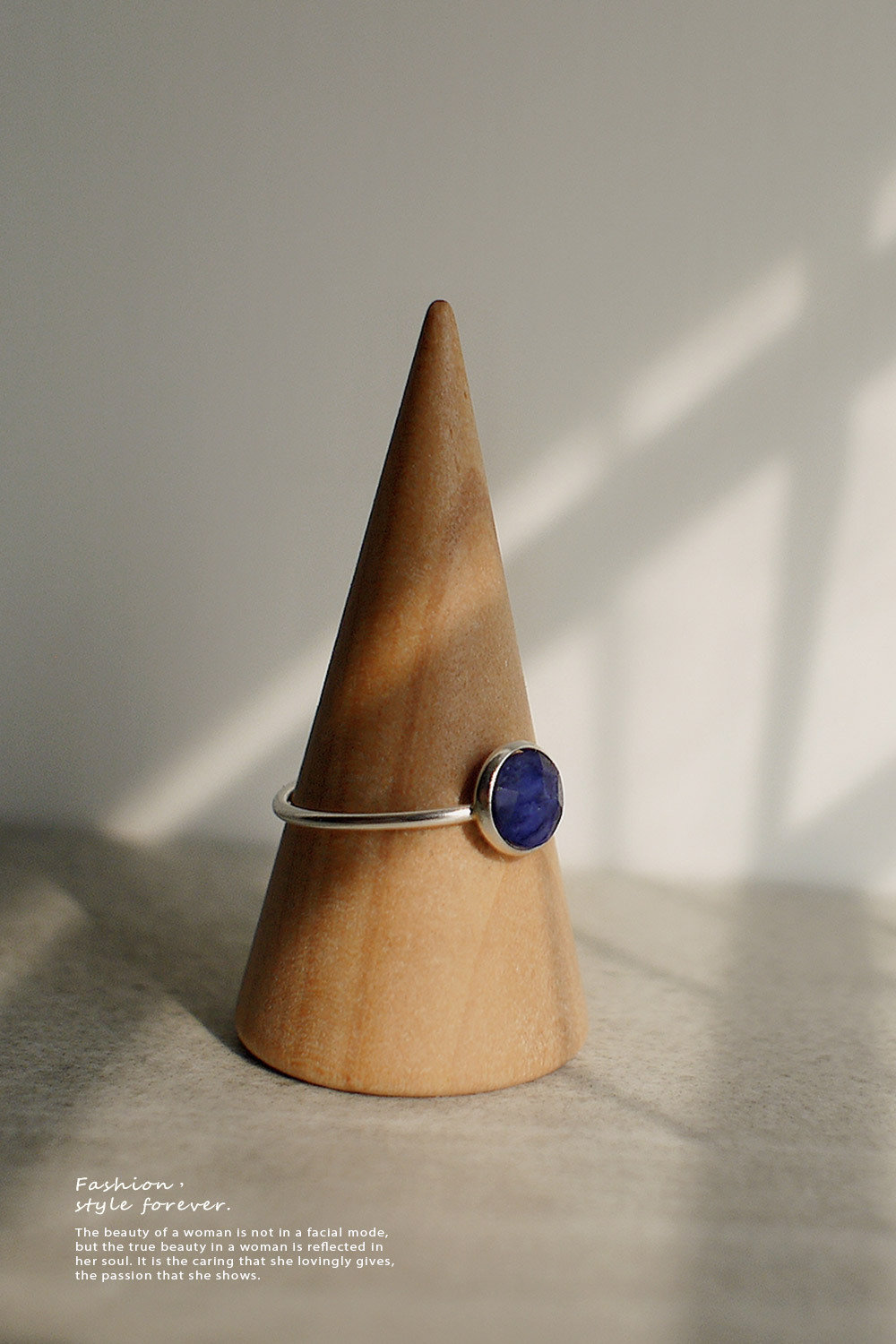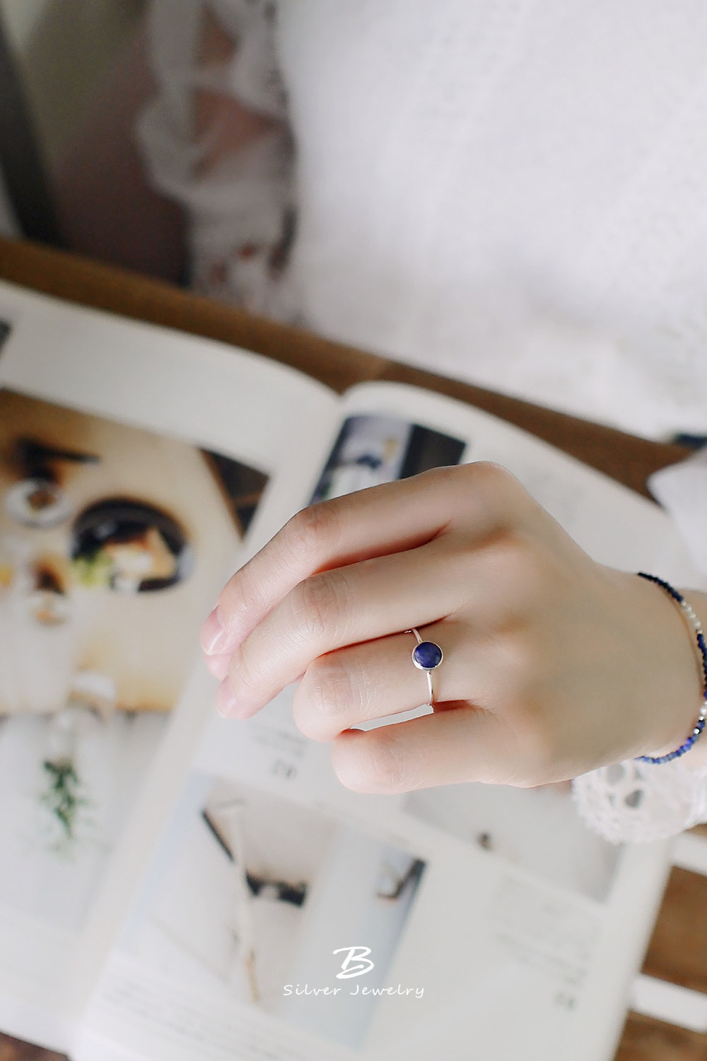 925純銀包鑲原礦,天然色澤寶藍到深藍,以簡約的造型呈現單純的美感。