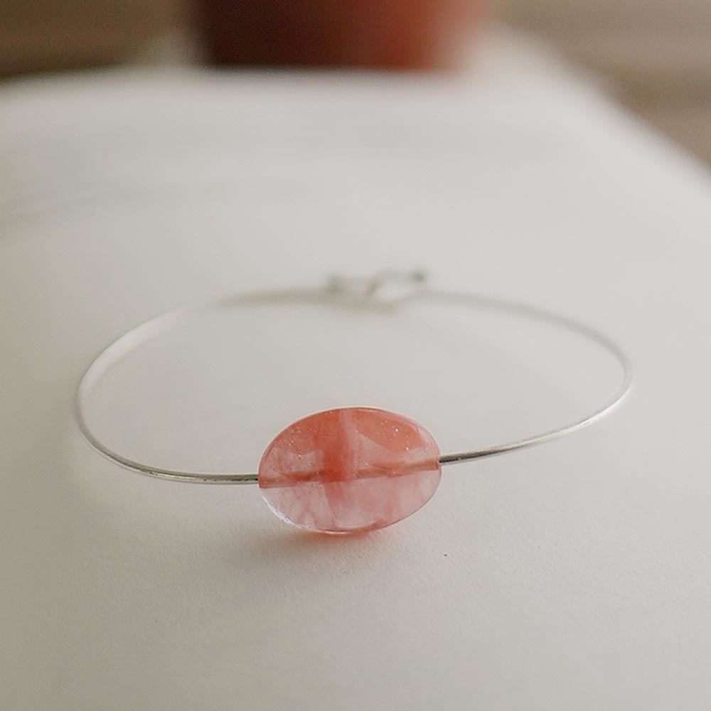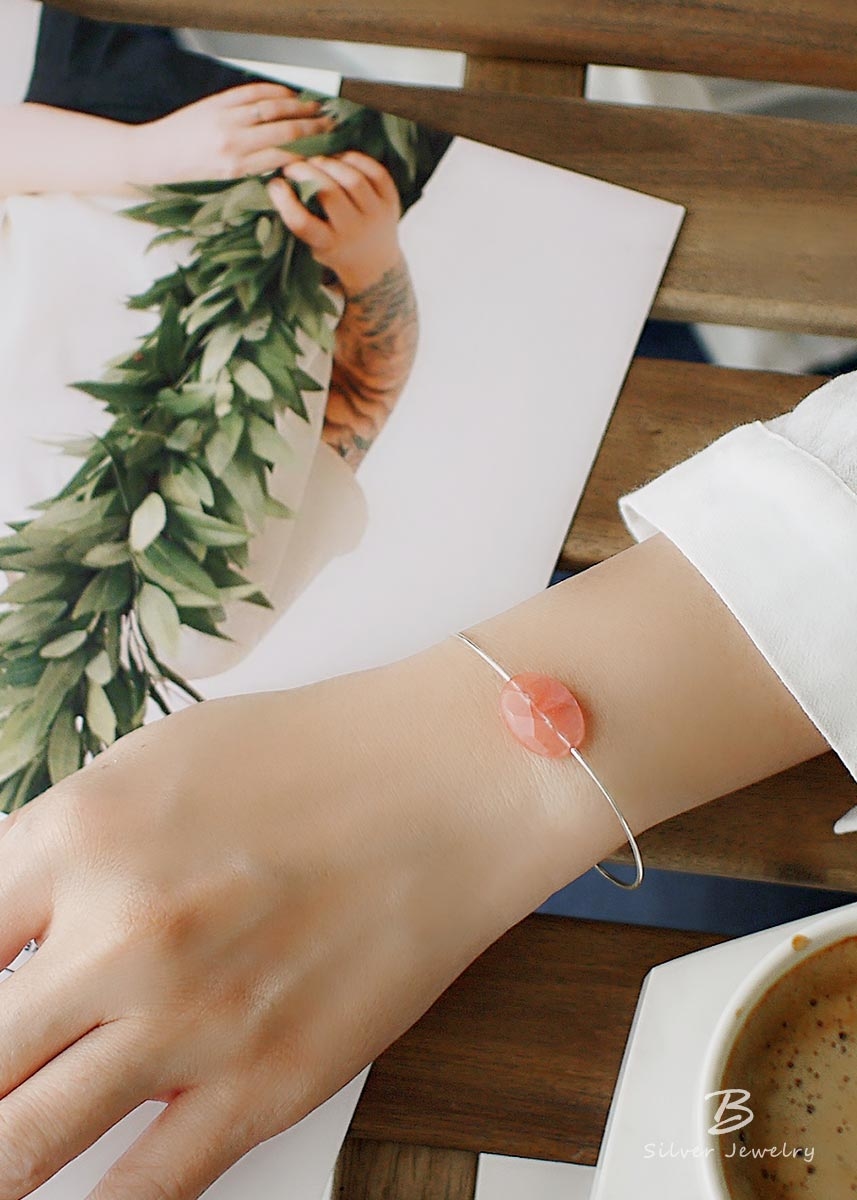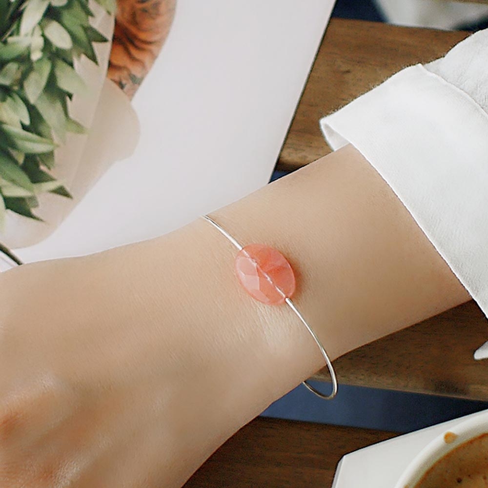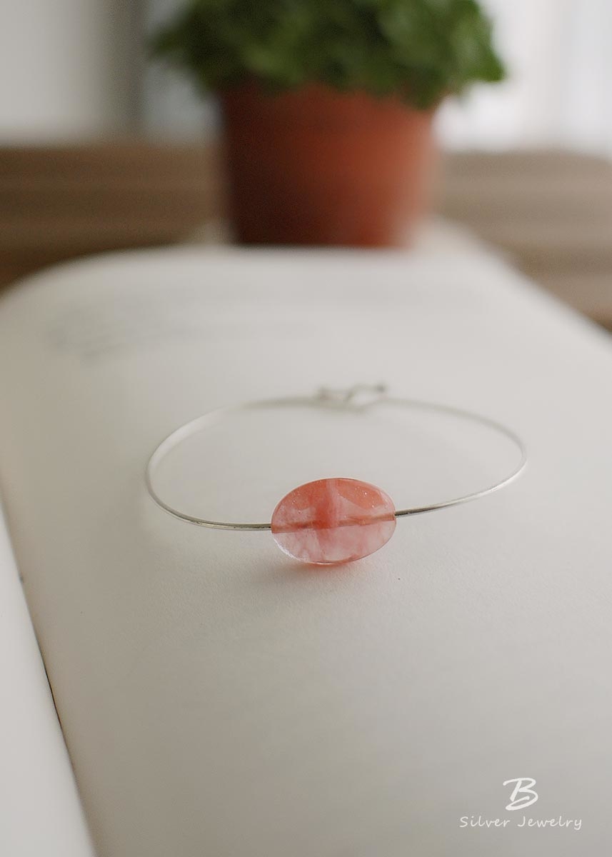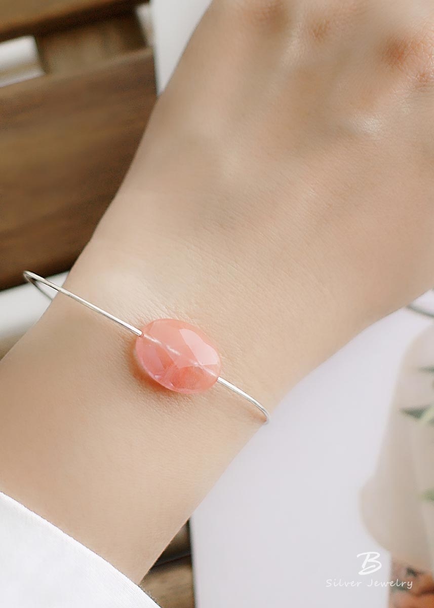 這一款採用橢圓形切面櫻桃石,設計師親自挑選,半透明的復古胭脂色,有著自然的暈染紋路,彰顯女性的嫵媚風情。