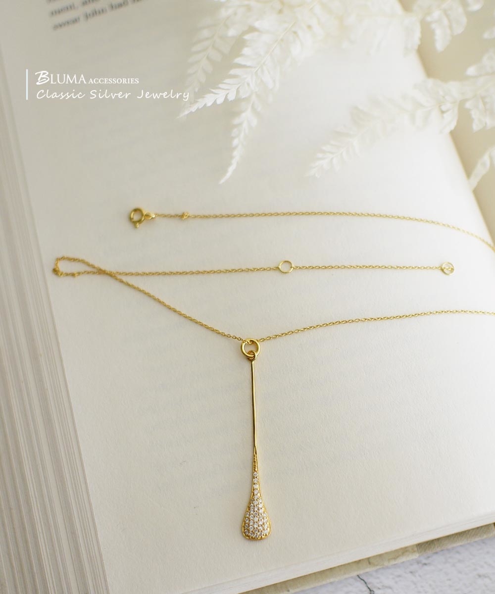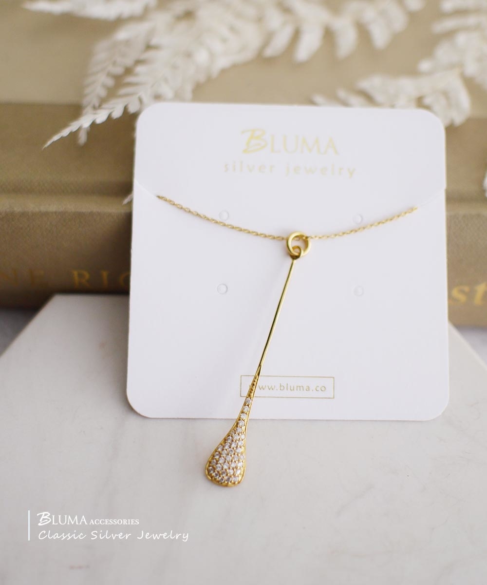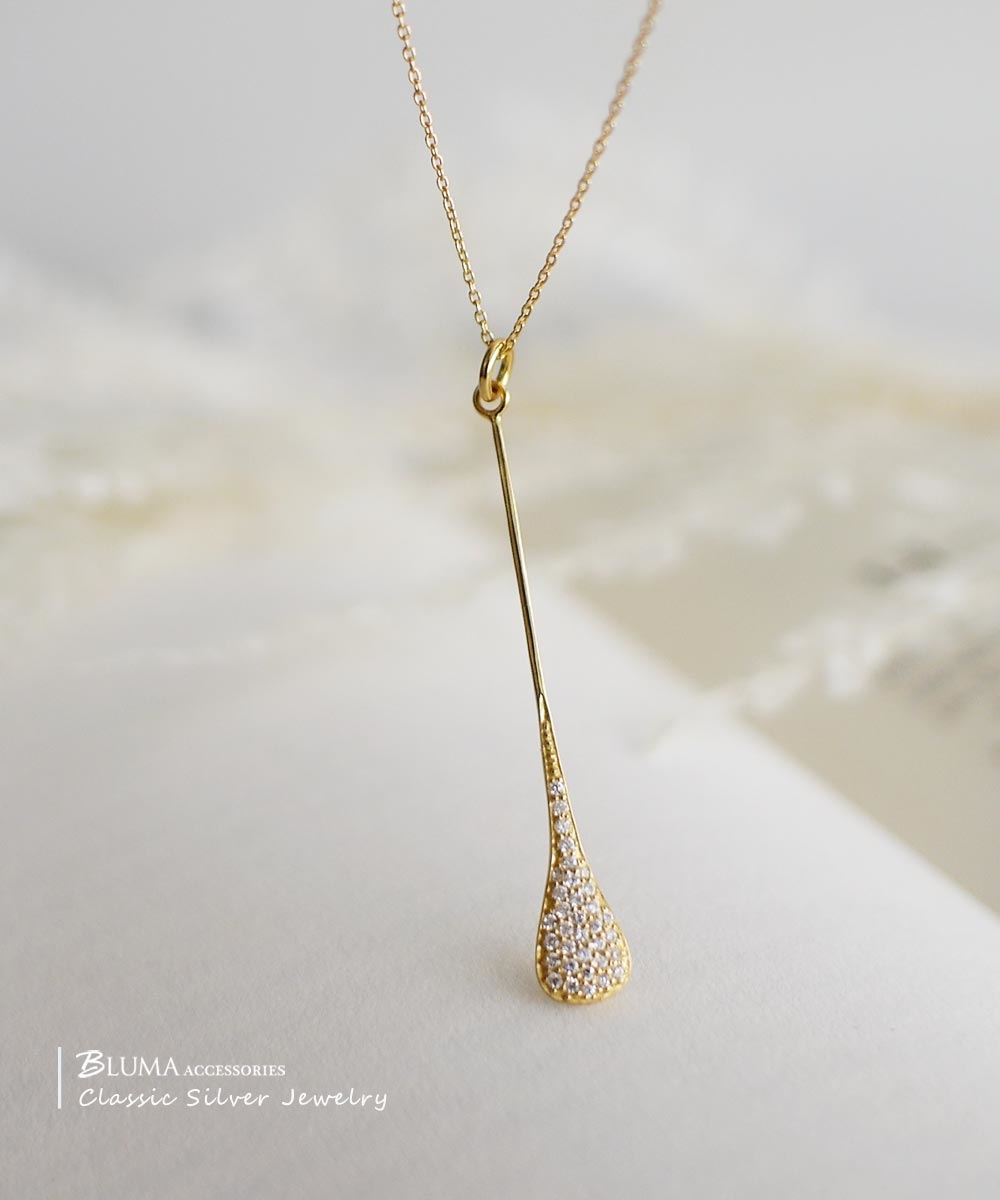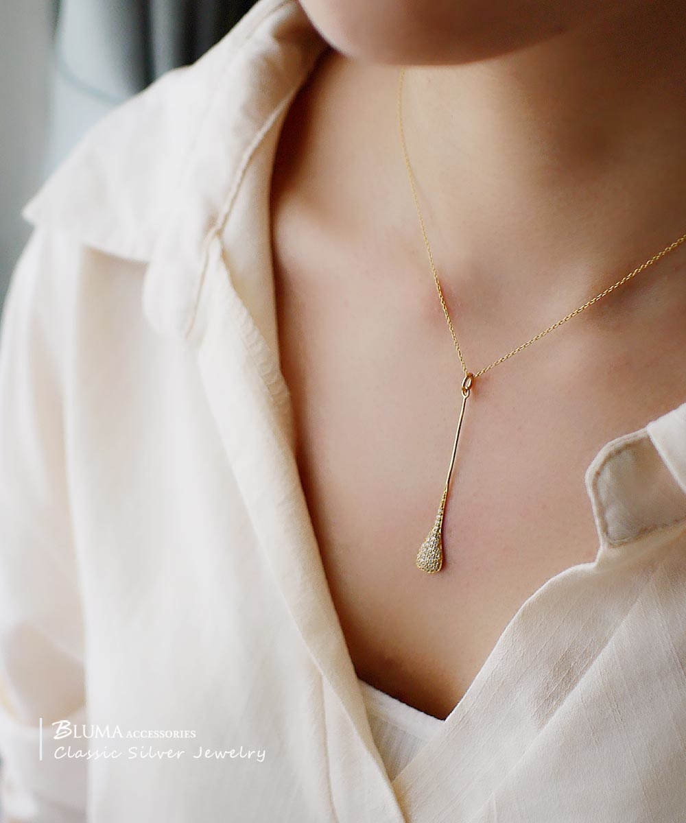 典雅精緻的純銀鍍18K金項鍊,細長型的墜子,輪廓高雅,凸顯女性的自信與女人味。