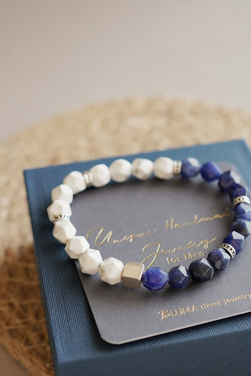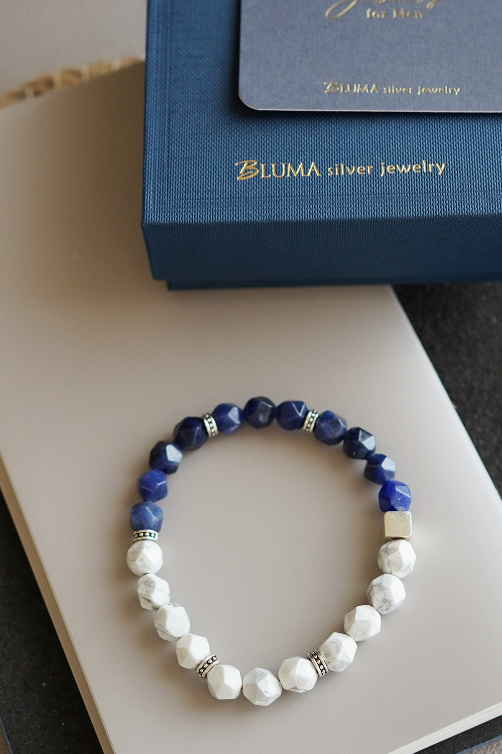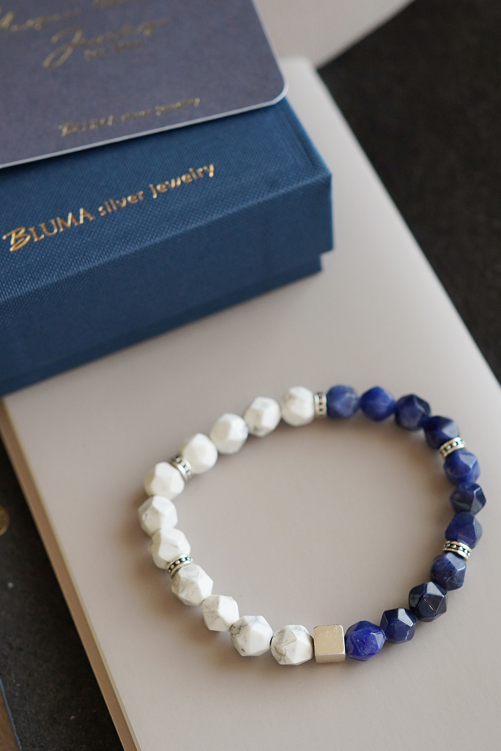 BLUMA 雲境純銀手鍊(白松石/老藍紋石)