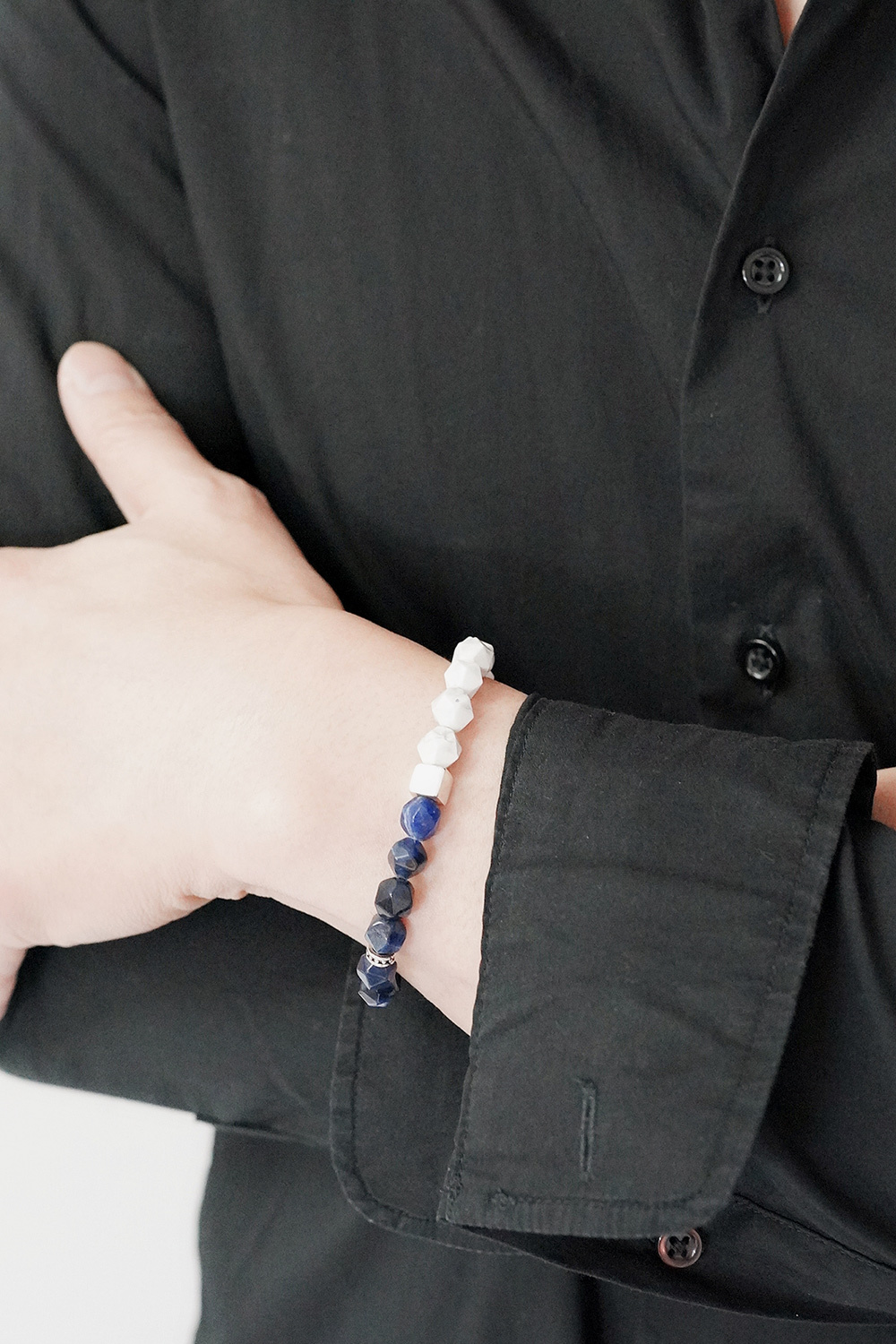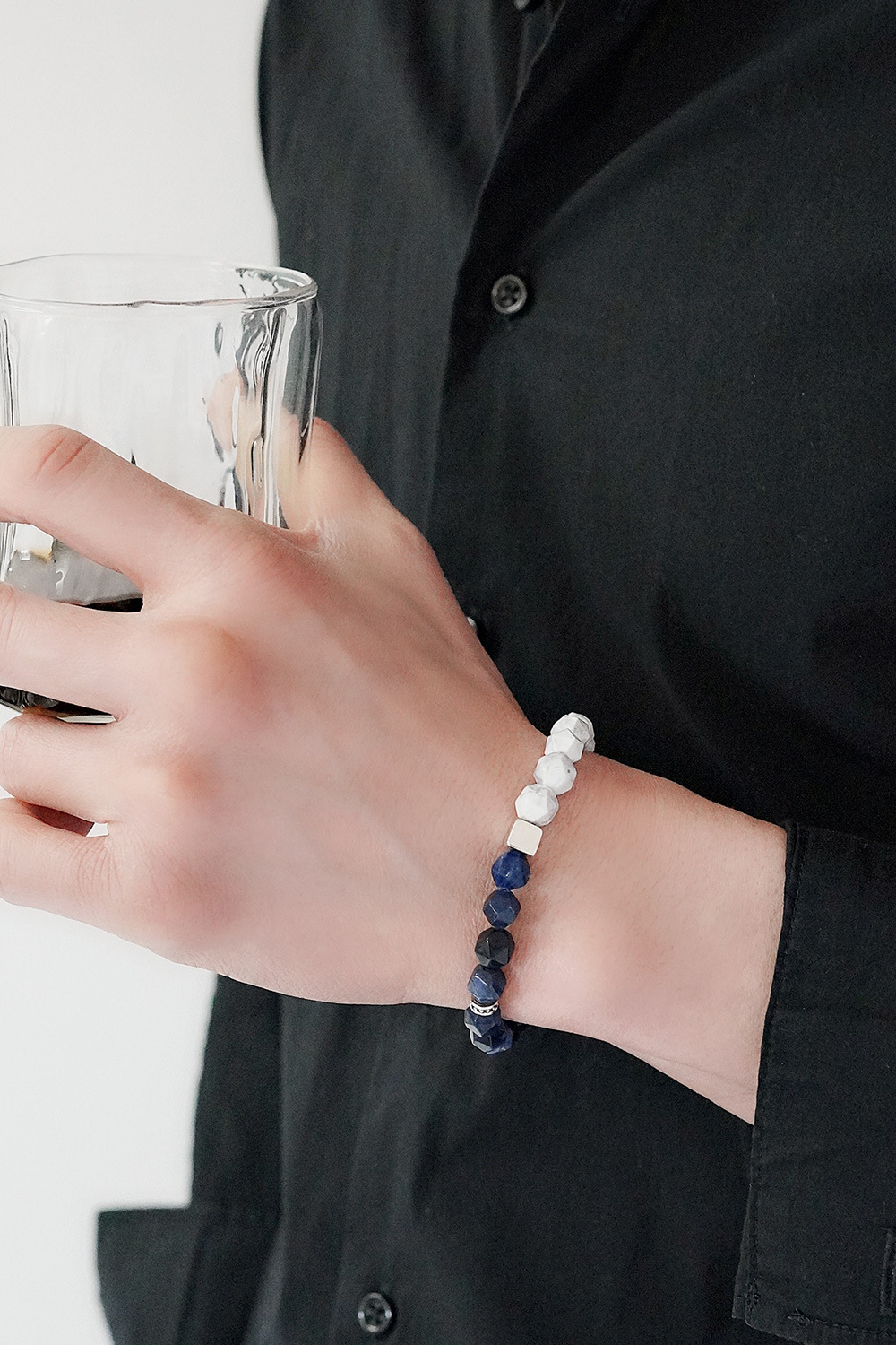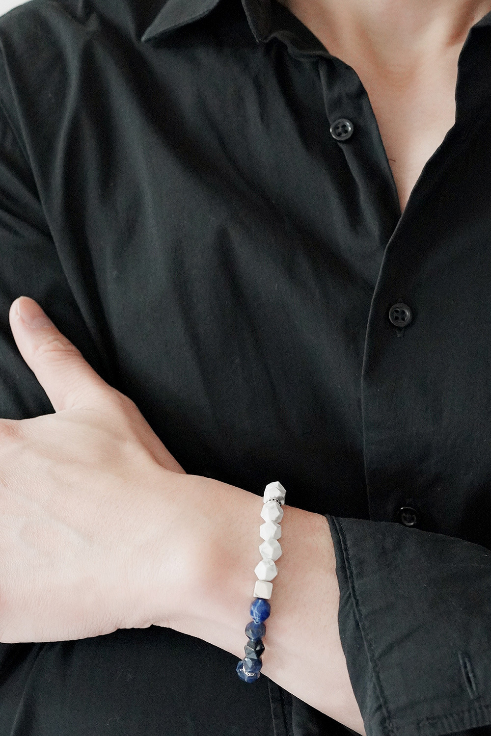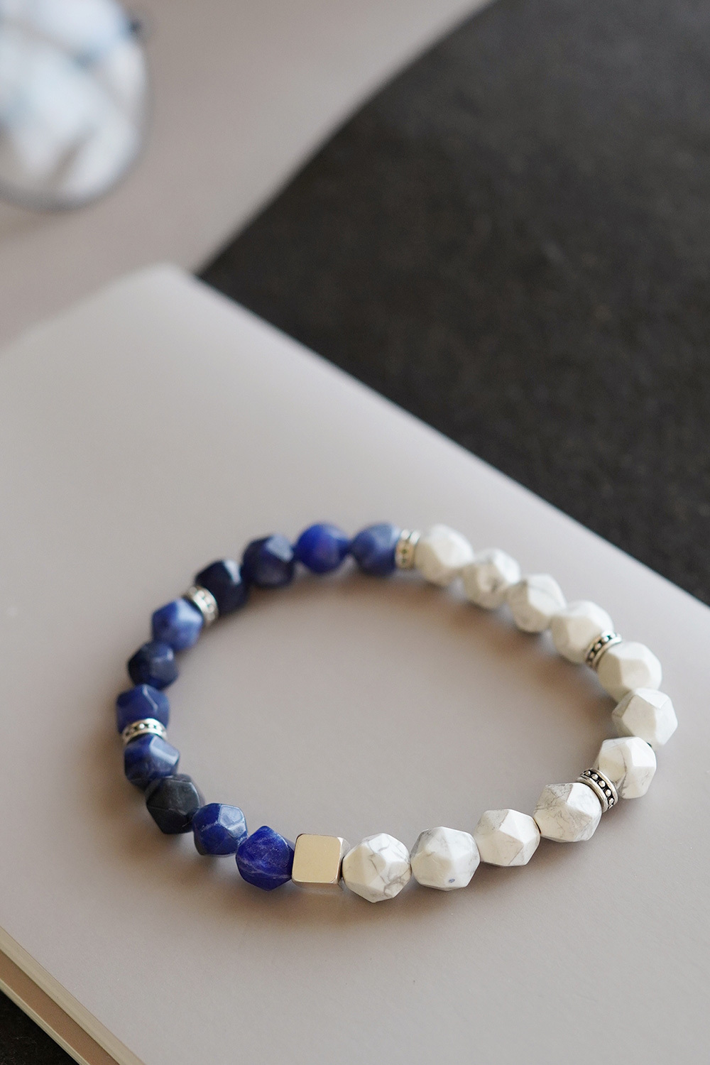 BLUMA 雲境純銀手鍊(白松石/老藍紋石)