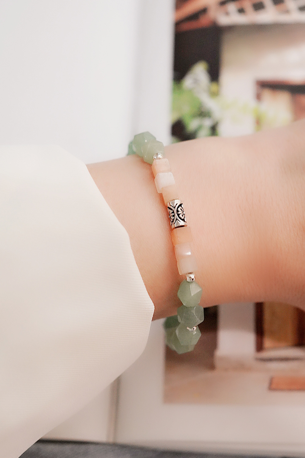 中間點綴 925純銀珠與復古銀間隔珠,讓金屬溫潤光澤襯出礦石的清透折射,整體簡約卻富有個性,低調更顯精緻高雅、帶著東方韻味。