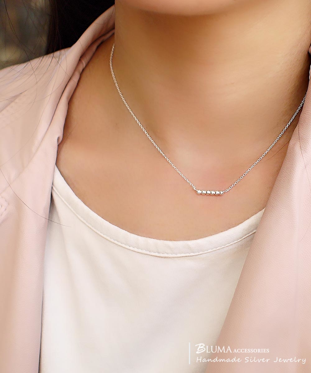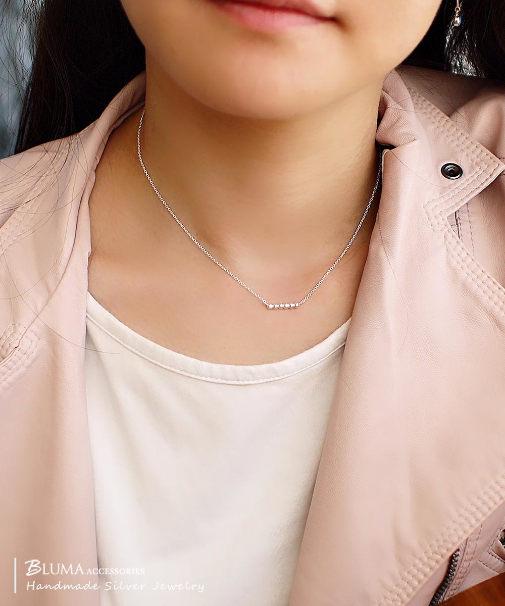 很有設計感的925純銀項鍊,小巧的圓珠排列點綴其中,迷你精緻,獨具品味!