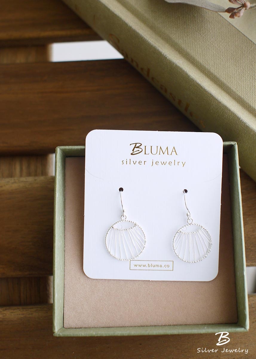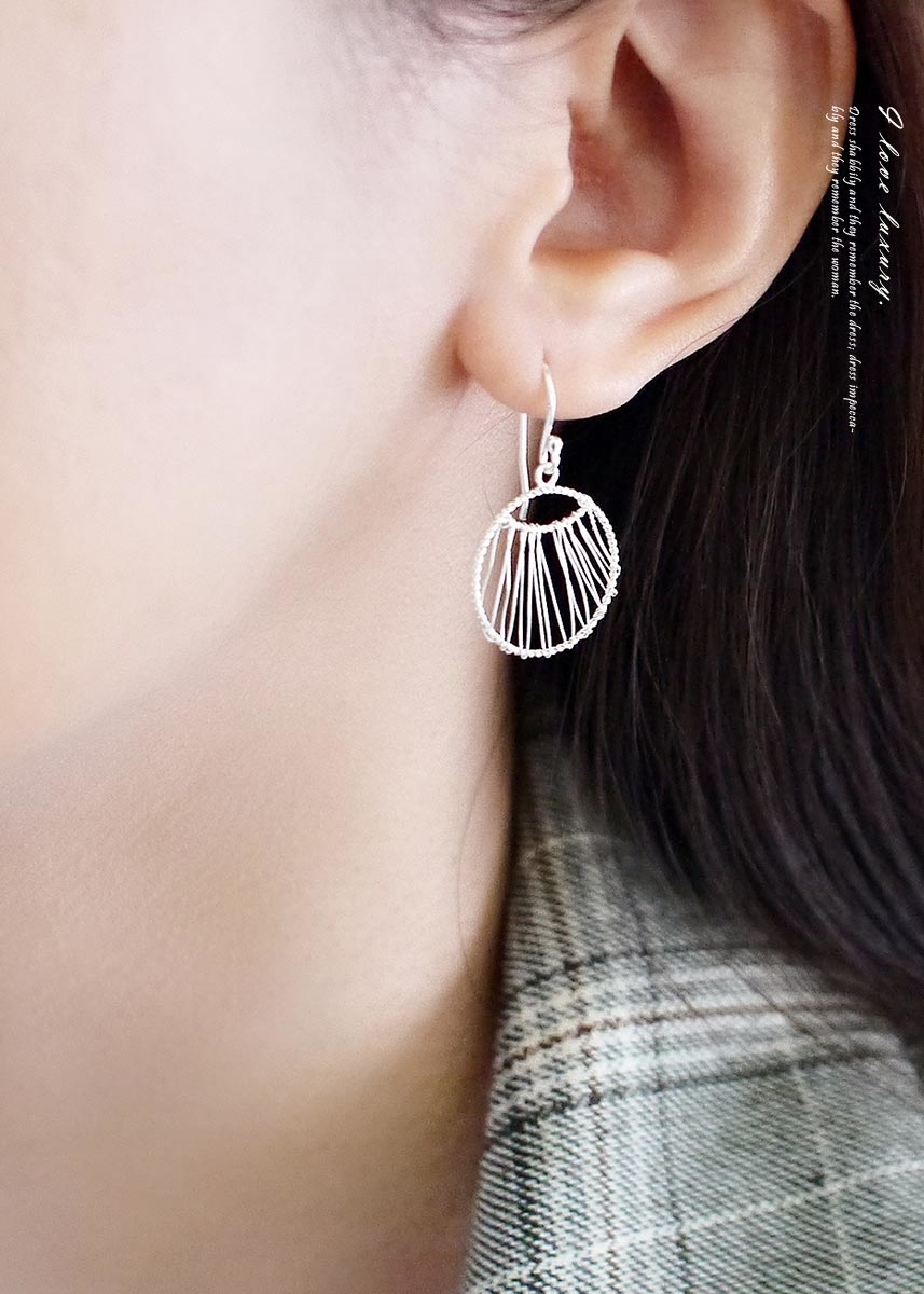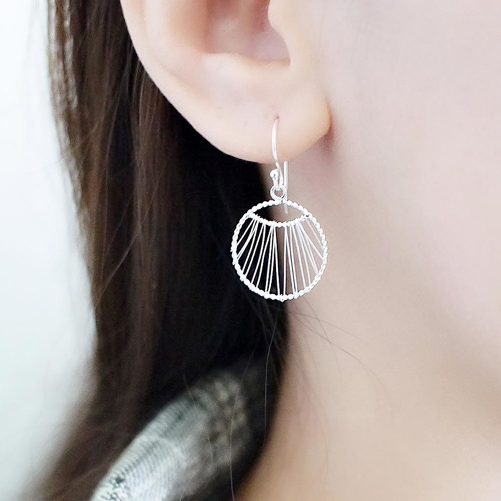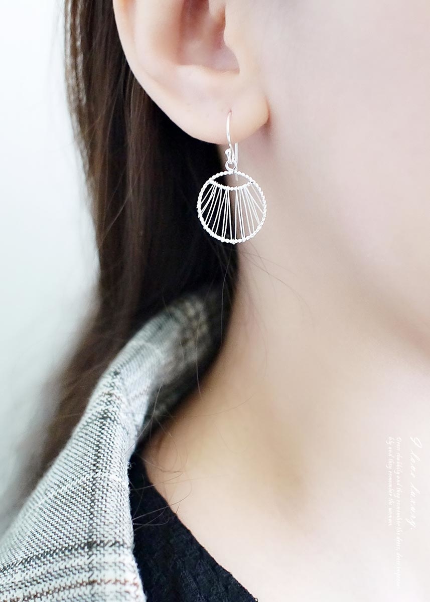 925純銀細線纏繞而成的垂墜圓形耳環,個性又富設計感!