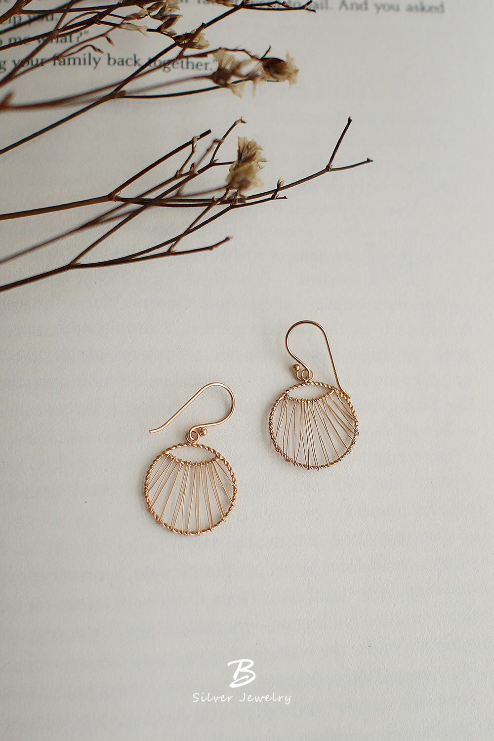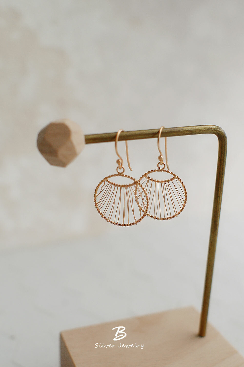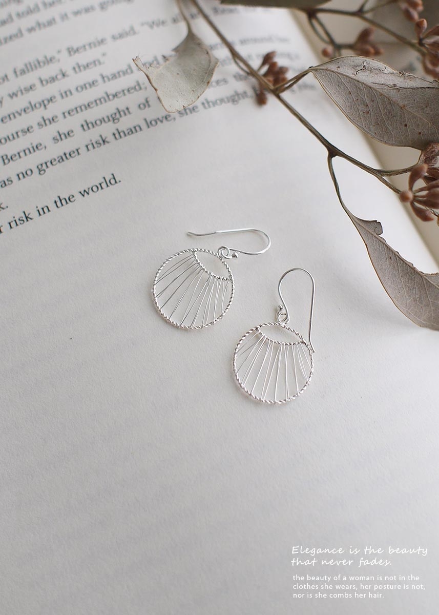 925純銀細線纏繞而成的垂墜圓形耳環,個性又富設計感!