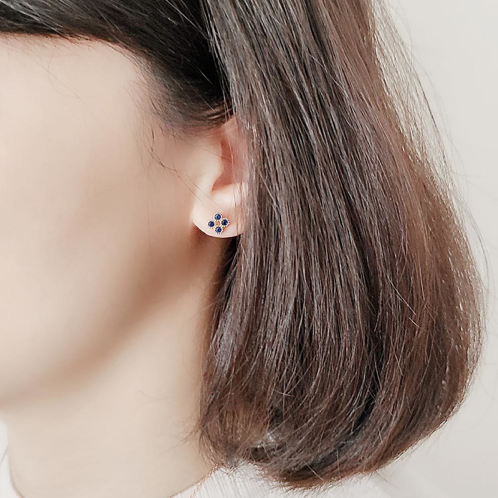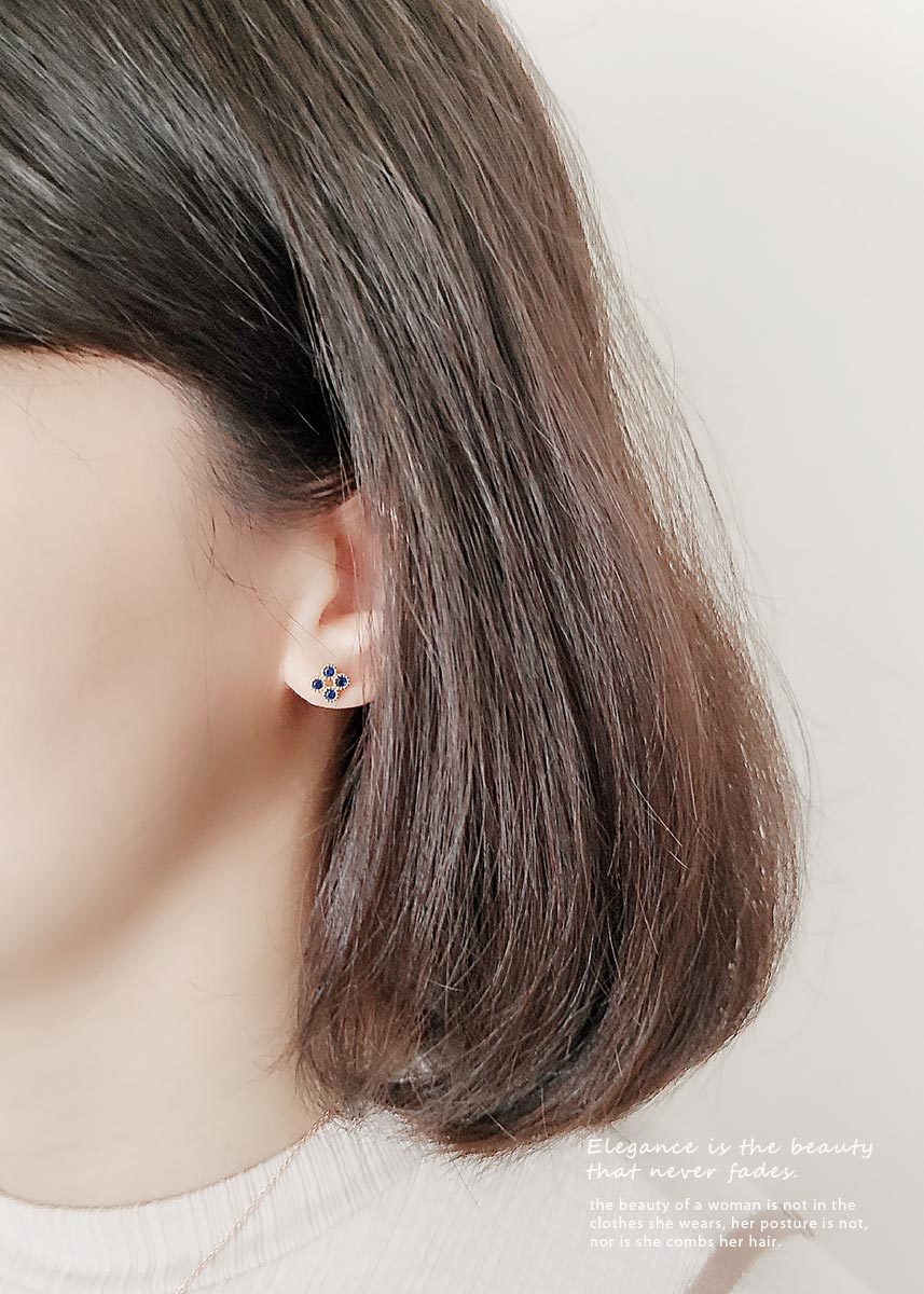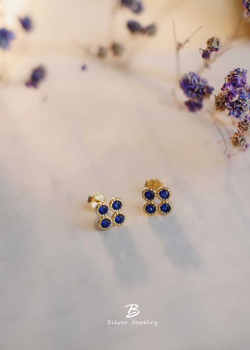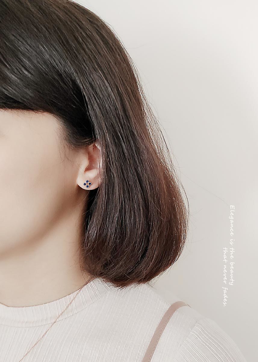 925純銀鍍14k金為底,典雅的菱形以深藍色圓形鋯石點綴,簡約優雅,散發奢華高級感。