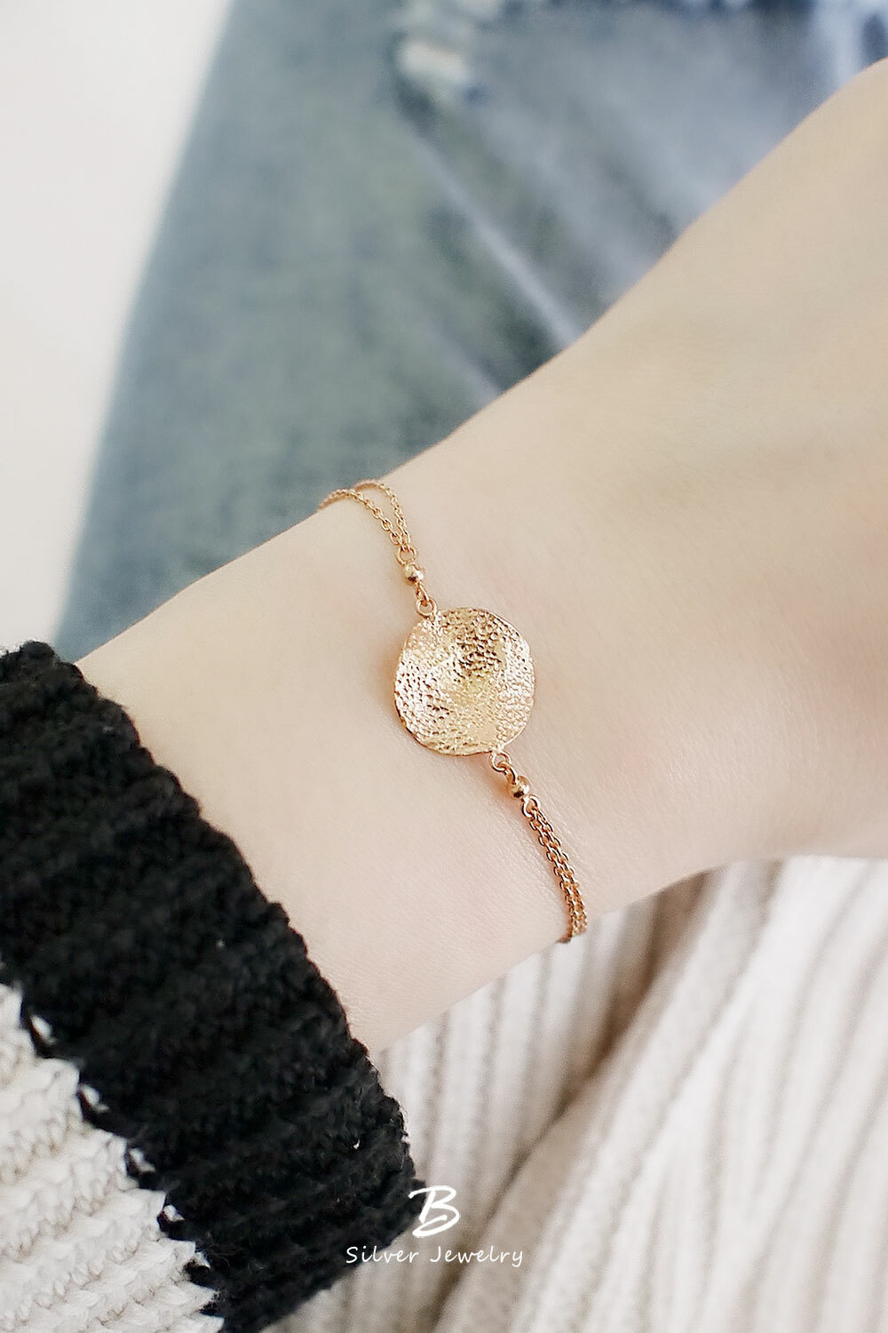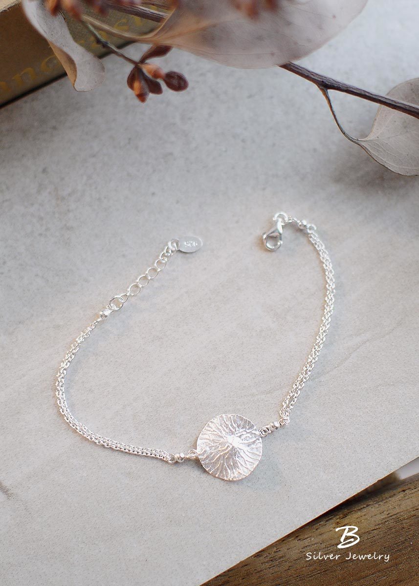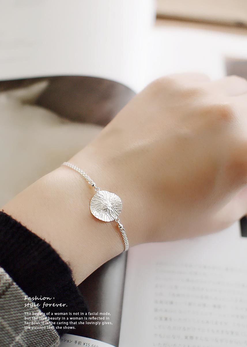 獨家訂製雙面圓片925純銀手鍊,自然波浪造型,獨具文藝品味。