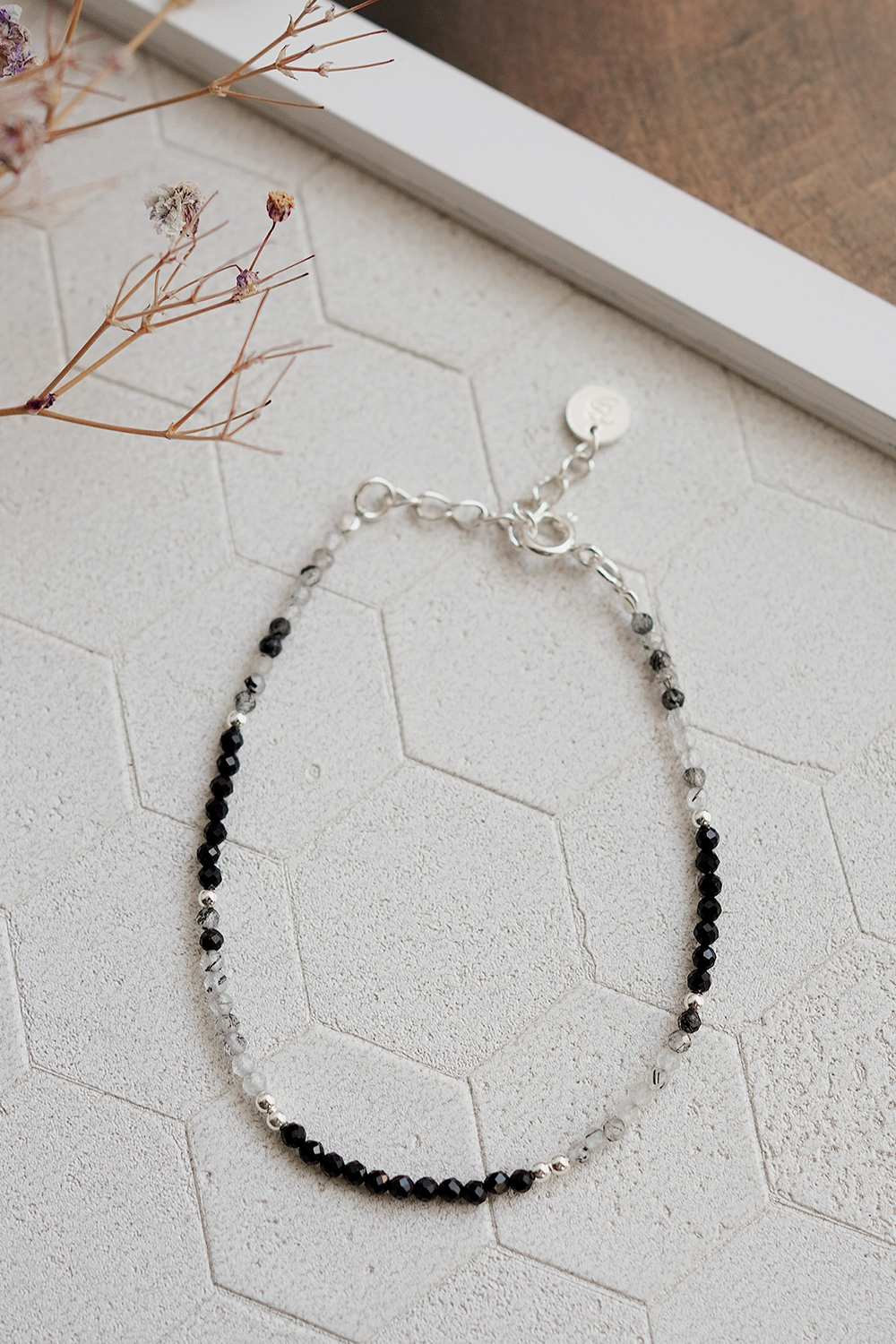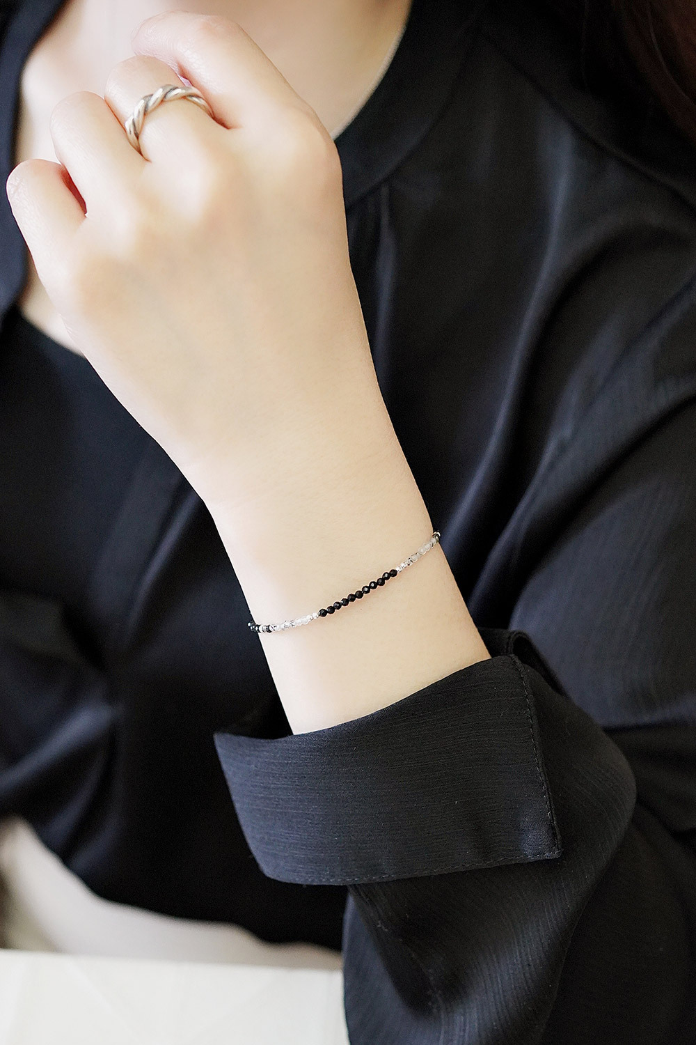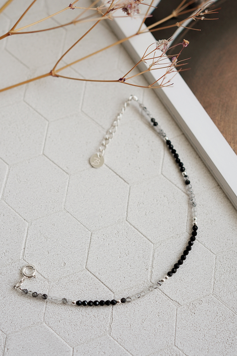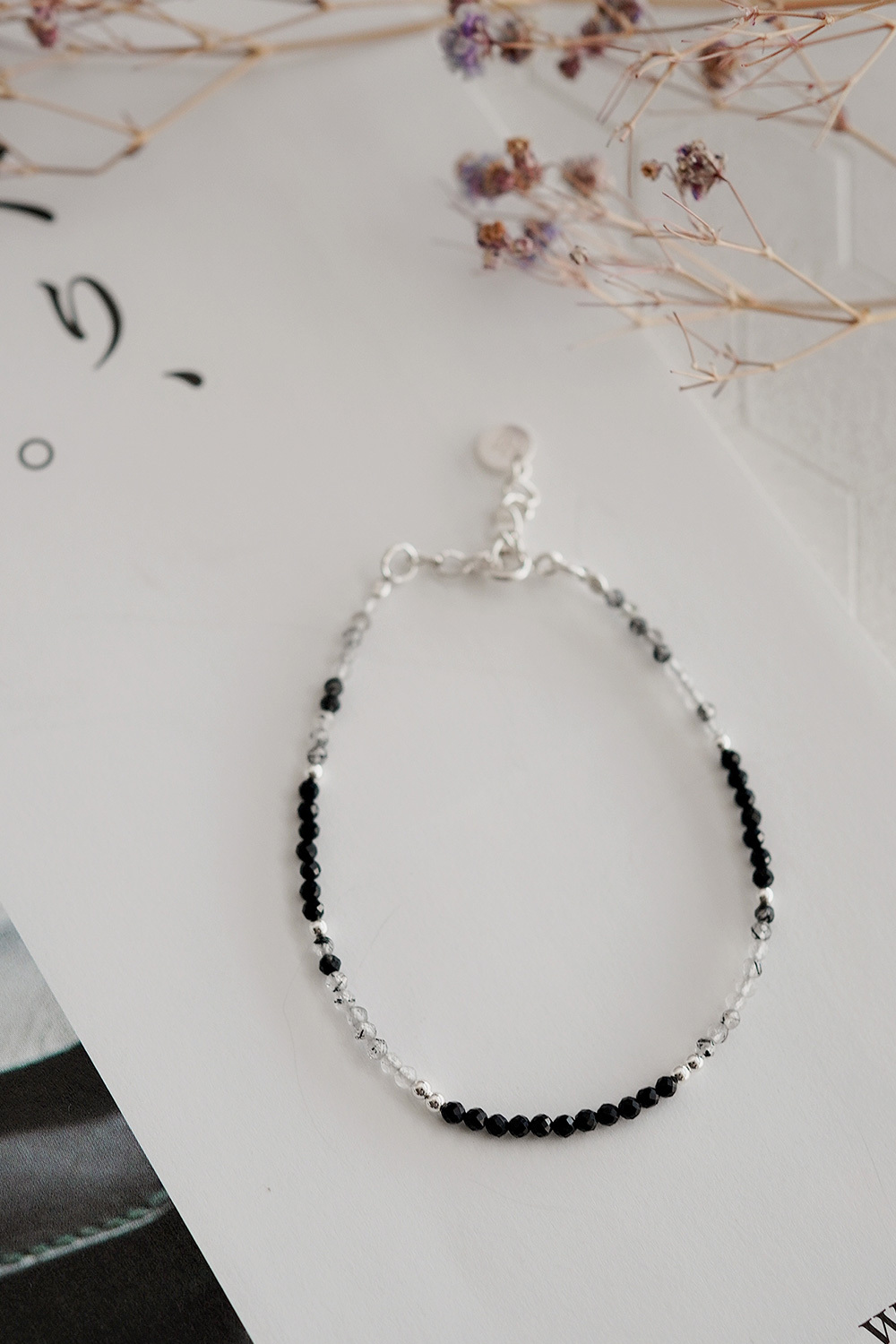 BLUMA法蘭西黑騎士純銀手鍊(黑瑪瑙/黑髮晶)