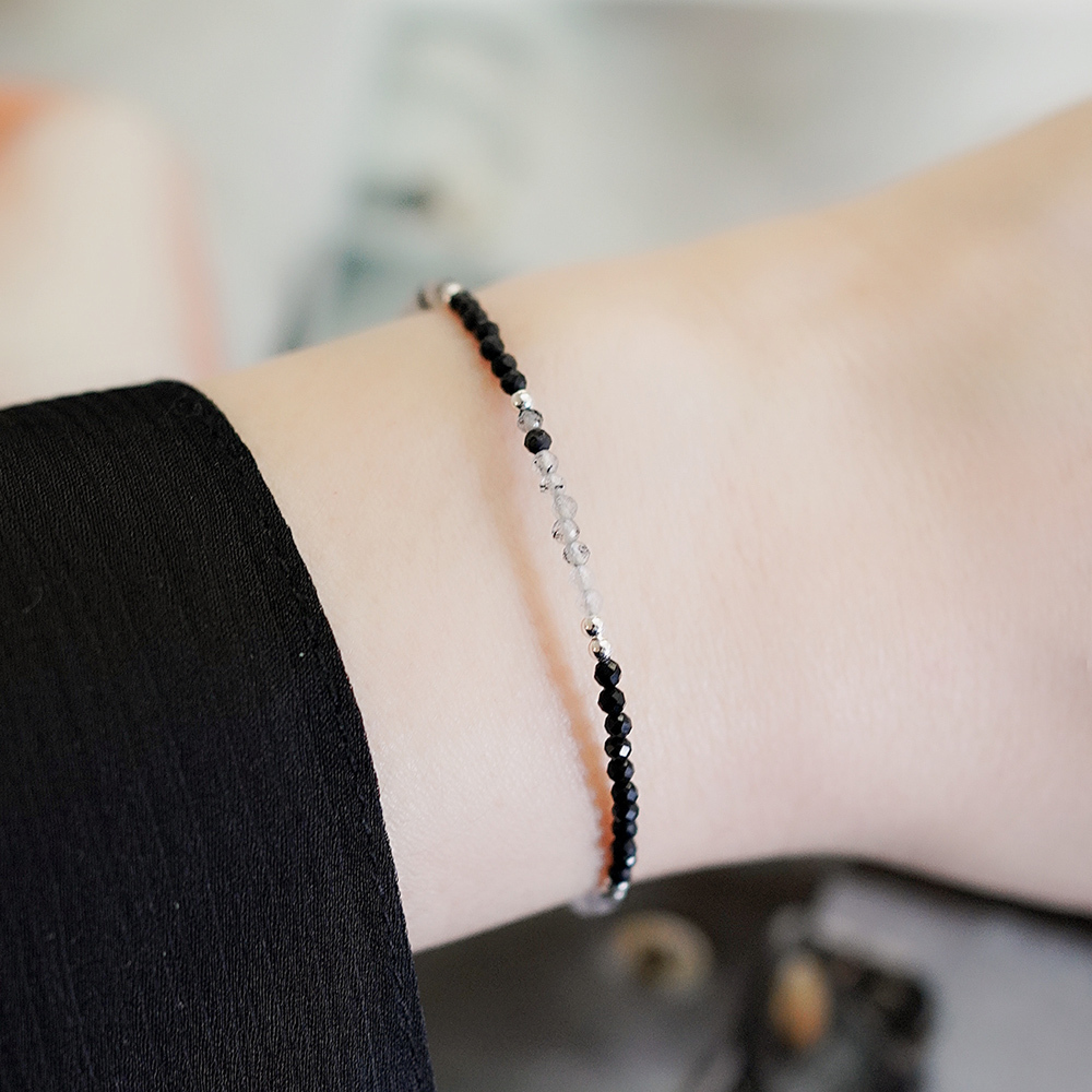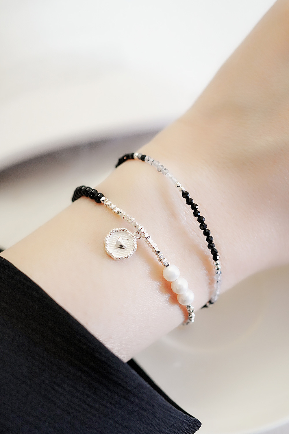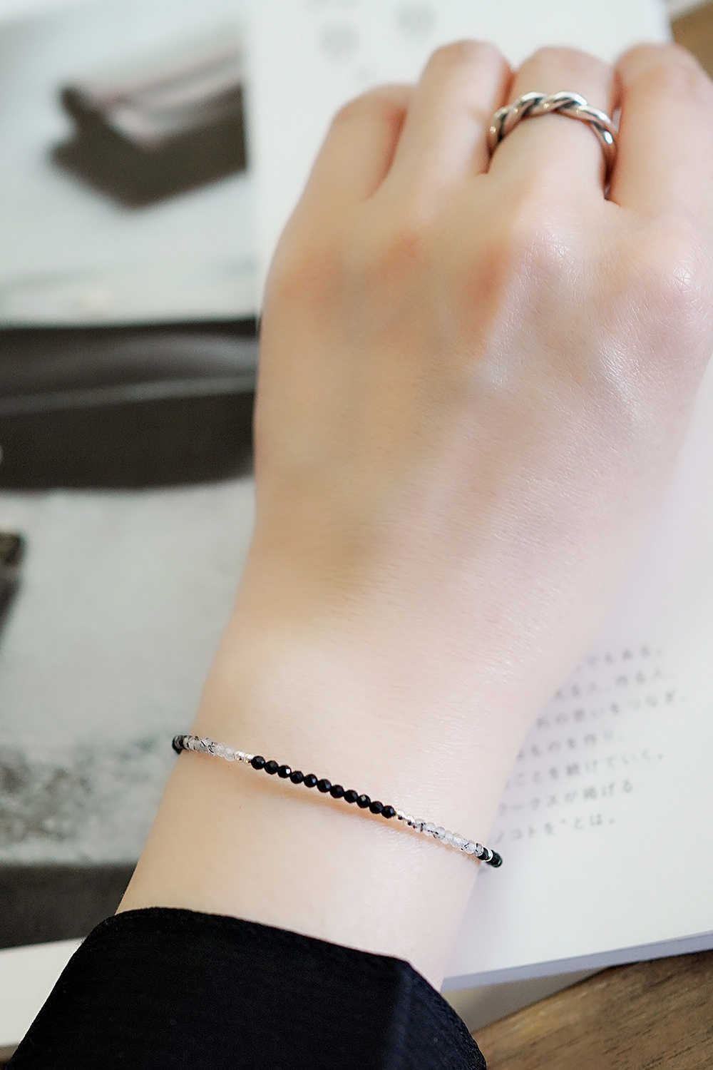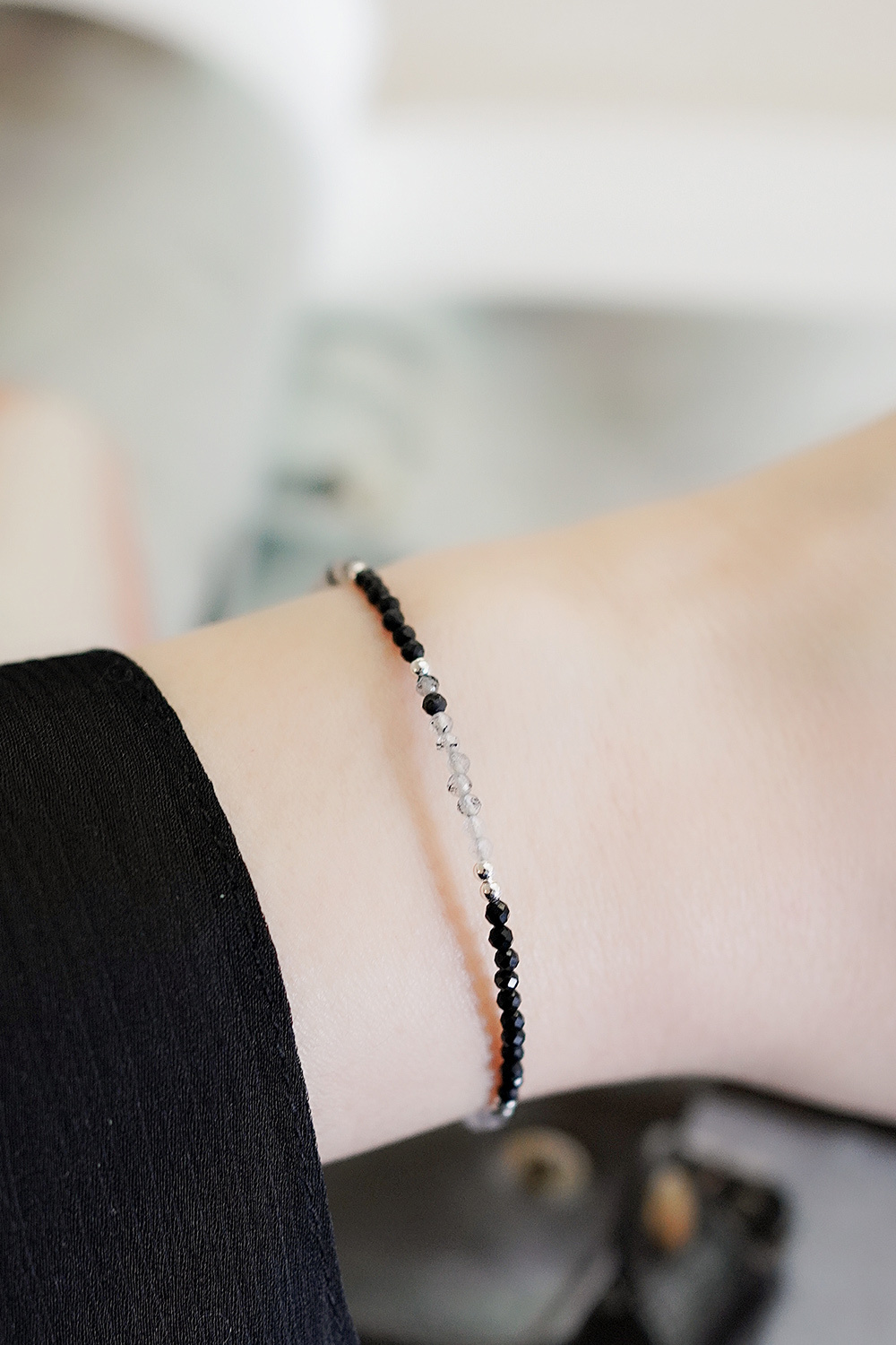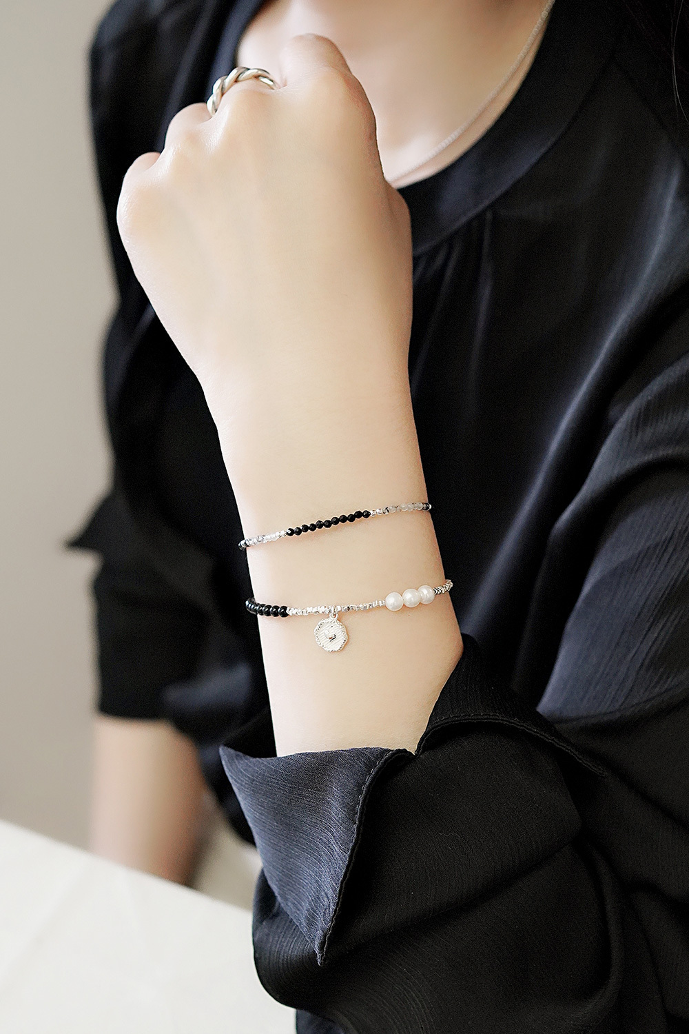 BLUMA法蘭西黑騎士純銀手鍊(黑瑪瑙/黑髮晶)