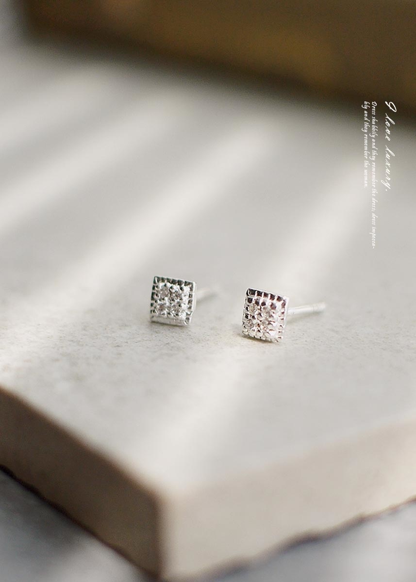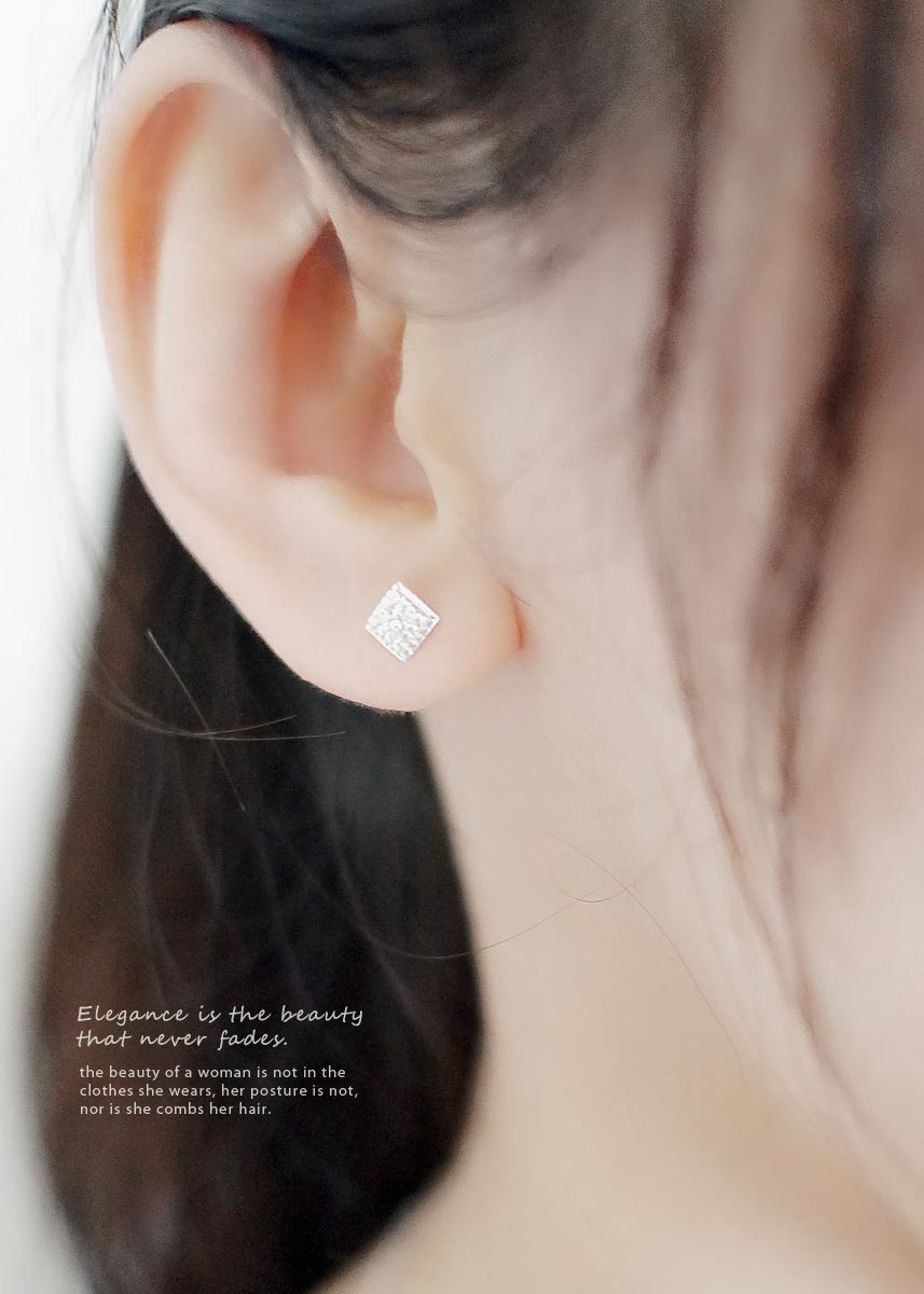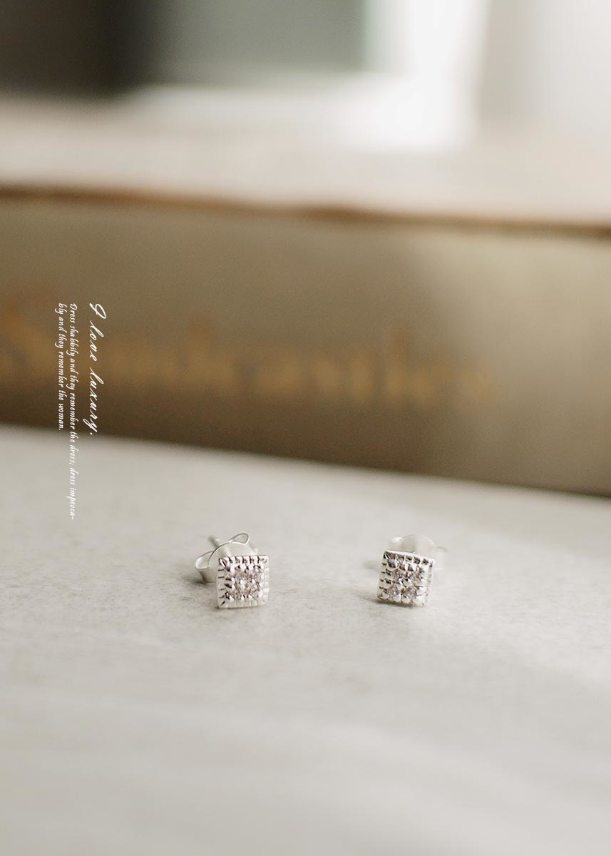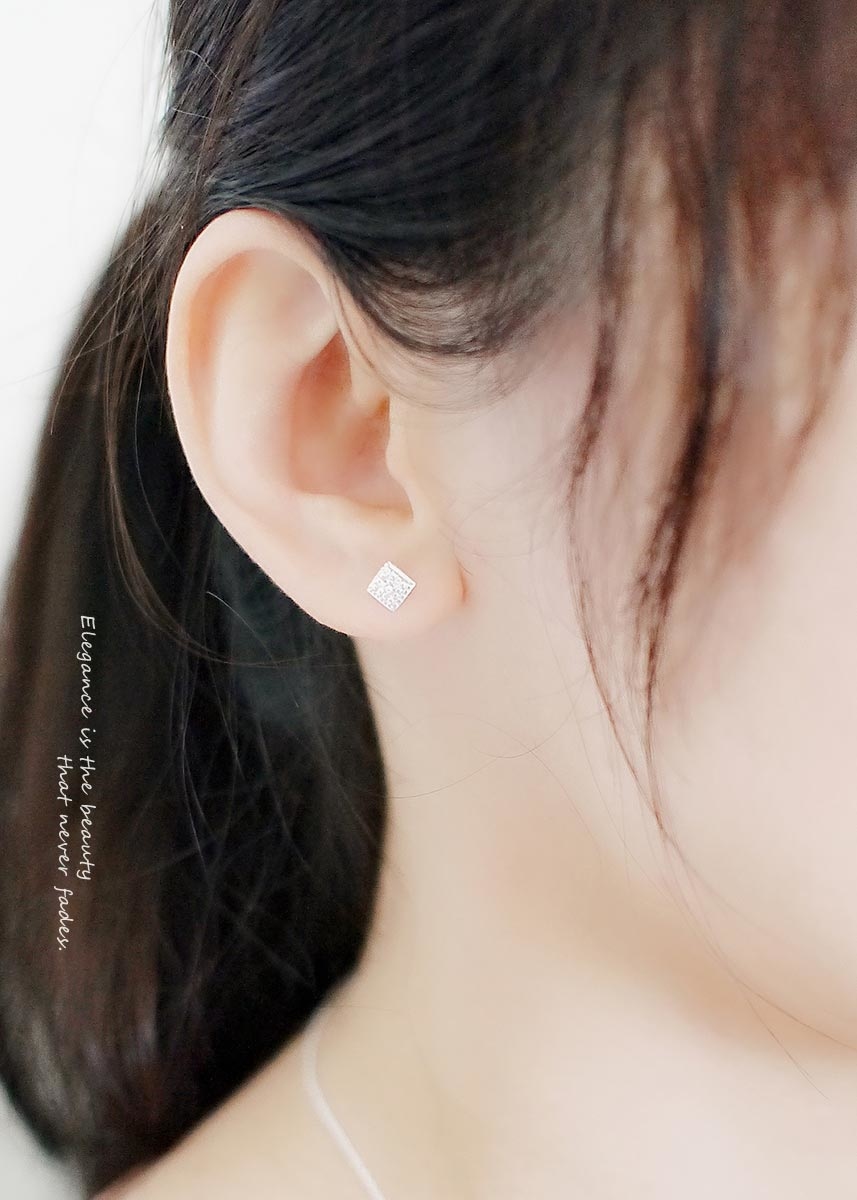 精緻迷人的925純銀耳環,簡約菱形設計,以白色鋯石點綴,低調展現優雅與奢華。