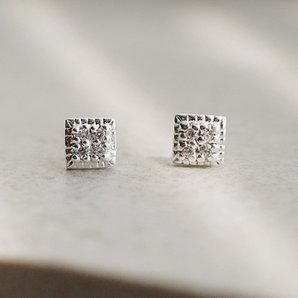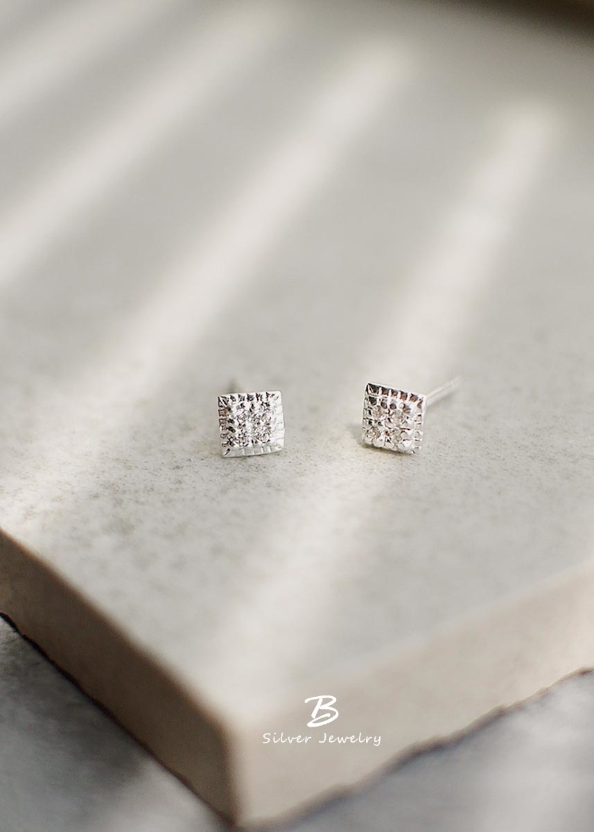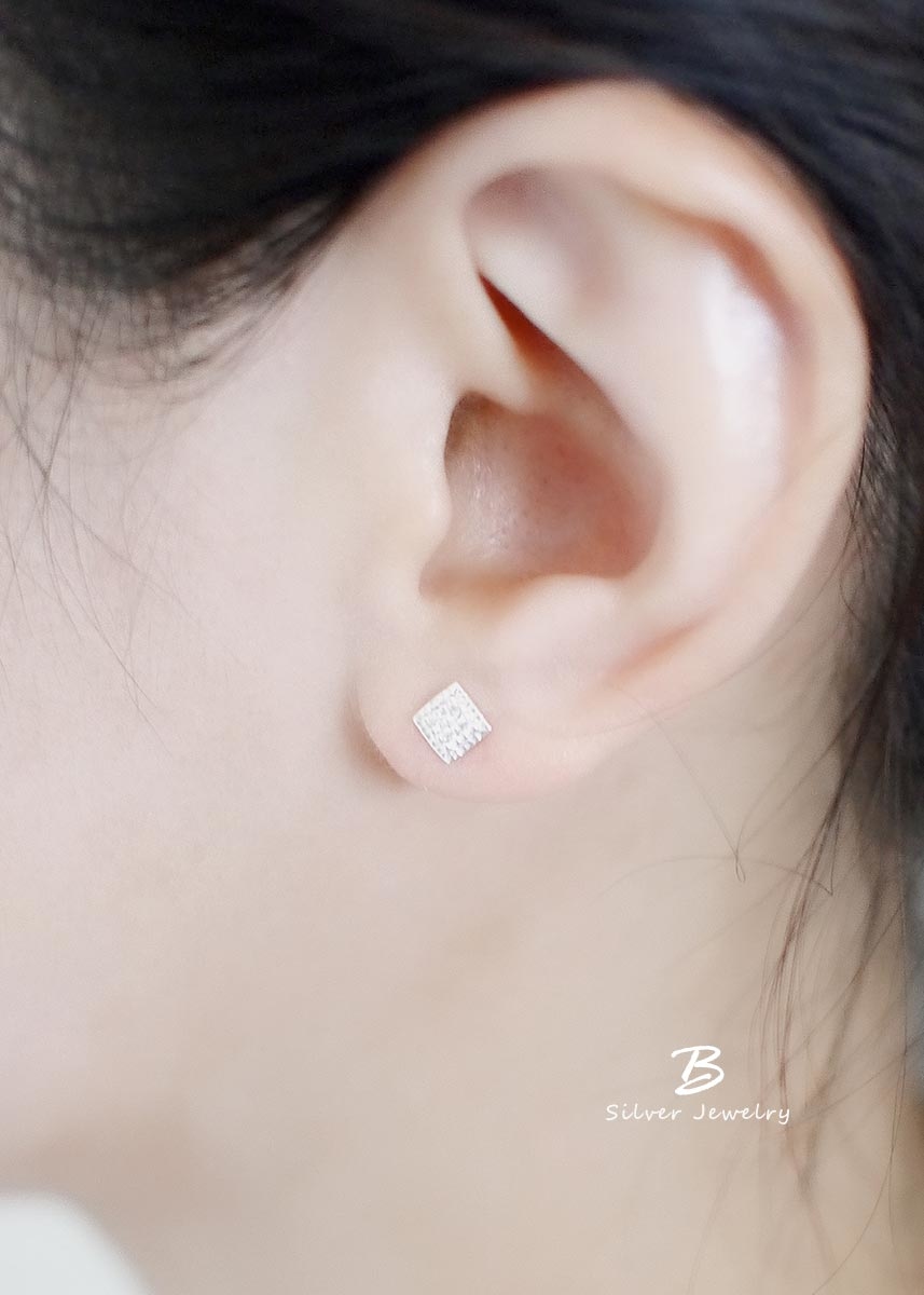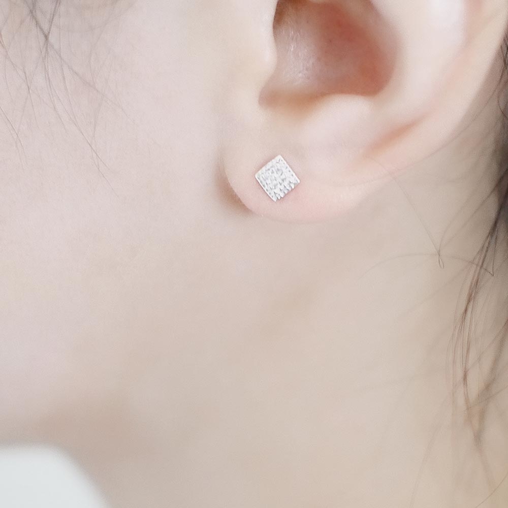 精緻迷人的925純銀耳環,簡約菱形設計,以白色鋯石點綴,低調展現優雅與奢華。
