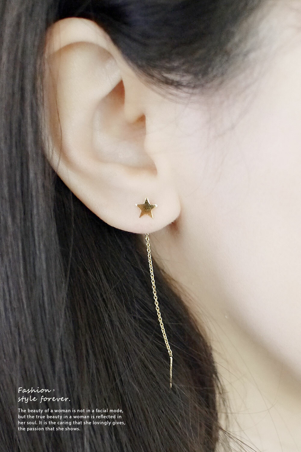 以流暢的線條在耳邊輕盈垂墜,勾勒出優美的弧線。