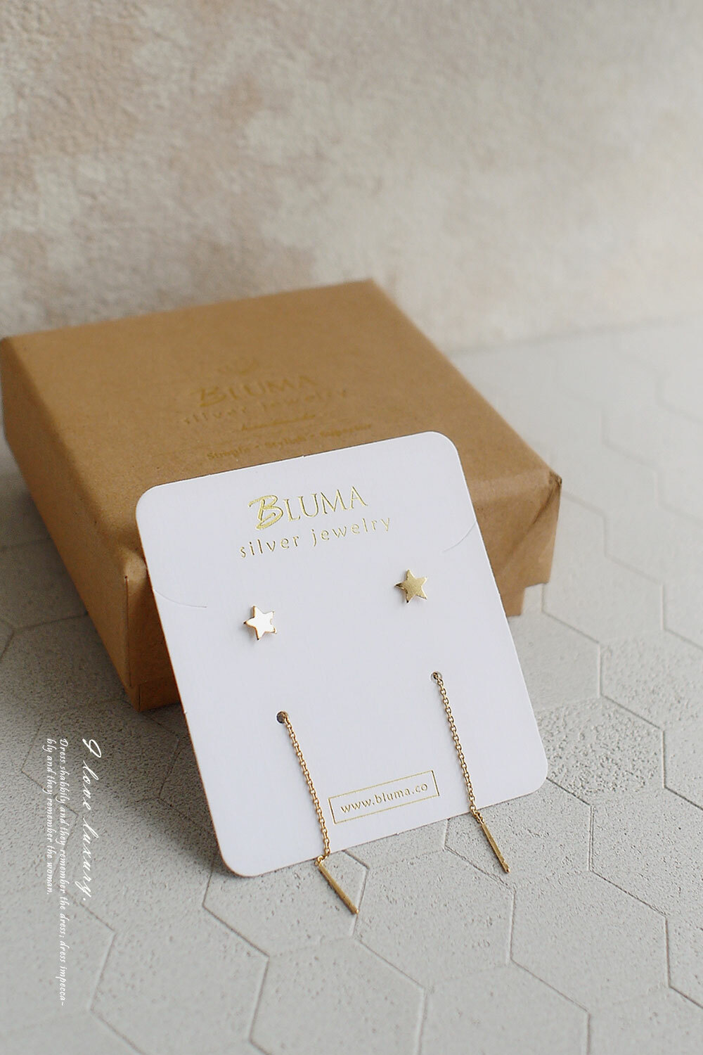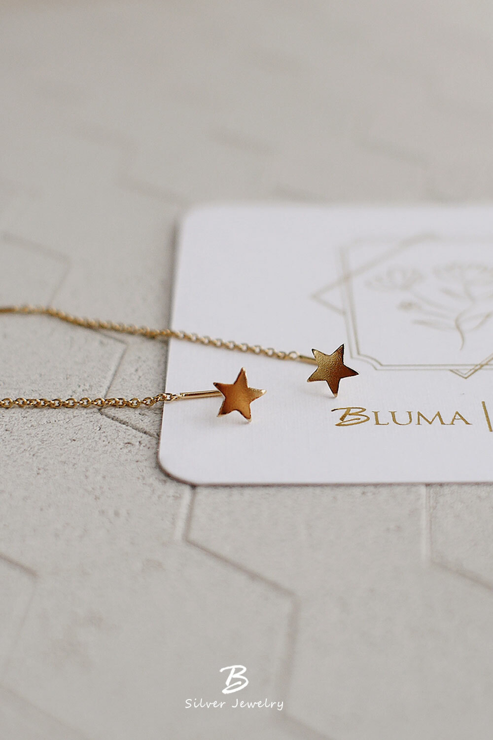 BLUMA金色星軌耳線式純銀耳環