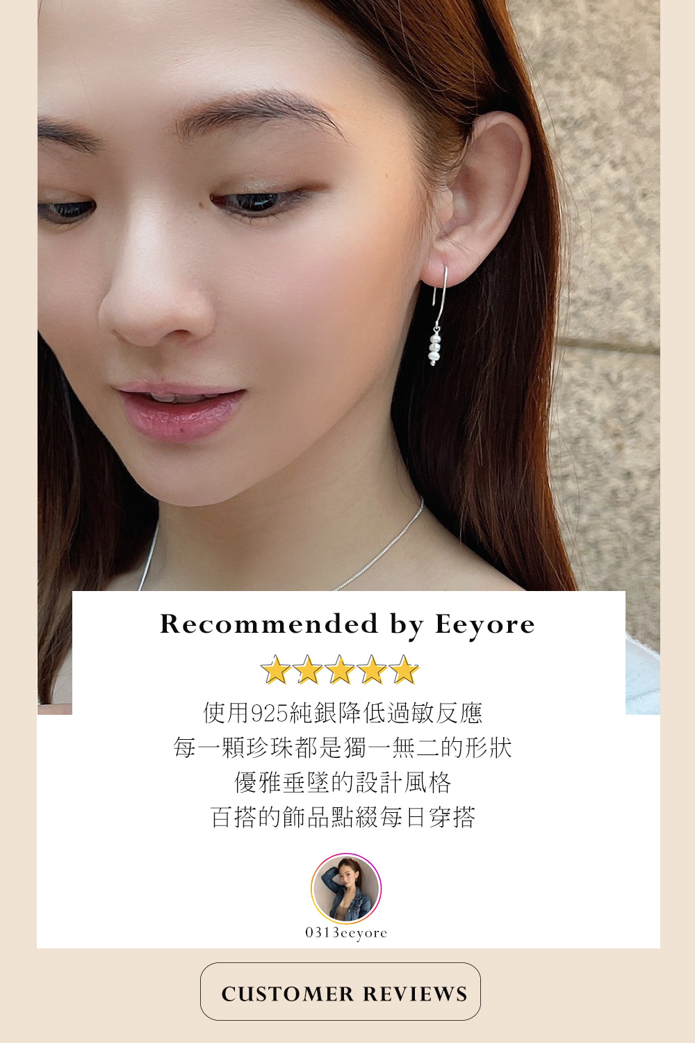 耳環採用的小顆的淡水珍珠