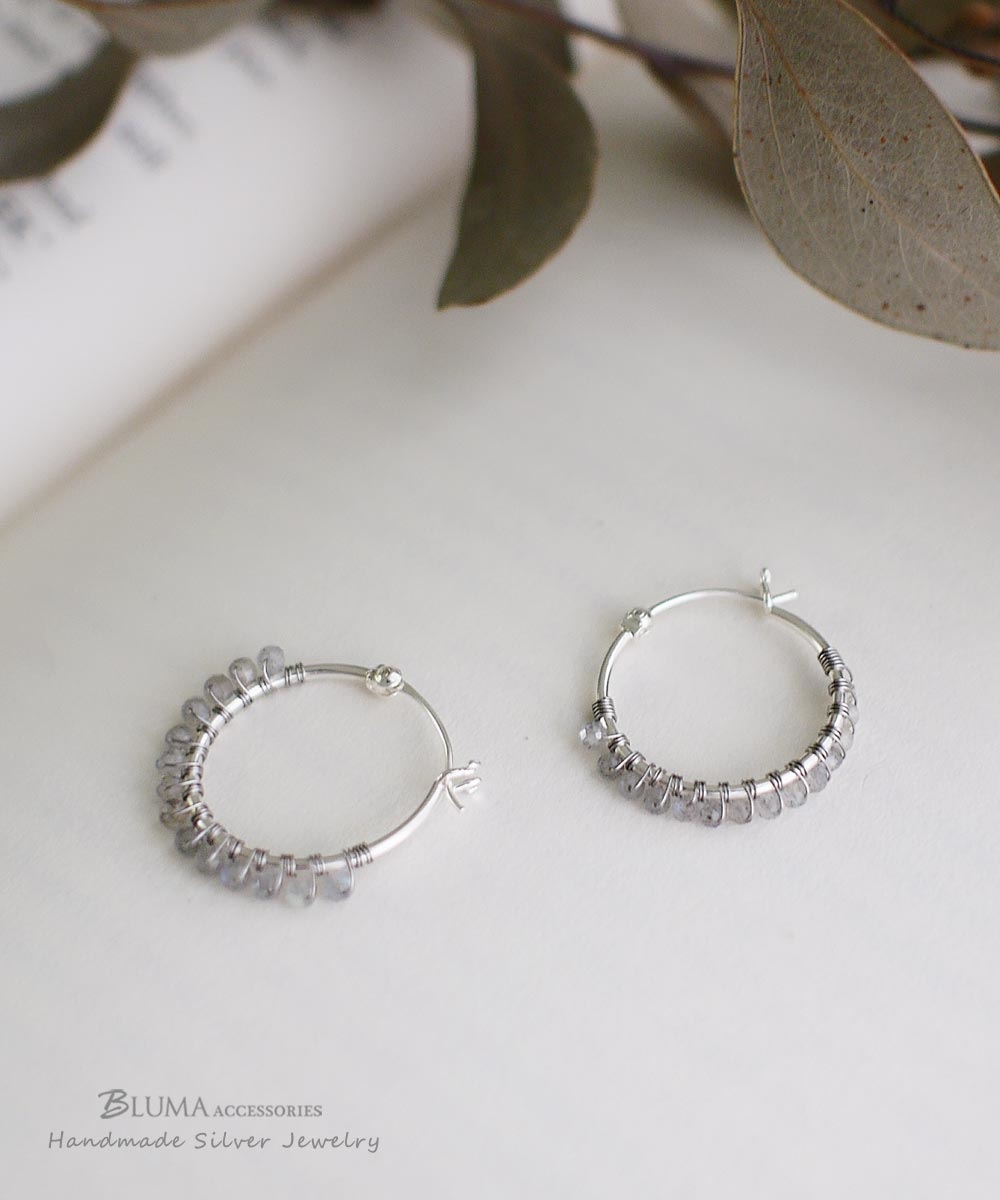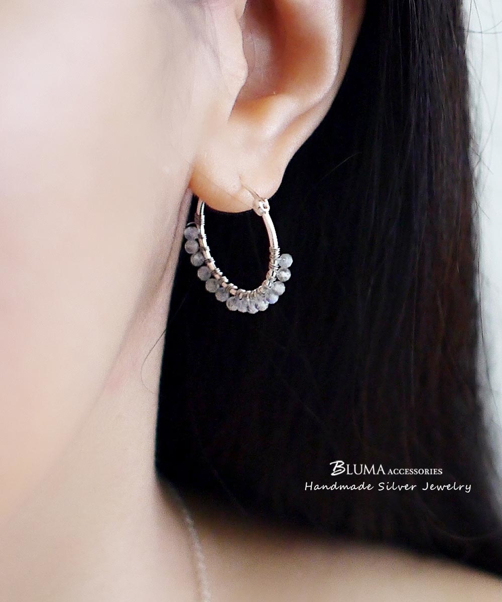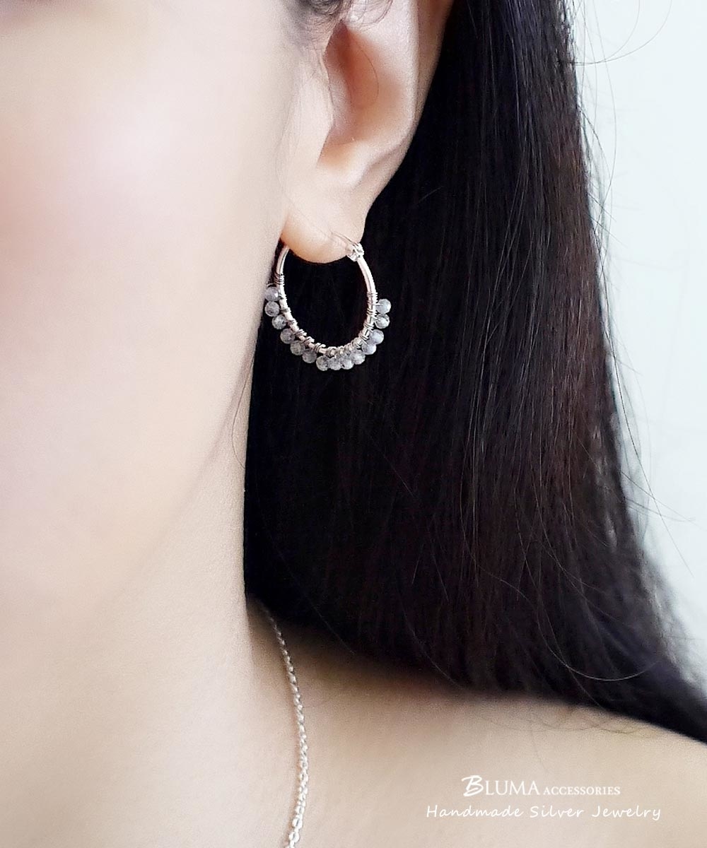 象徵富貴與長壽的的天然拉長石,有著美麗多變的光芒,以低敏性的925純銀圈排列成優雅圓弧,展現精緻美感。