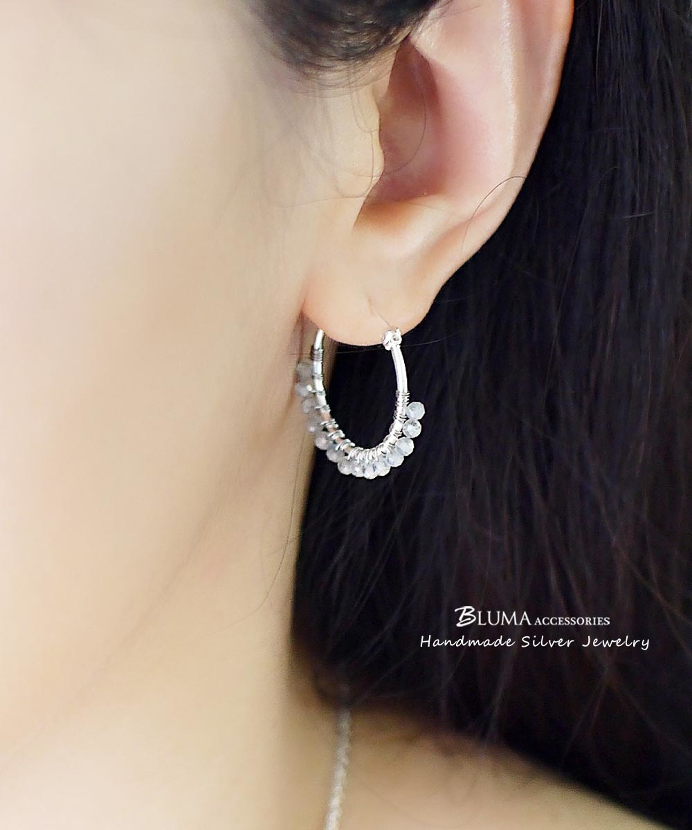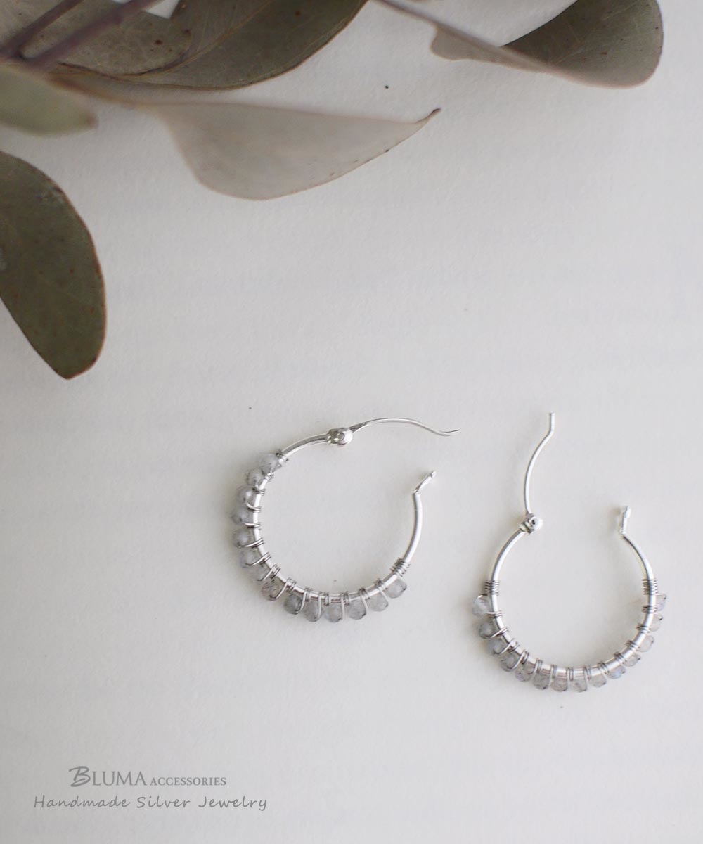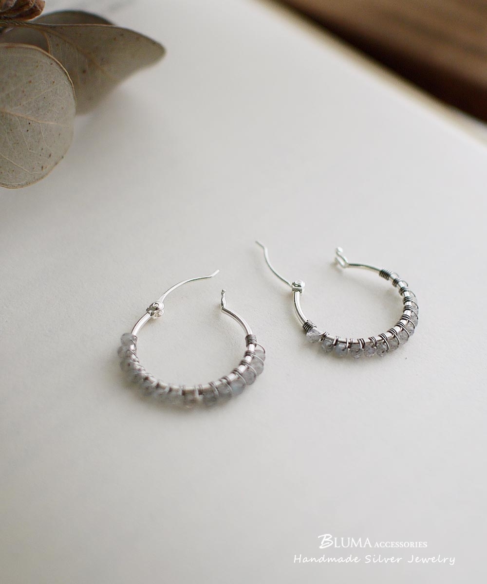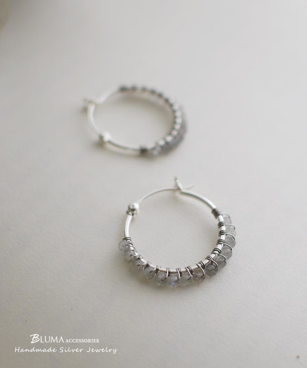 象徵富貴與長壽的的天然拉長石,有著美麗多變的光芒,以低敏性的925純銀圈排列成優雅圓弧,展現精緻美感。