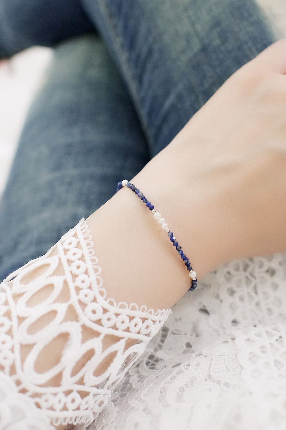 搭配淡水珍珠與925純銀珠,更加顯色,優雅別緻的點綴在手腕上