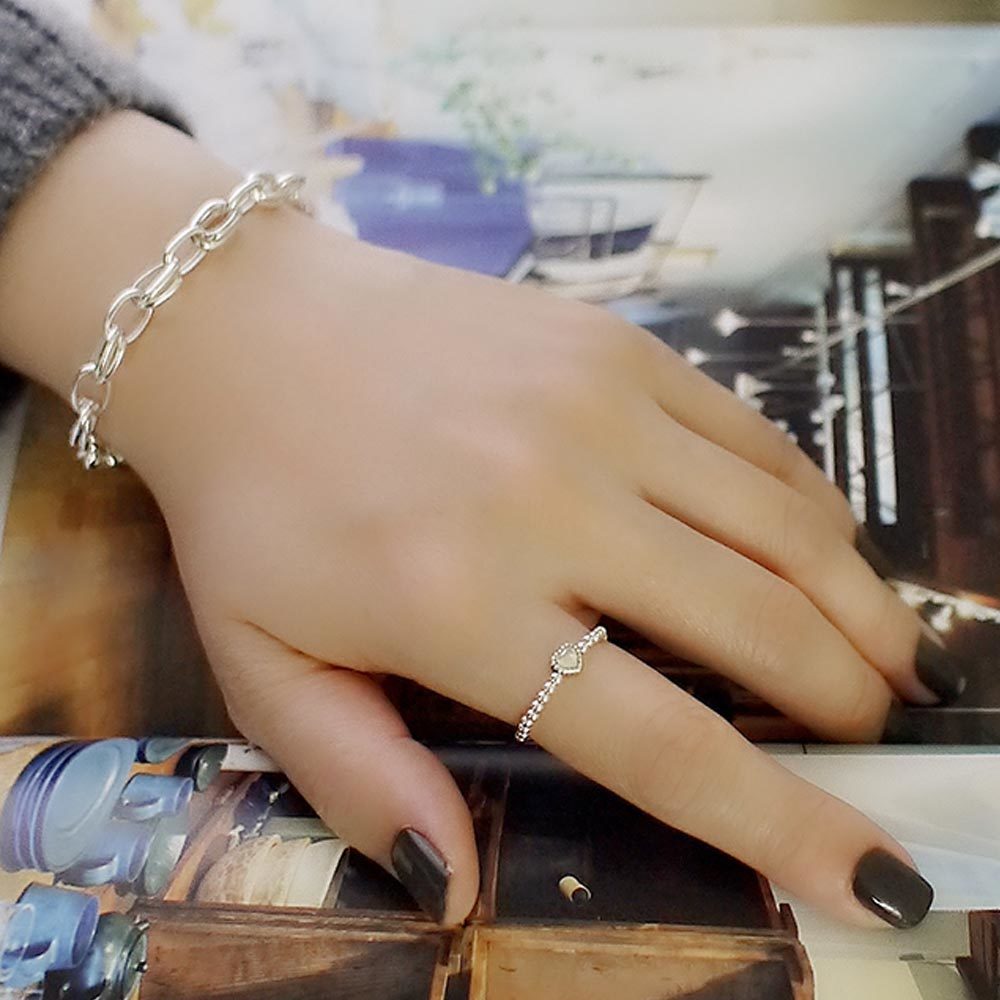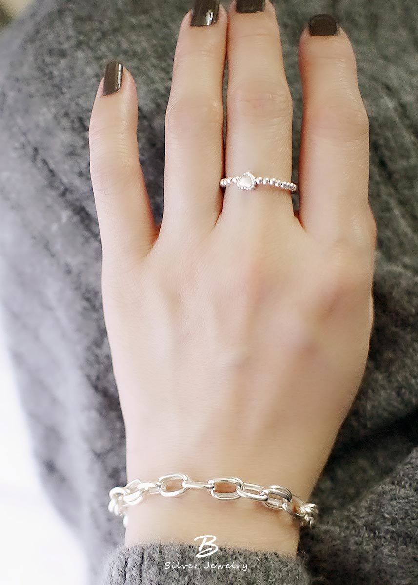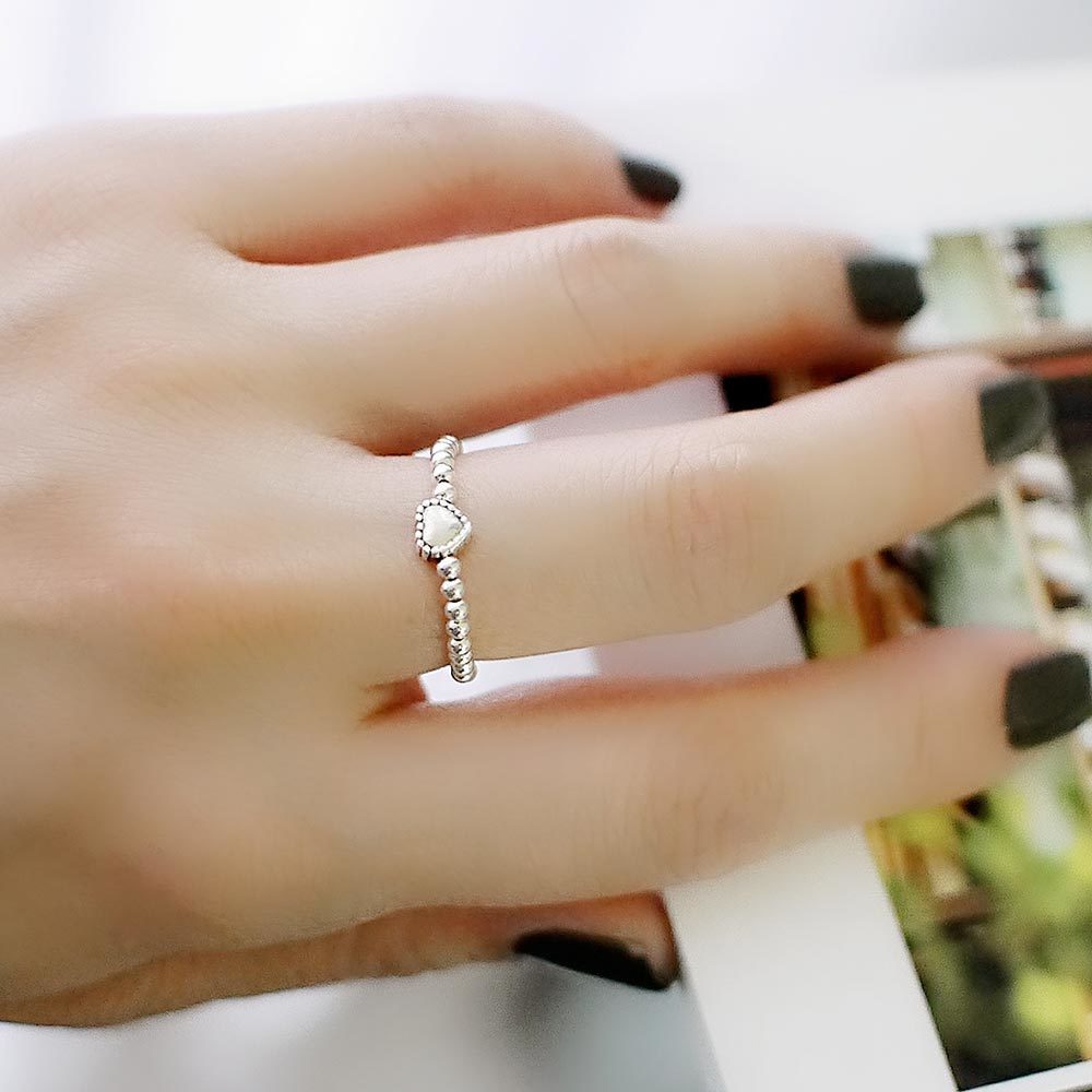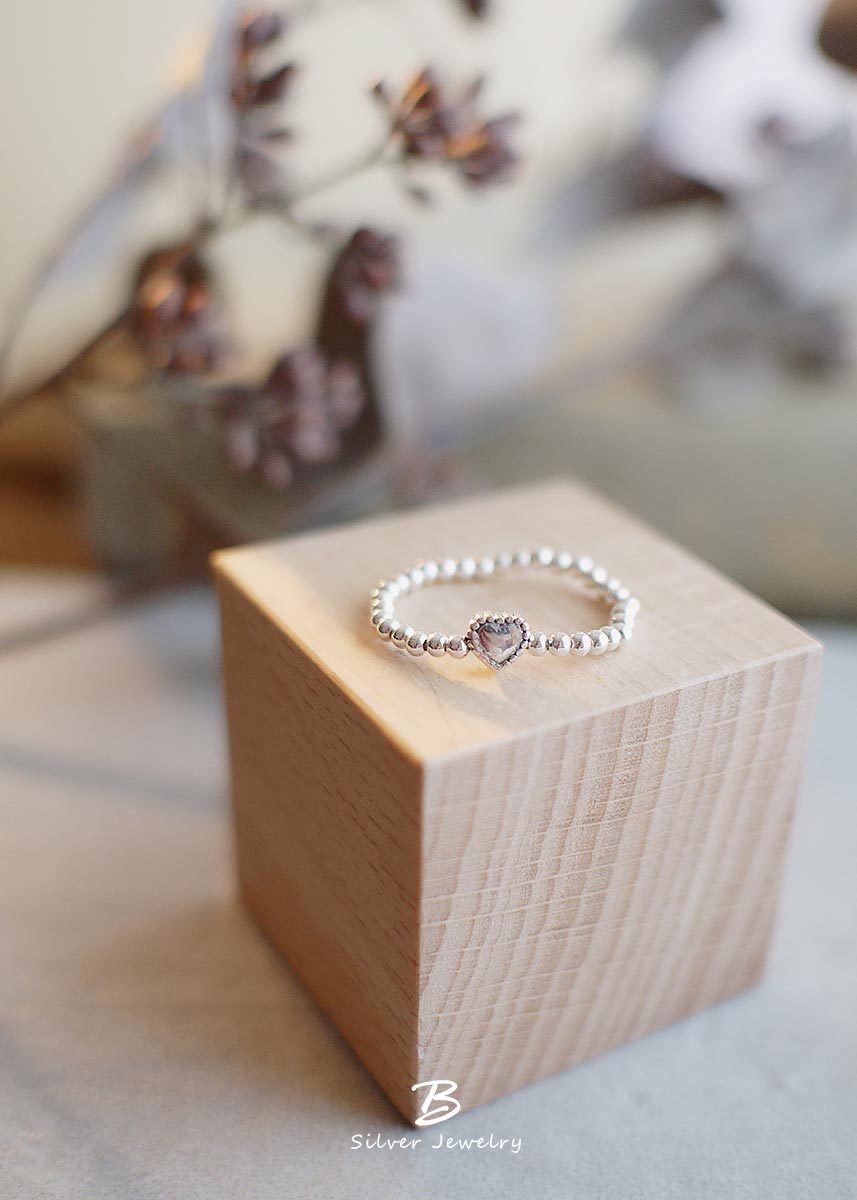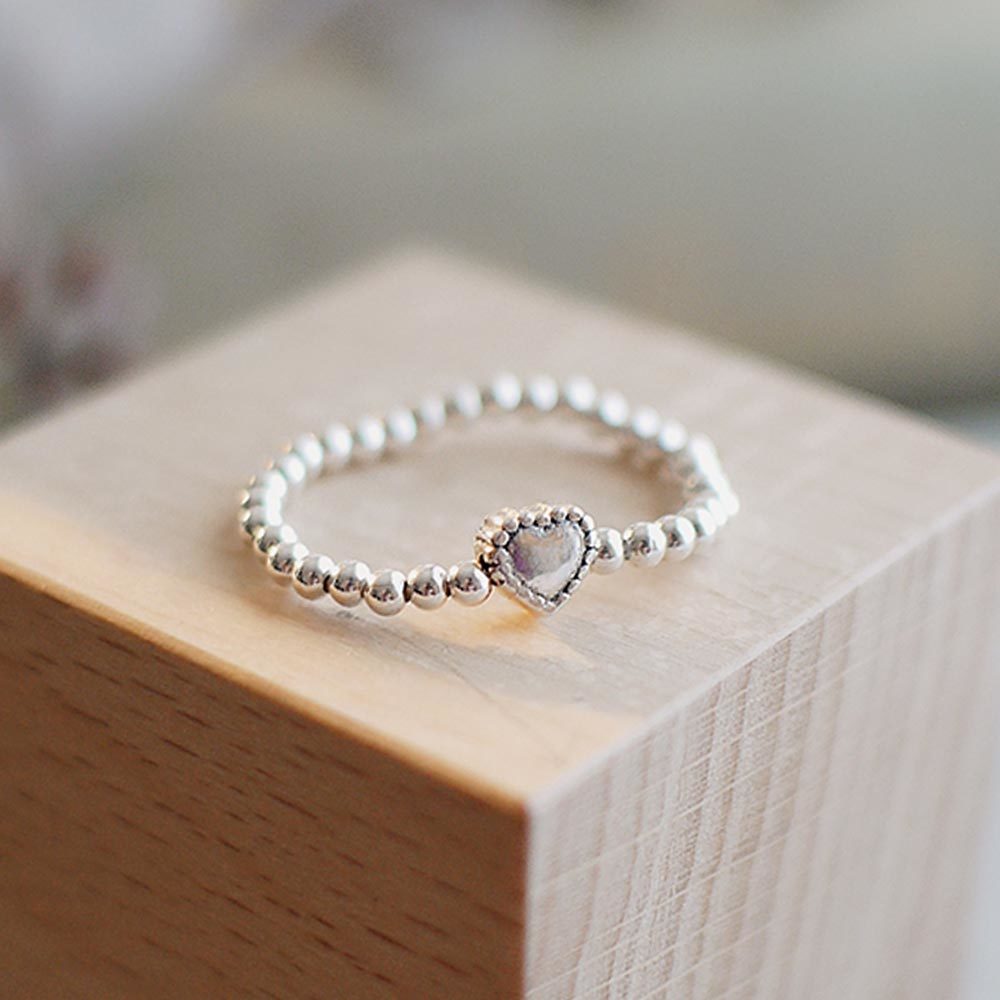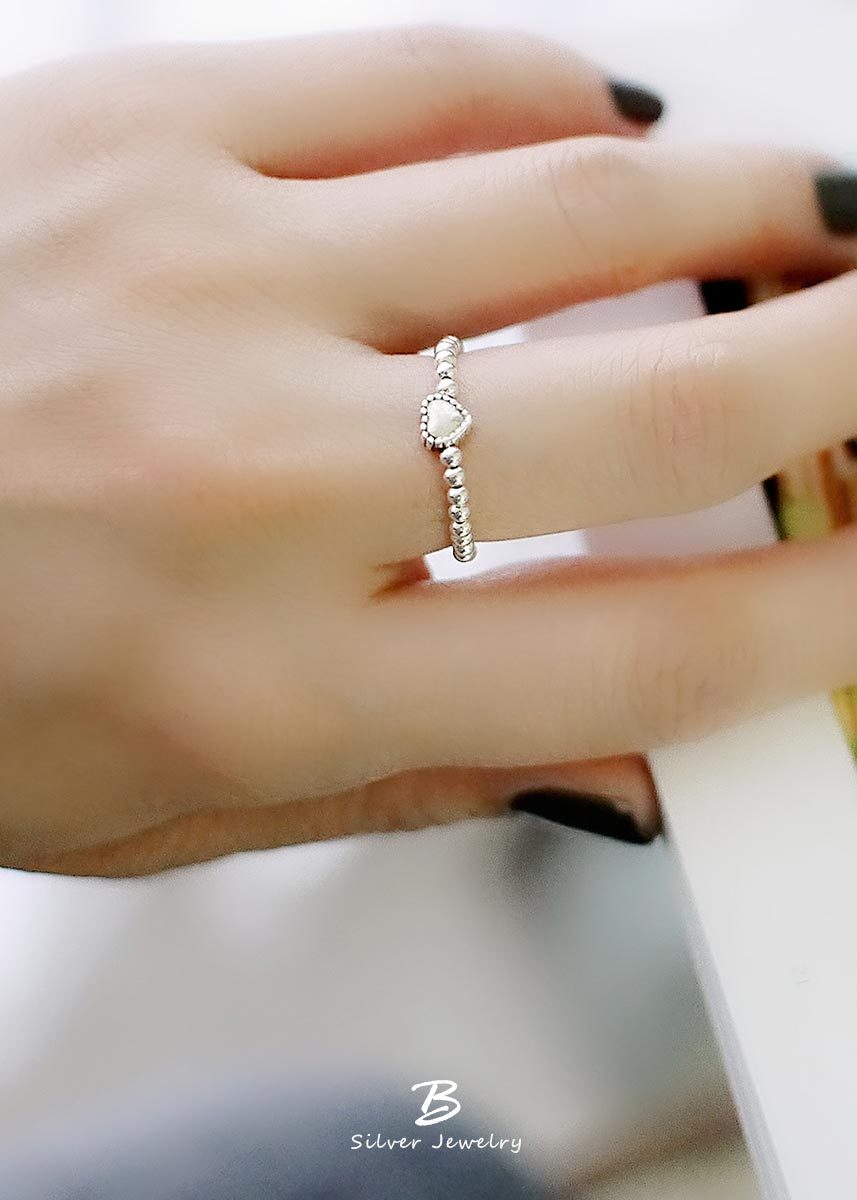 很特別的925純銀串珠戒指,以愛心點綴,展現隨性、自在的美。