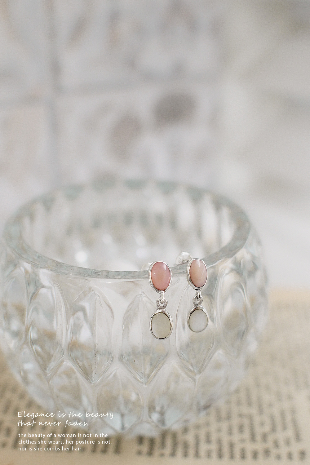 粉色搭配白色珍珠母貝