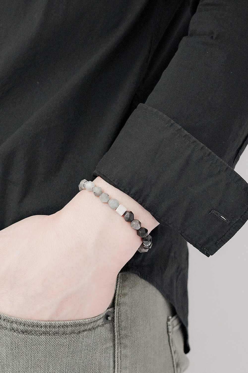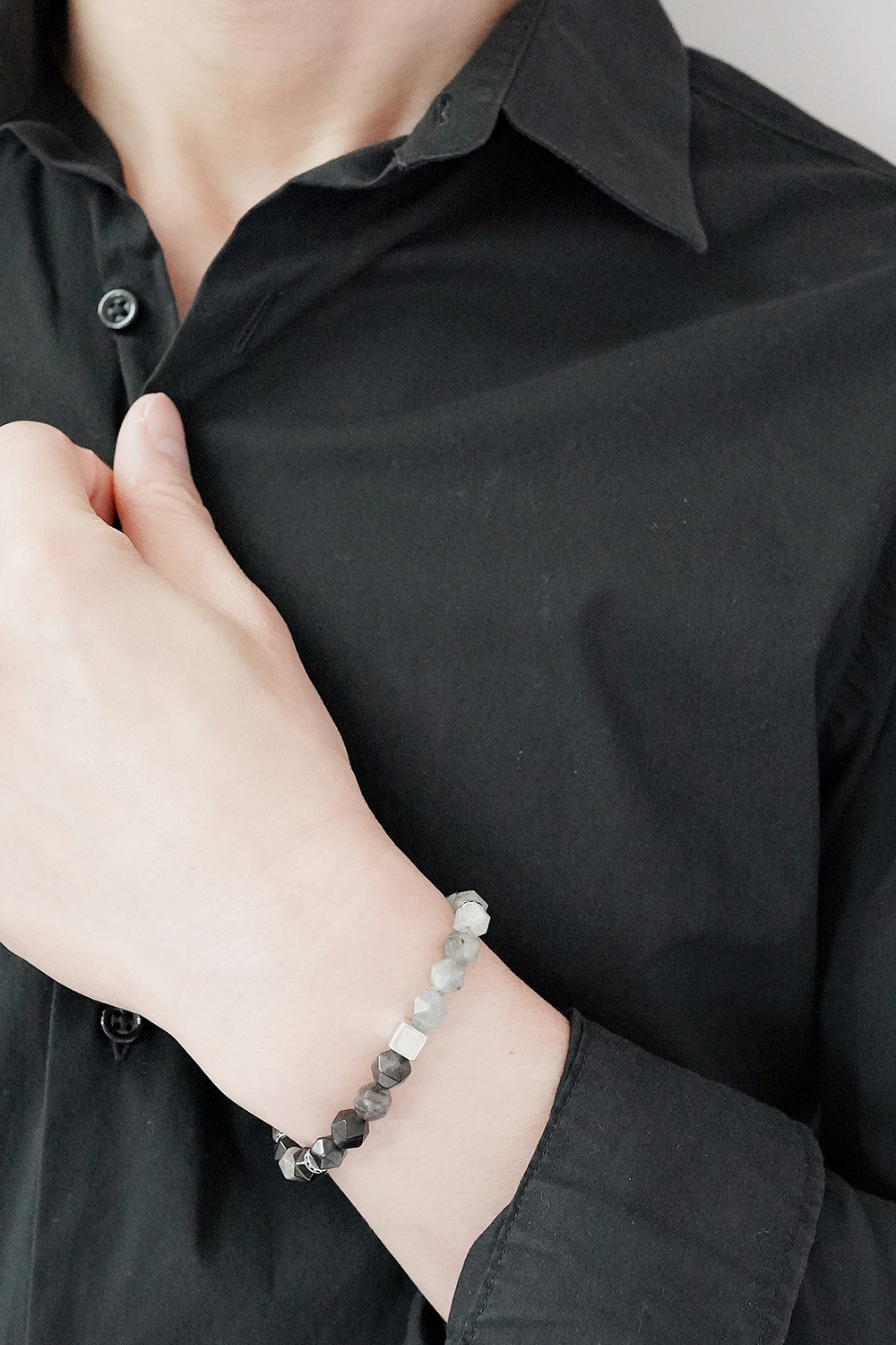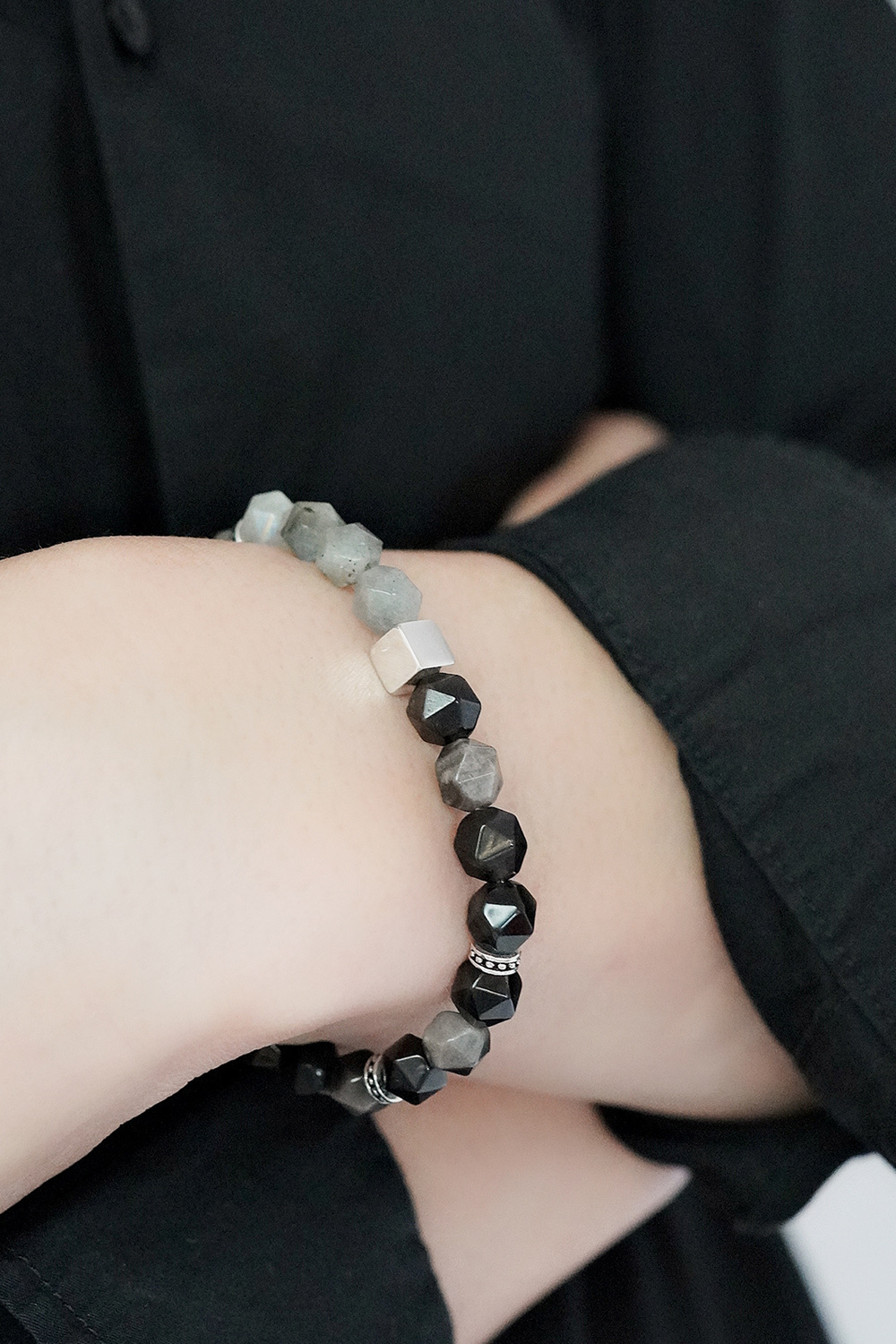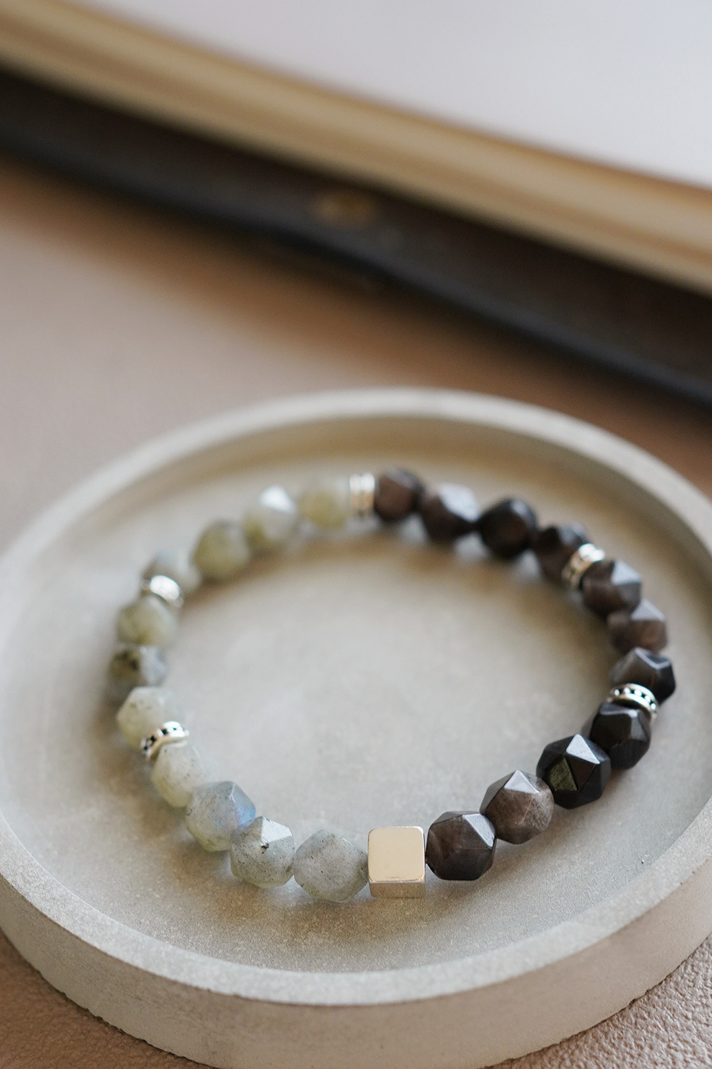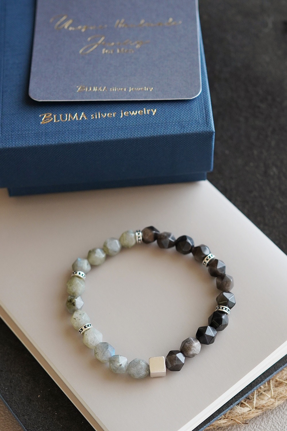 BLUMA 霧影純銀手鍊(拉長石/銀曜石)