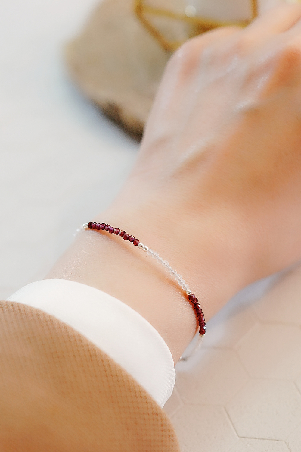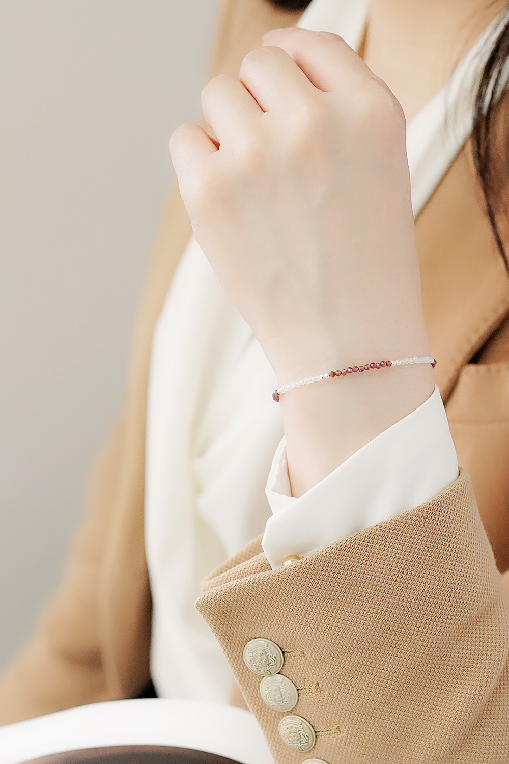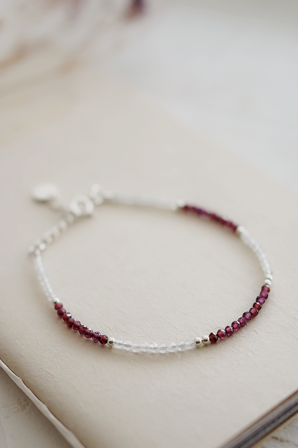 BLUMA月光石紅石榴石波爾多之夜925純銀手鍊
