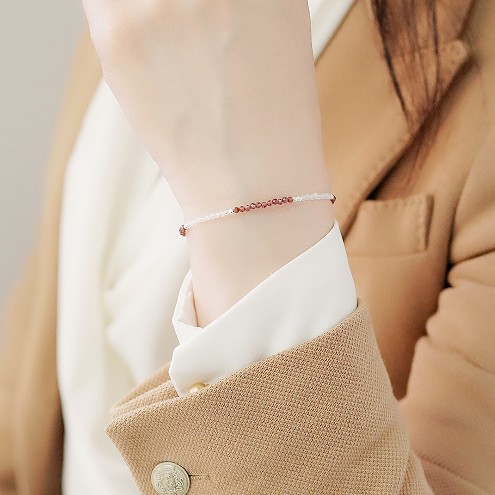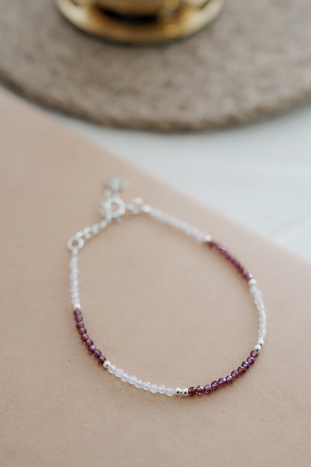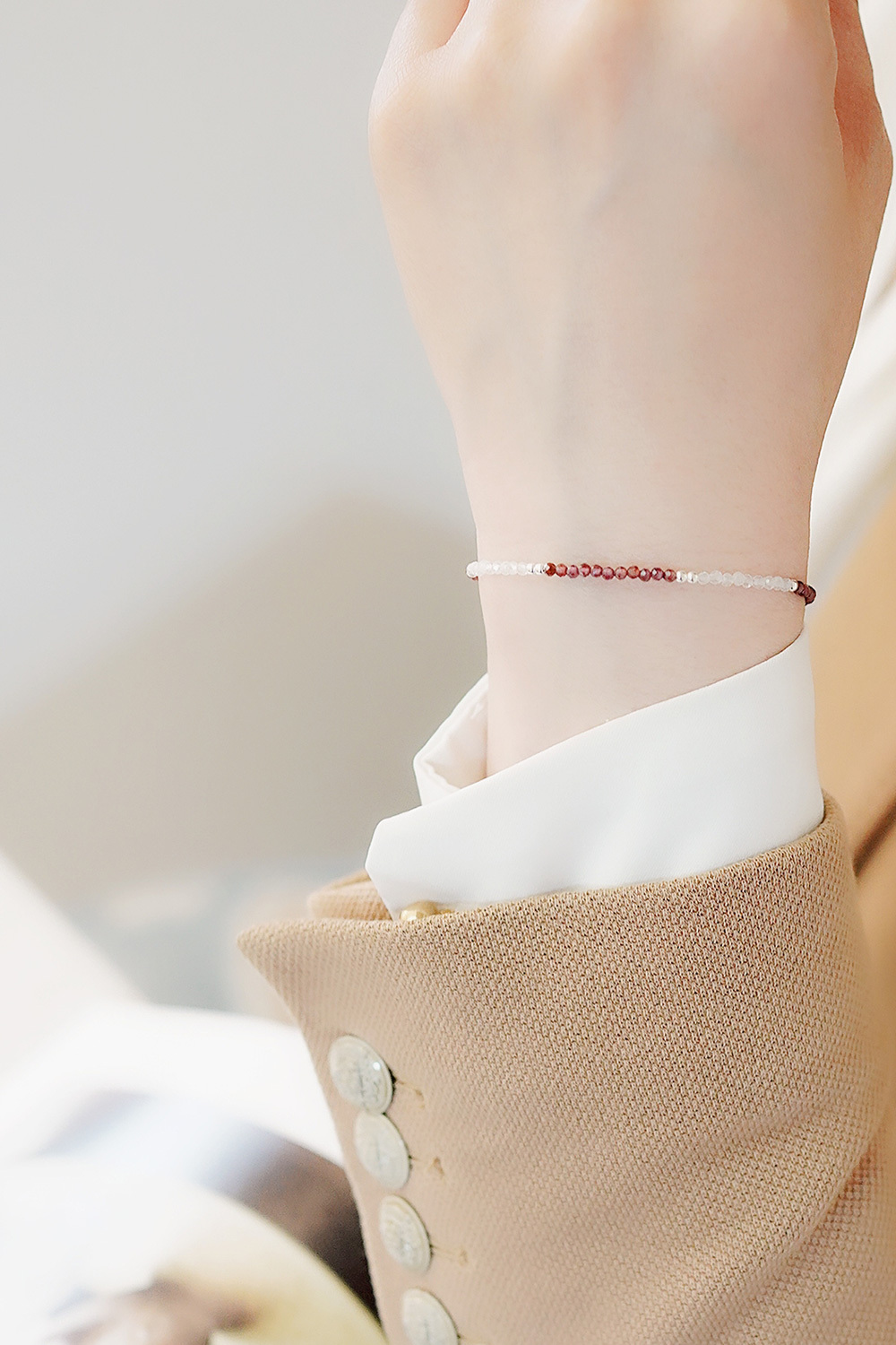 BLUMA月光石紅石榴石波爾多之夜925純銀手鍊