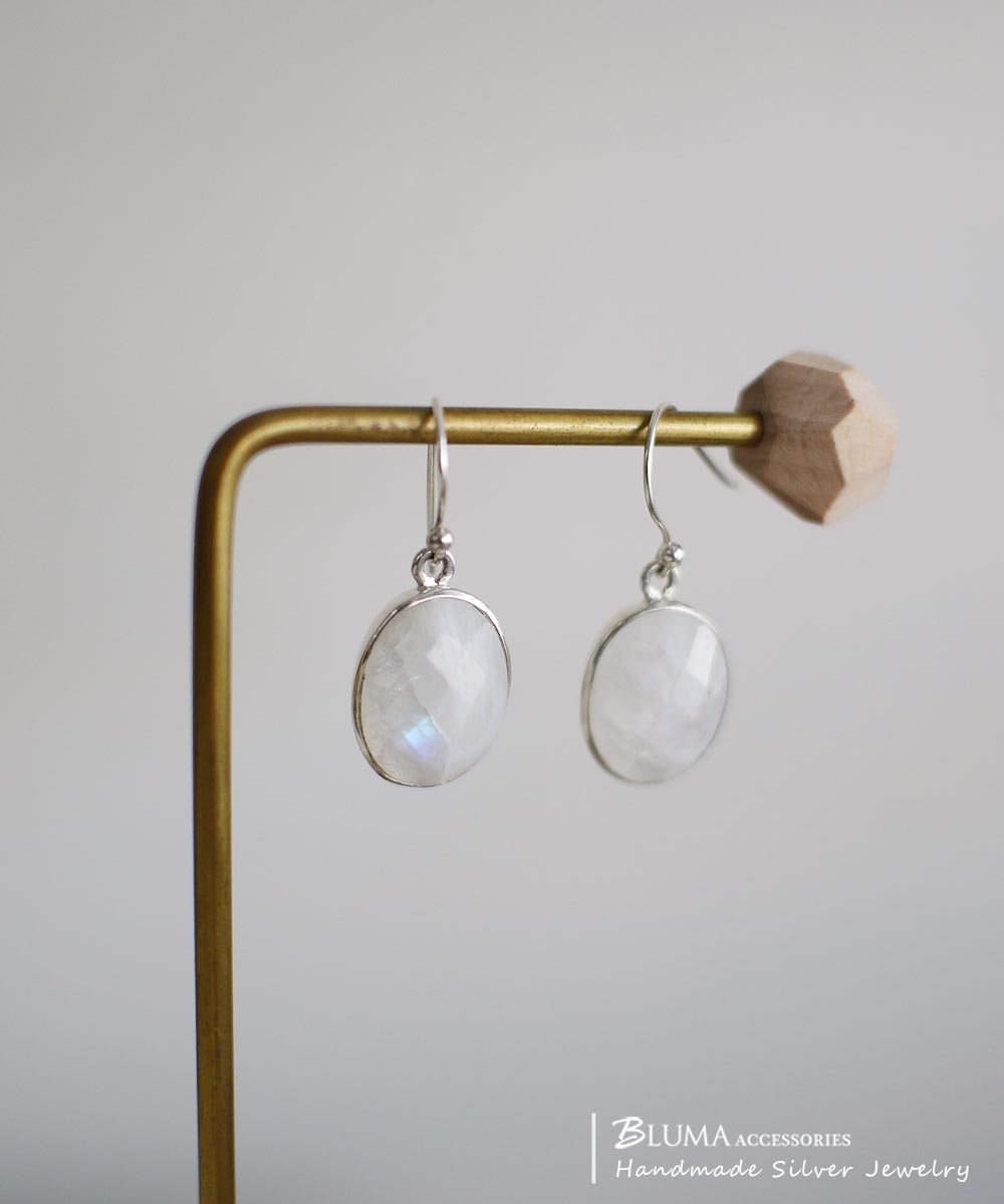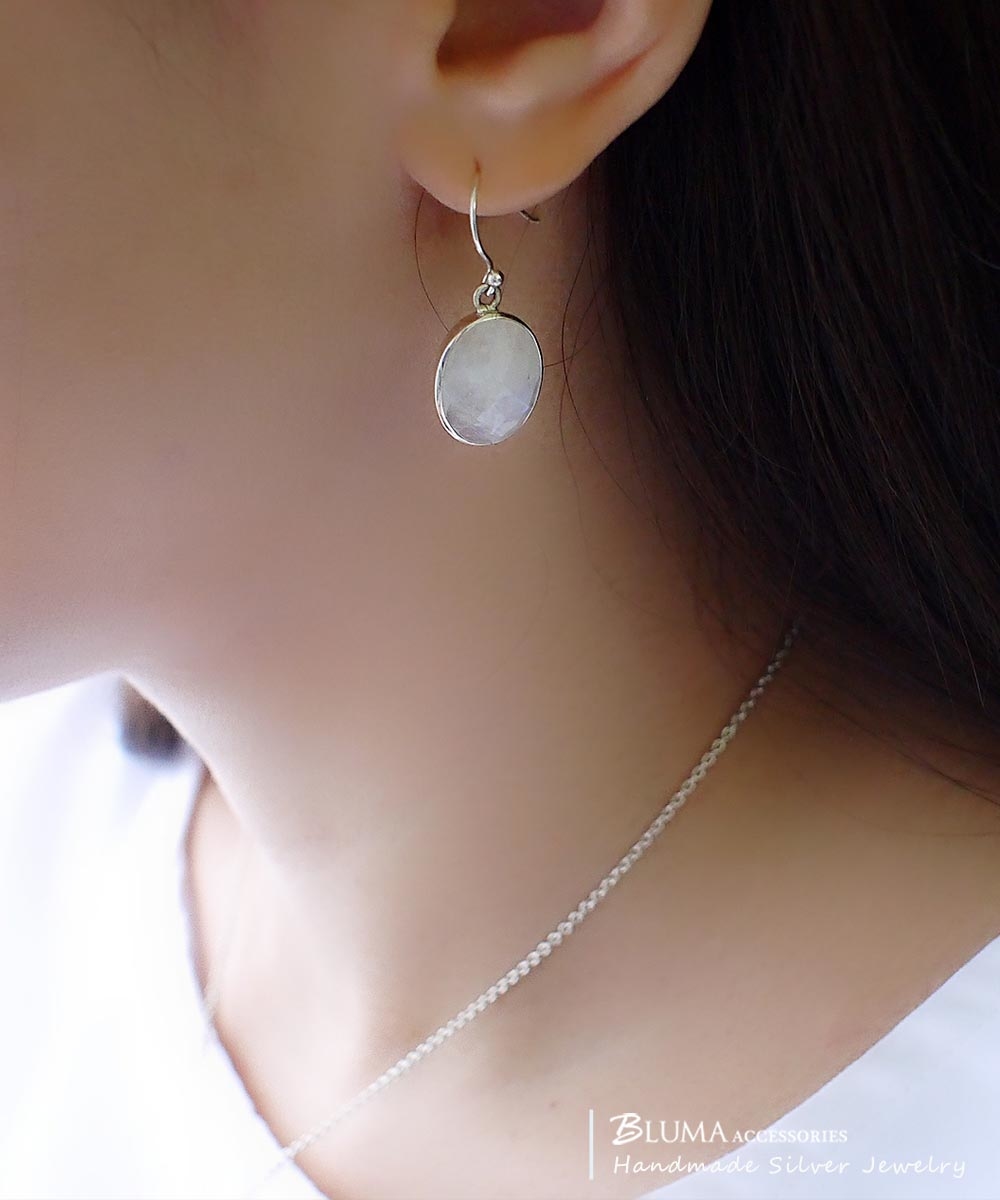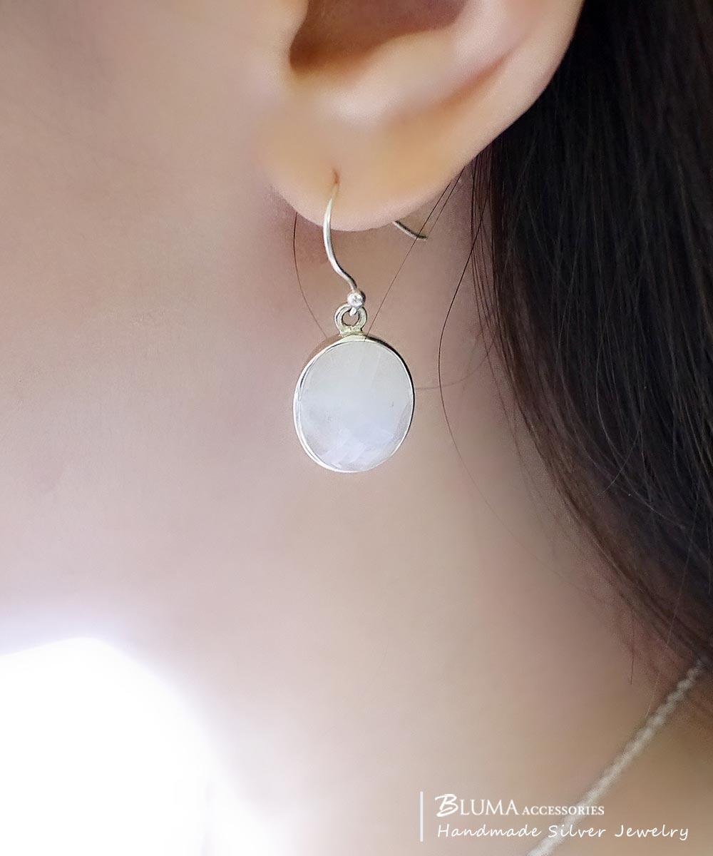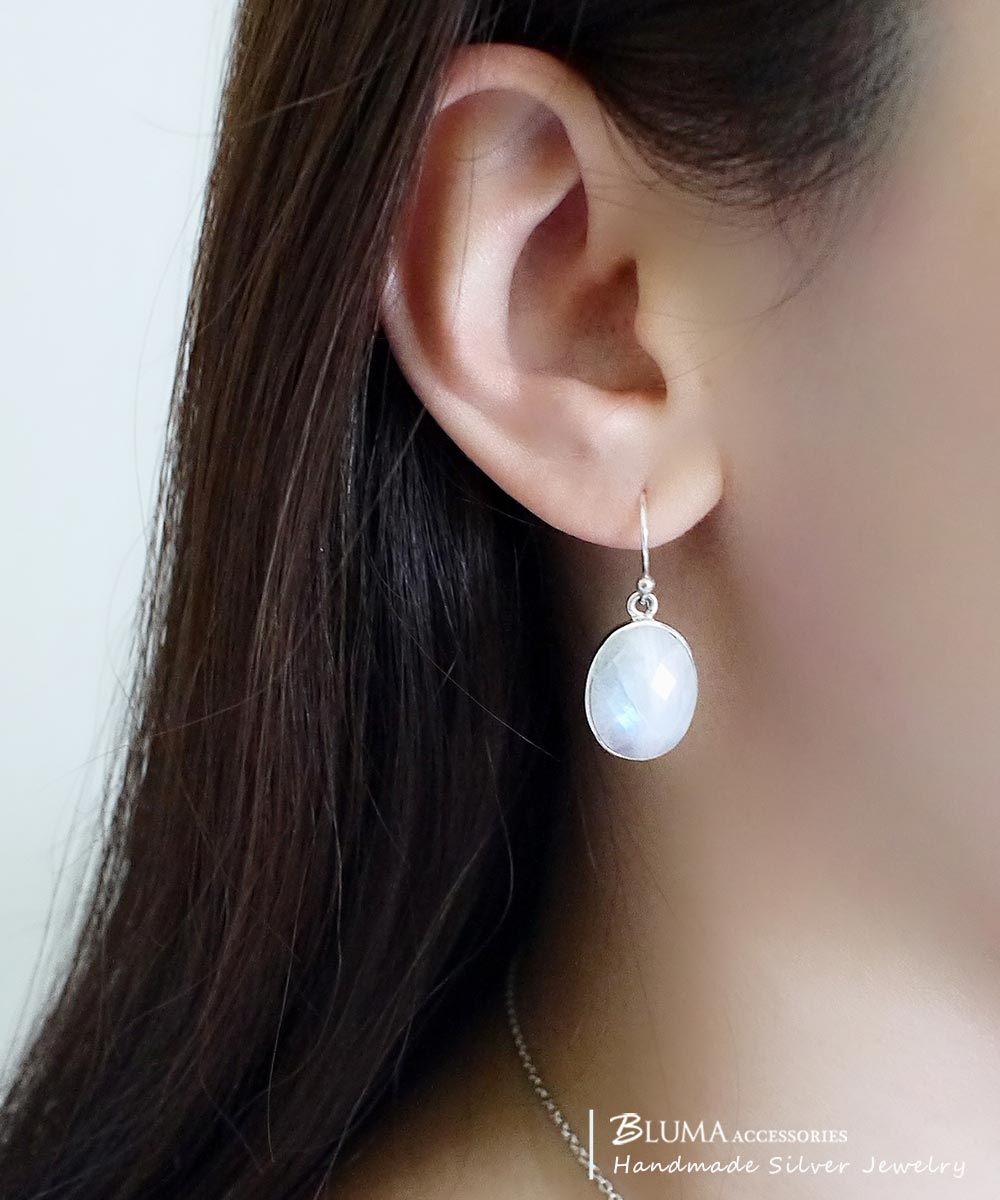 帶著七彩藍光的月光石原礦純銀耳環,耳勾式設計,優雅垂墜在耳邊,讓人忍不住多看一眼!