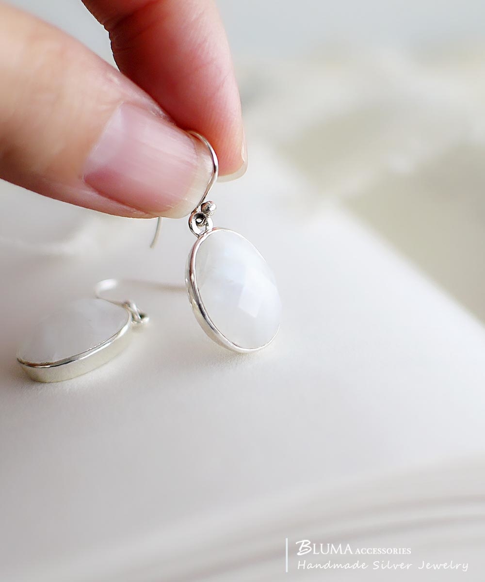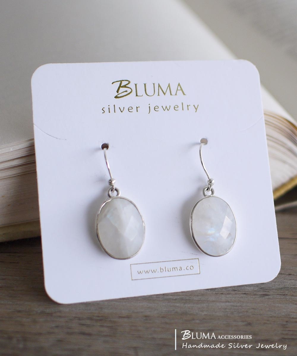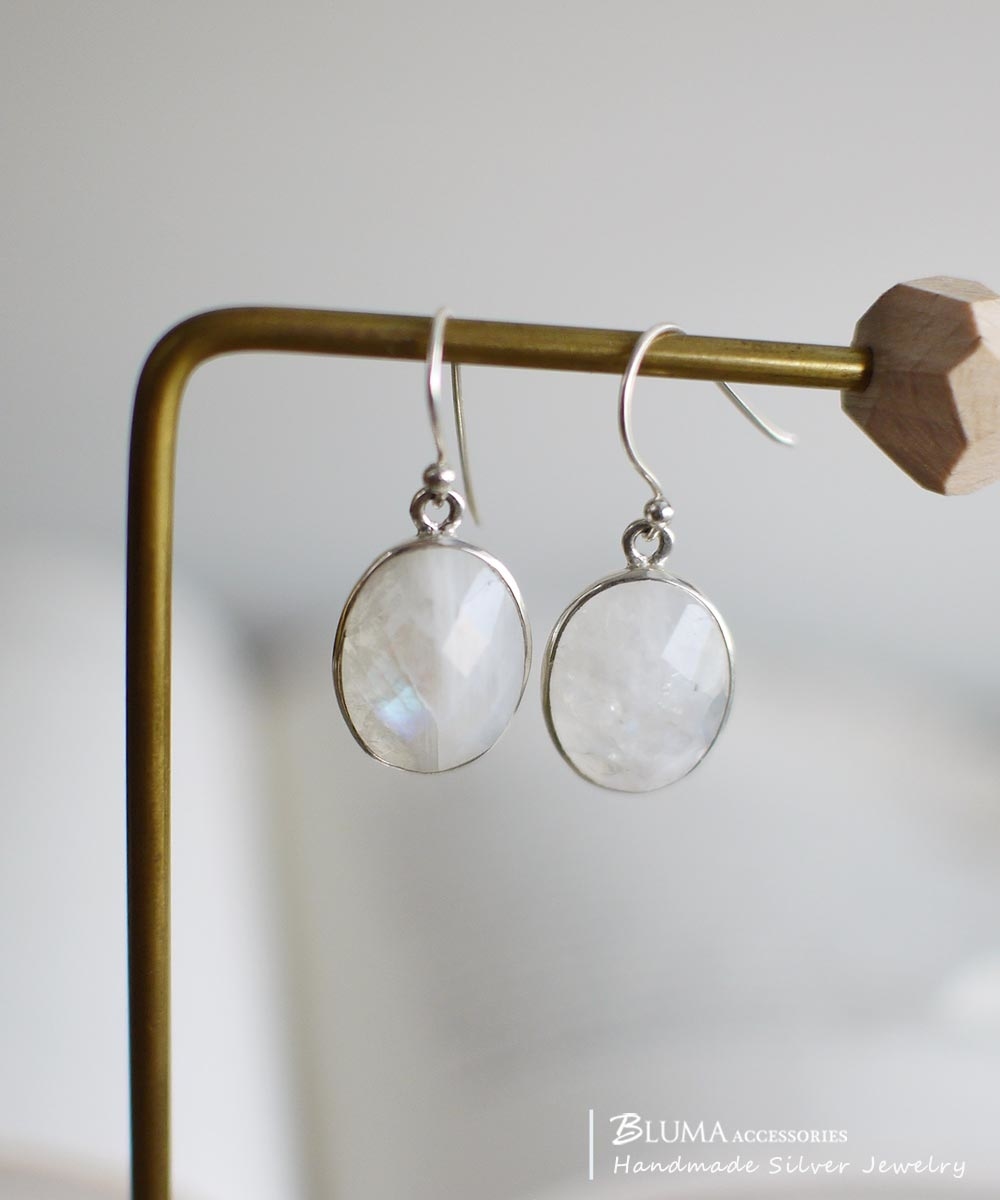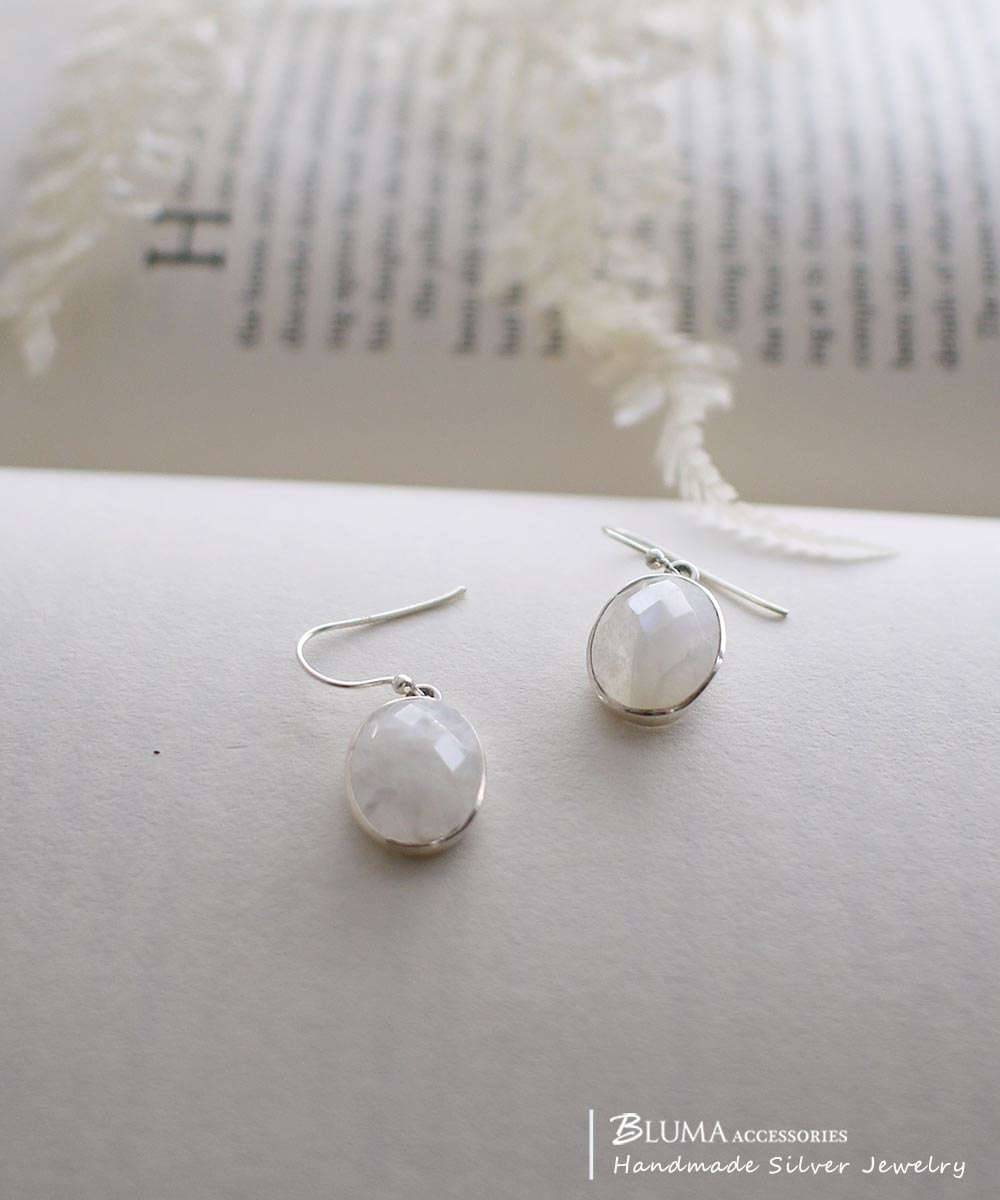 帶著七彩藍光的月光石原礦純銀耳環,耳勾式設計,優雅垂墜在耳邊,讓人忍不住多看一眼!