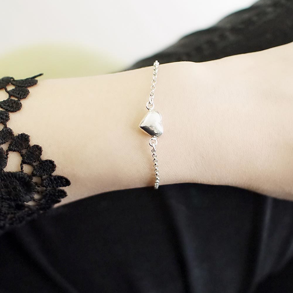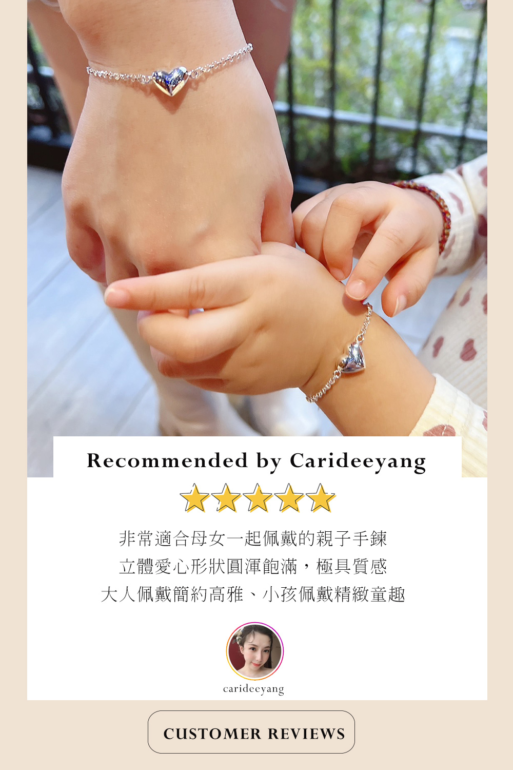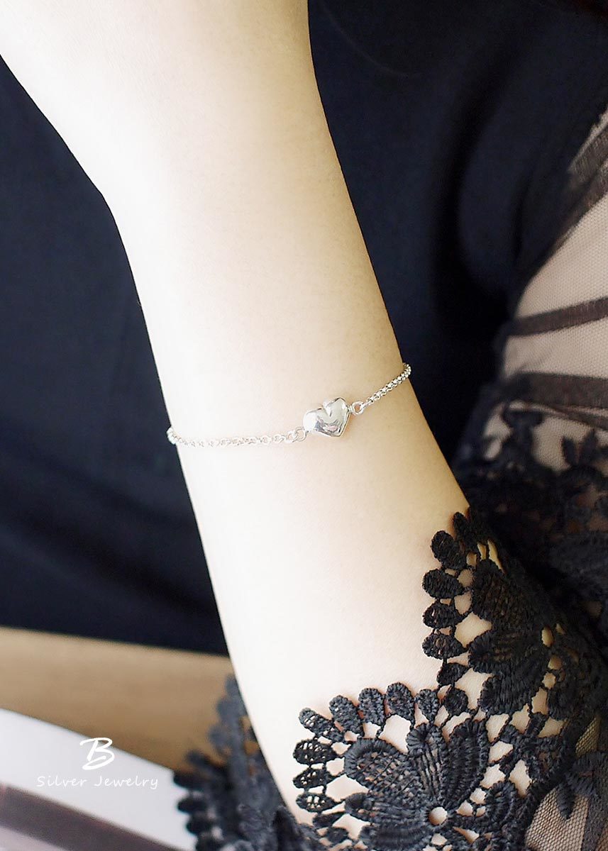 獨家訂製的925純銀愛心手鍊,形狀圓潤飽滿,線條簡約,質感高雅。