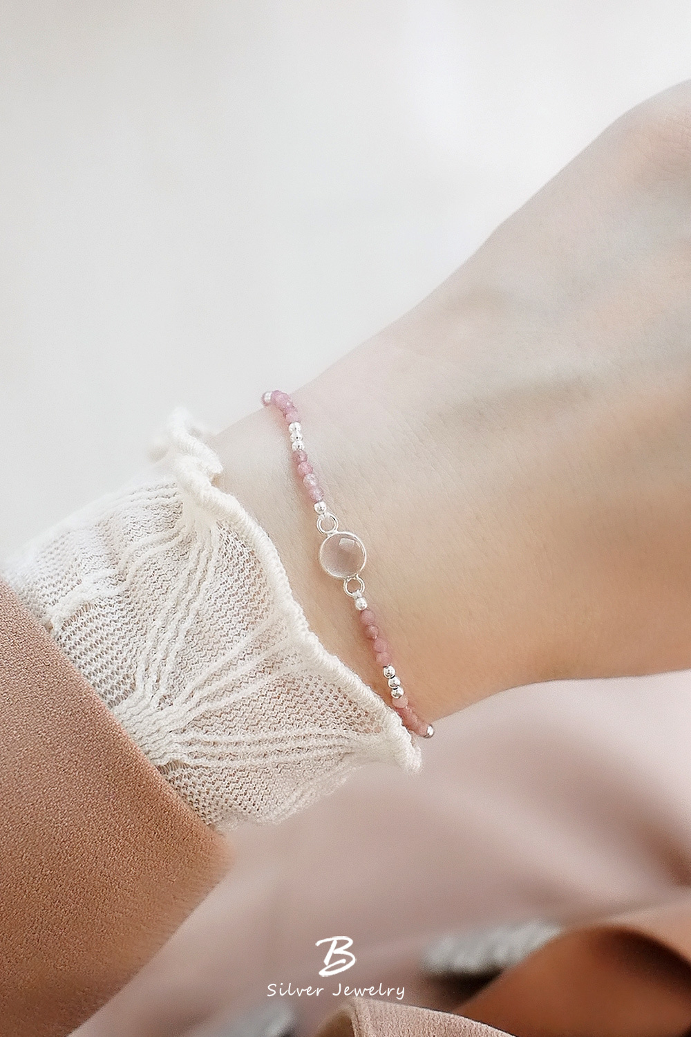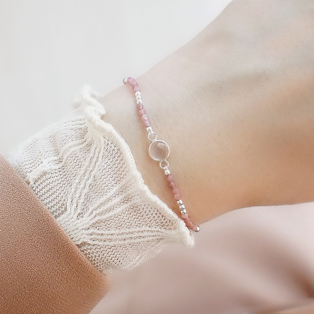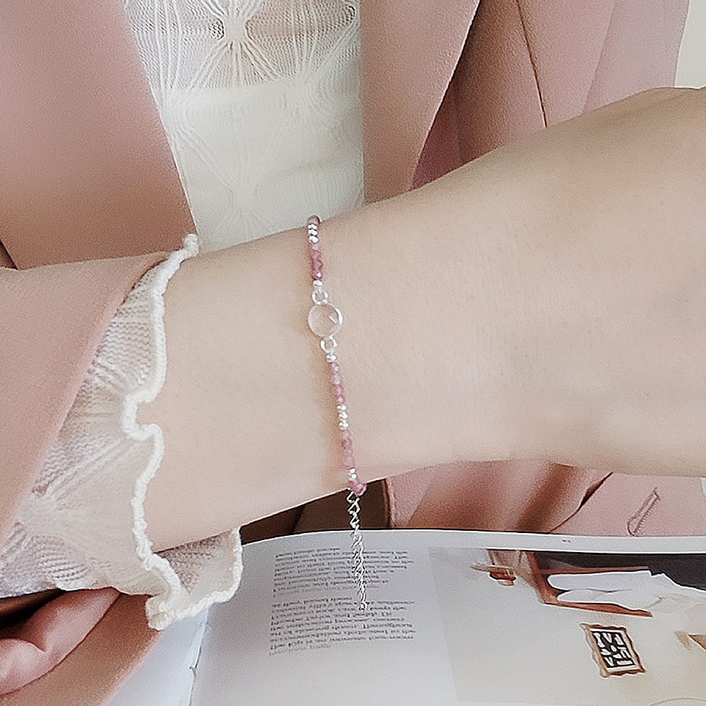 BLUMA粉紅光洗禮純銀手鍊(粉晶+粉紅碧璽)