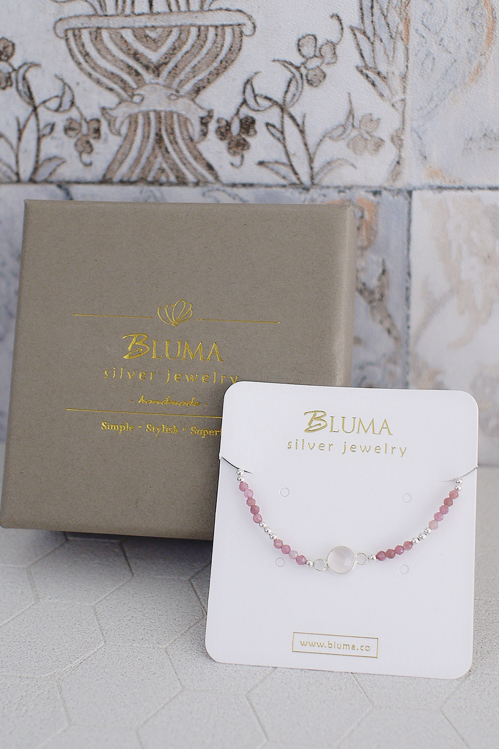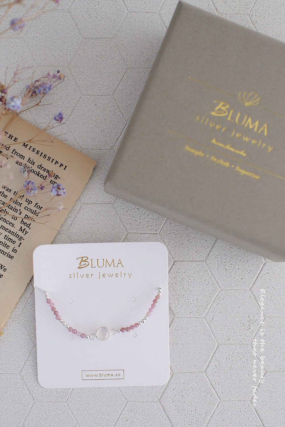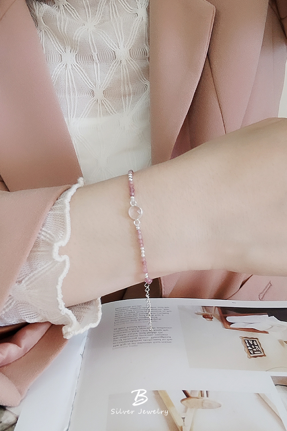 BLUMA粉紅光洗禮純銀手鍊(粉晶+粉紅碧璽)