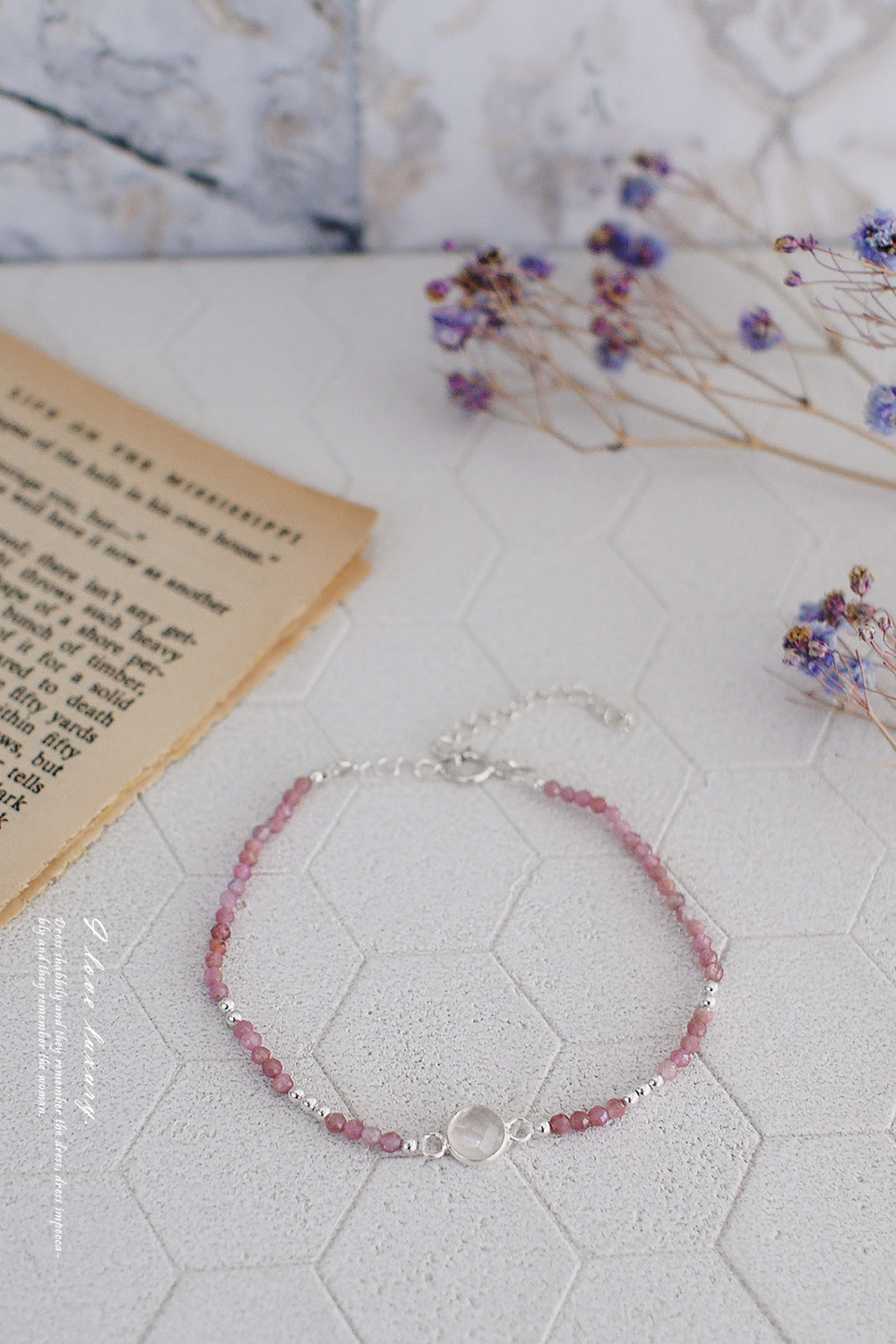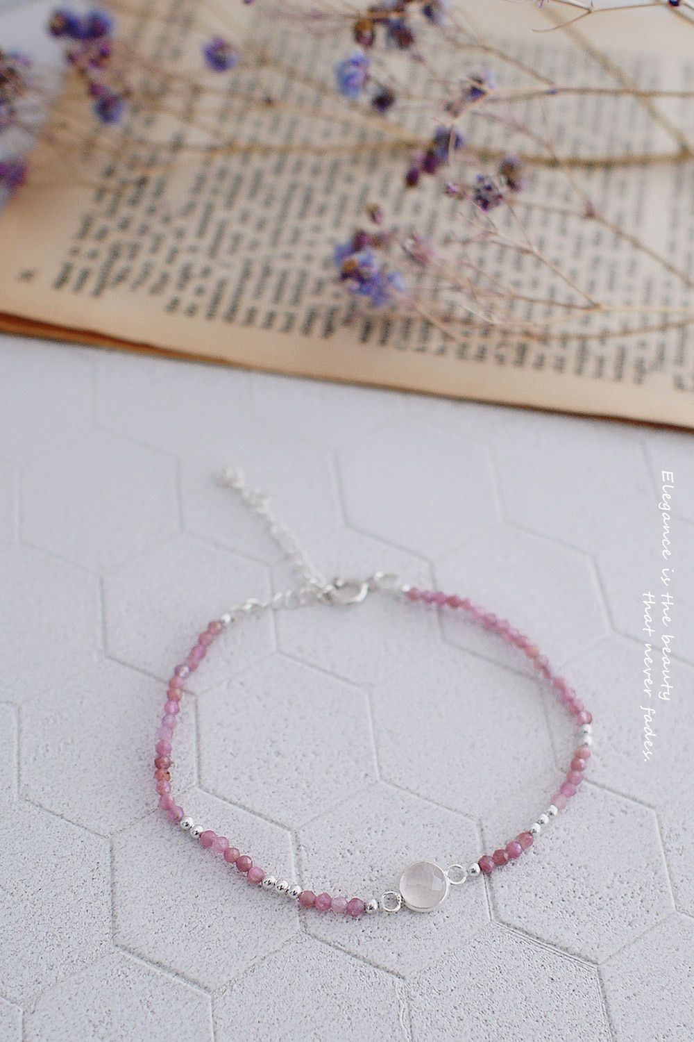 採用小顆的粉紅碧璽與925純銀珠