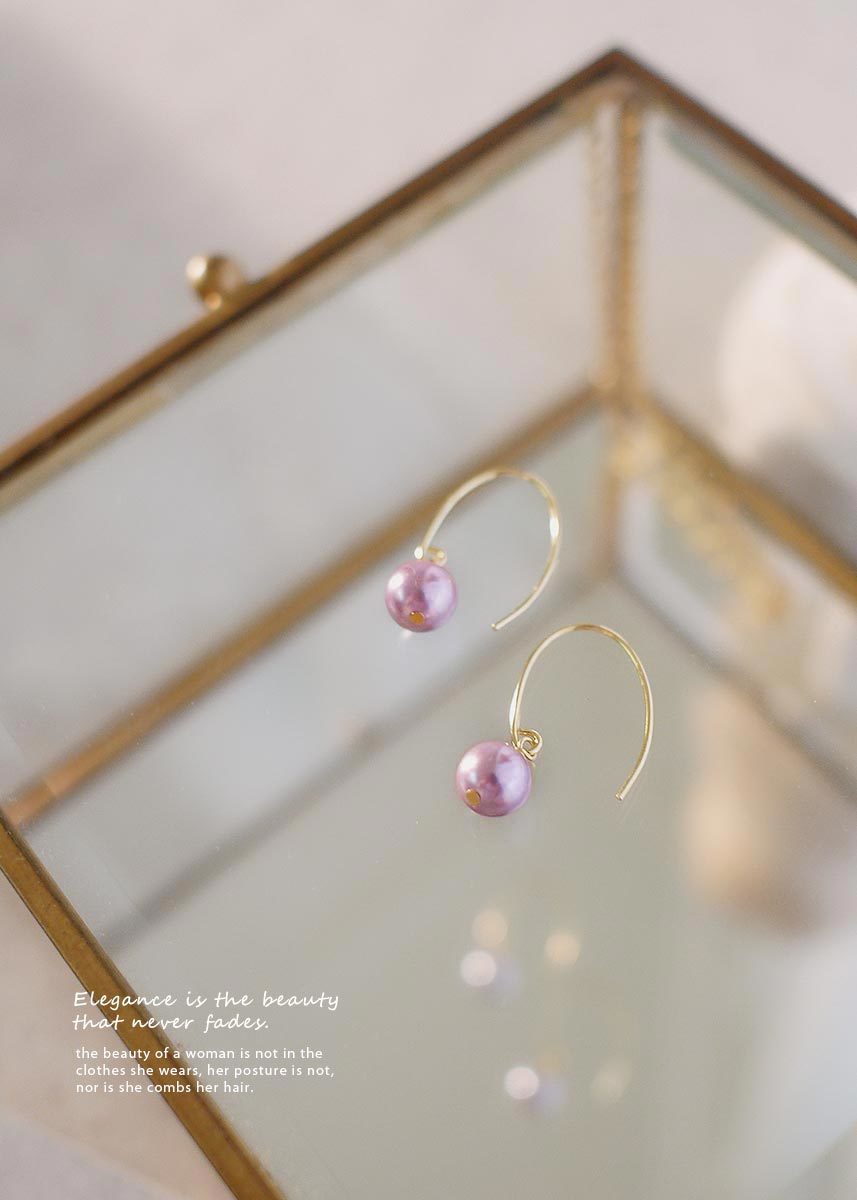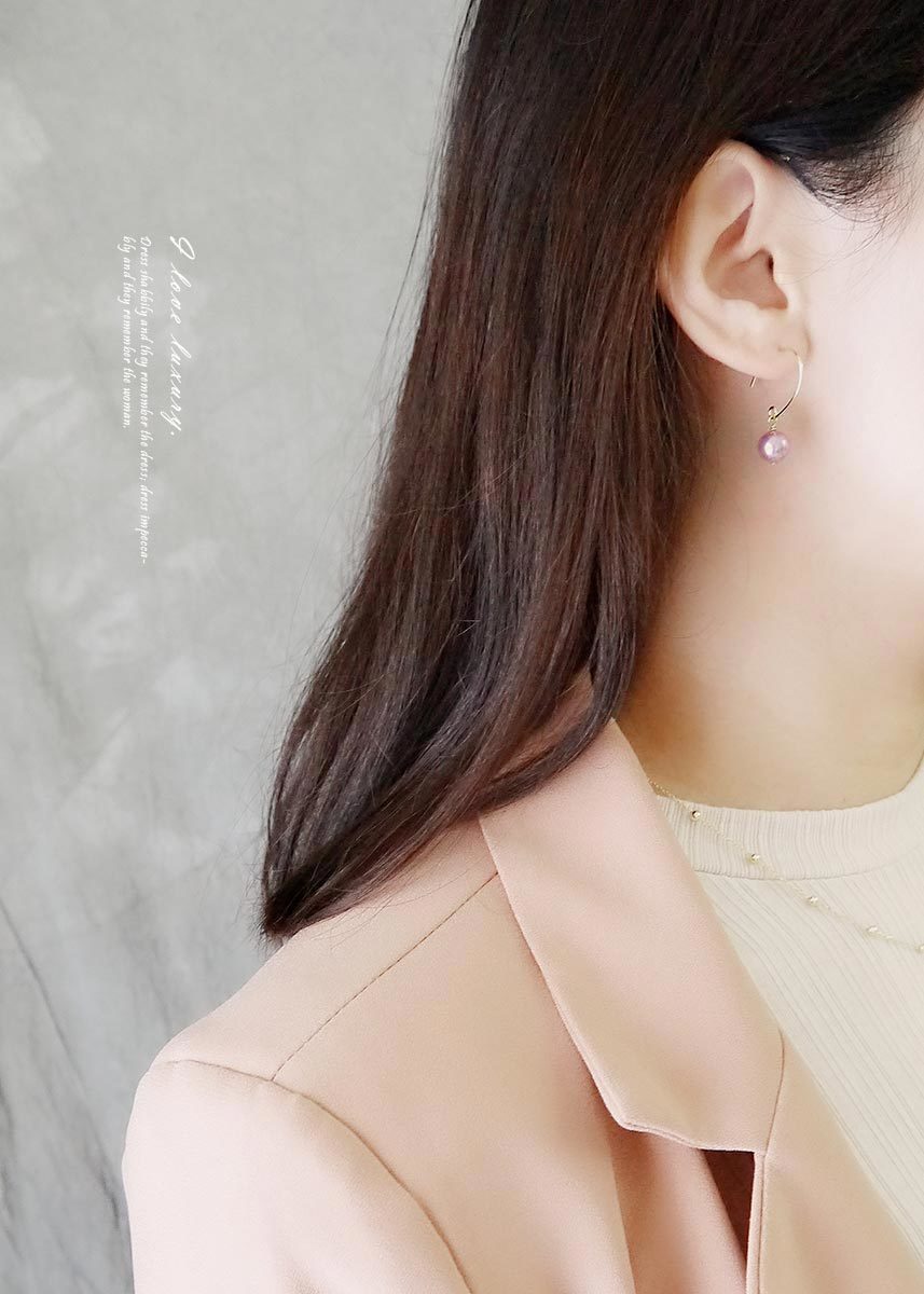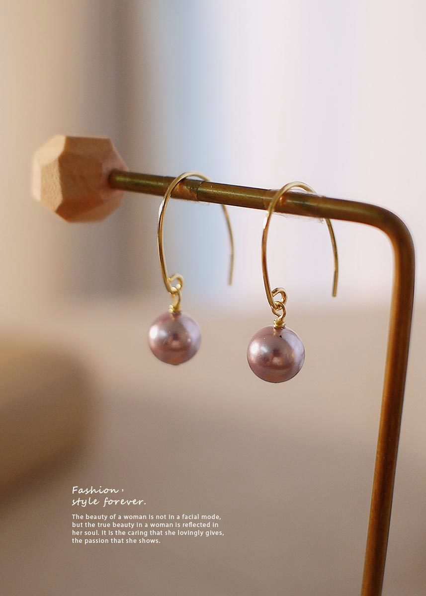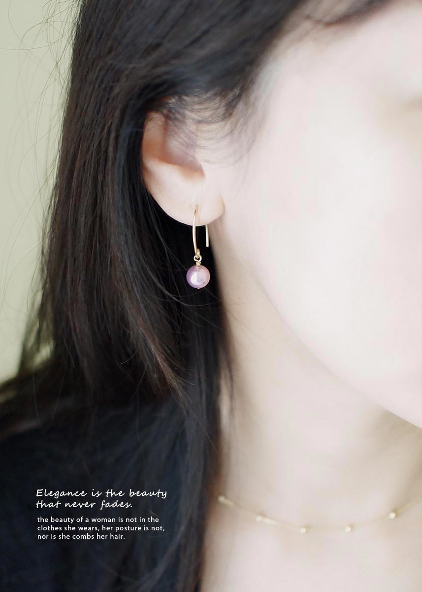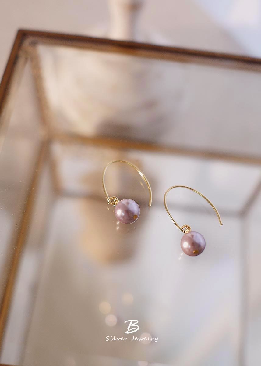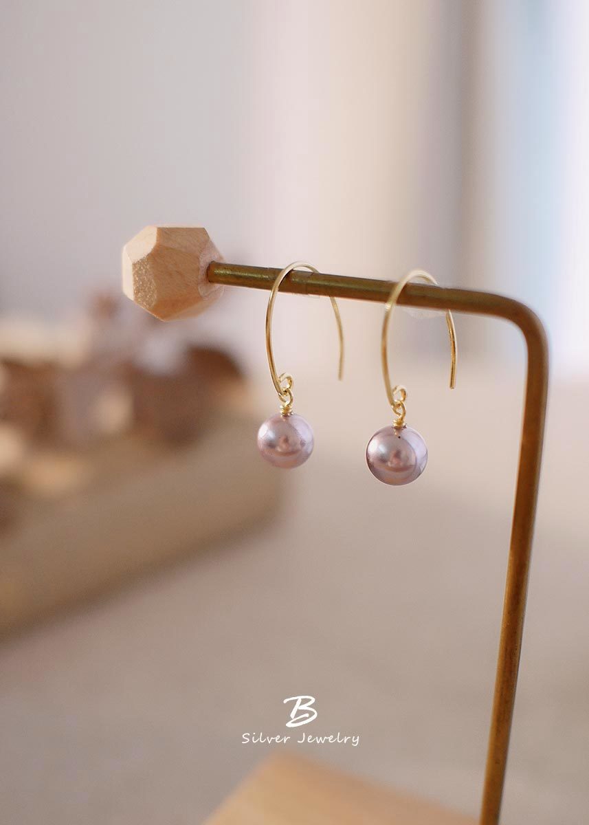 925純銀鍍14K金耳勾,搭配薰衣草紫貝珠,展現純粹高雅的美感。