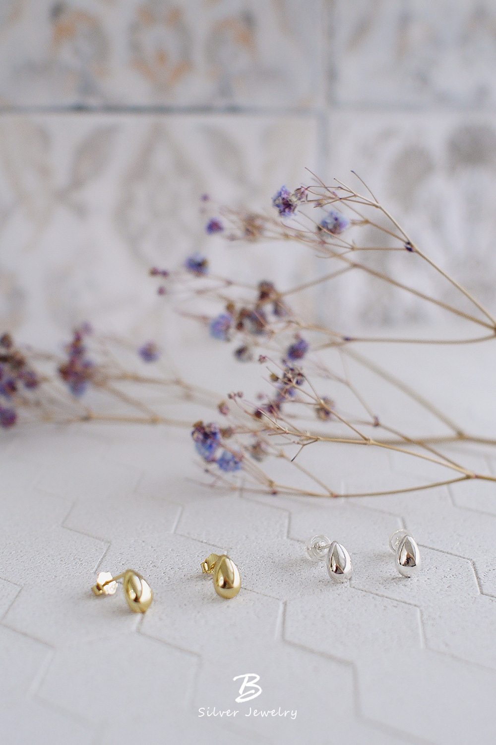 BLUMA雨滴純銀耳環(金/銀兩色)