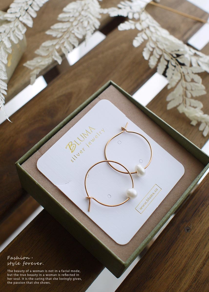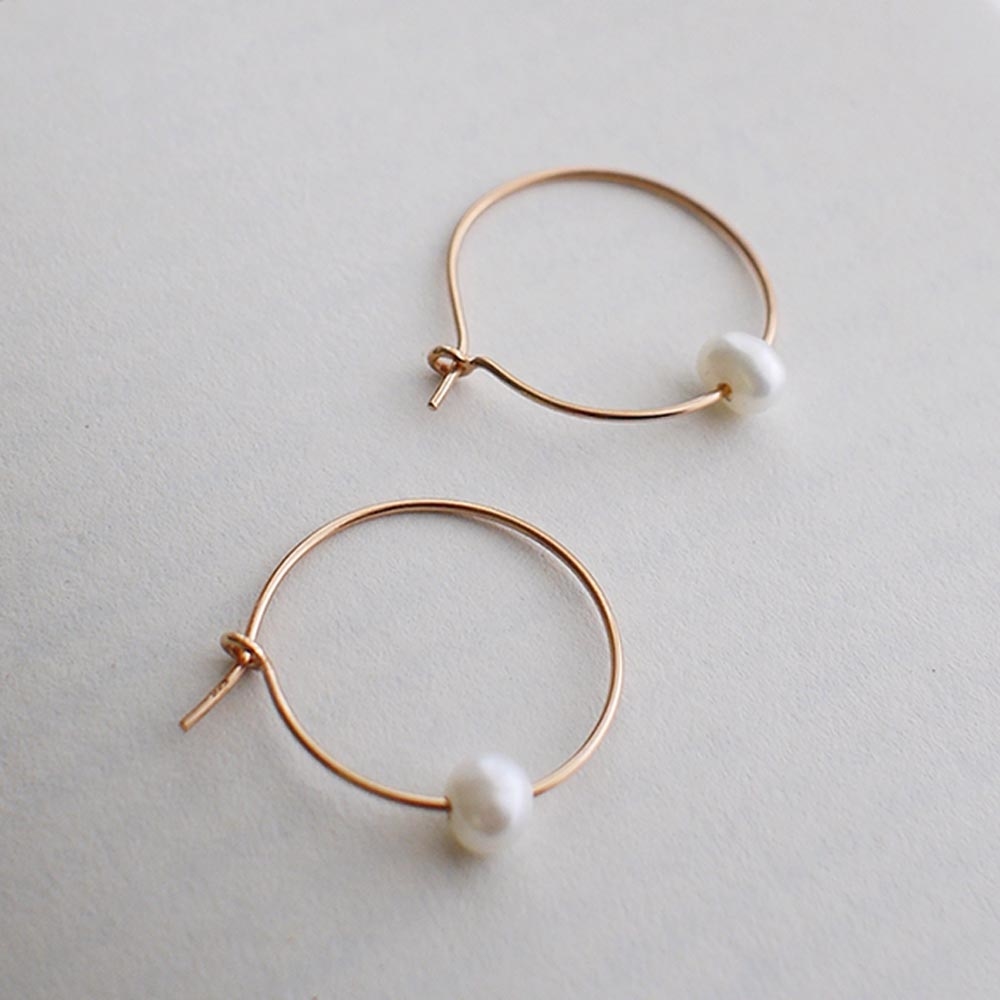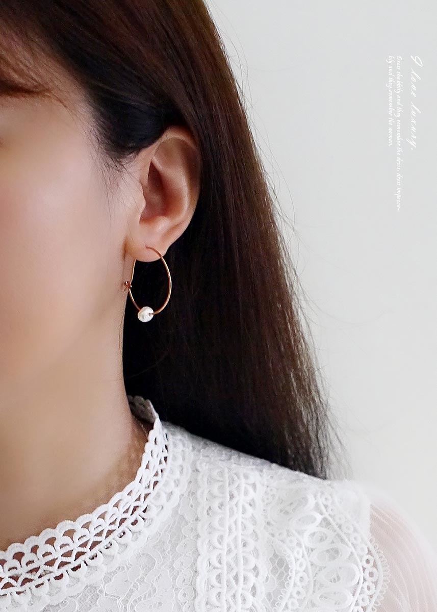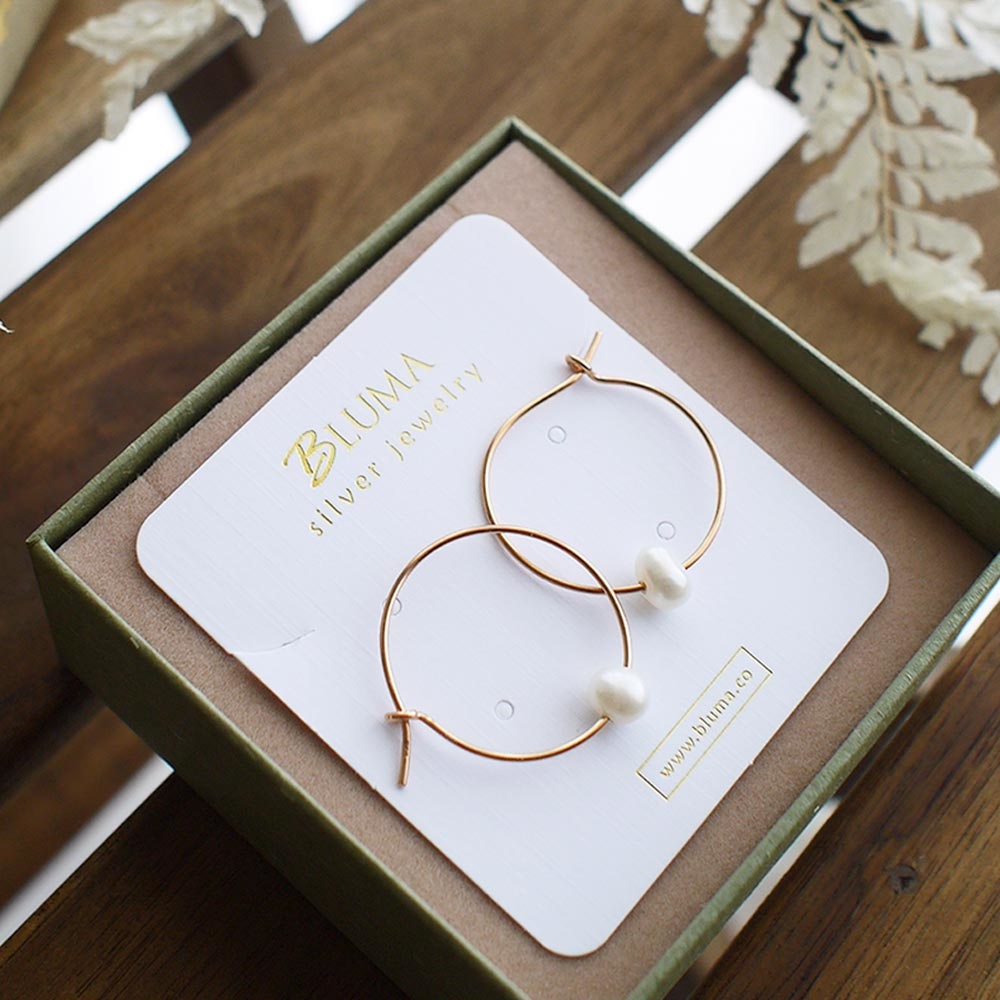 925純銀鍍玫瑰金耳環,以白色不規則淡水珍珠點綴,簡單有設計感。
