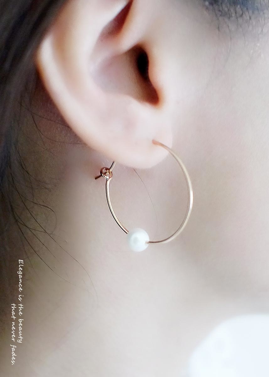 很經典的實搭款式,玫瑰金色與白珍珠的配色,很有女人味。