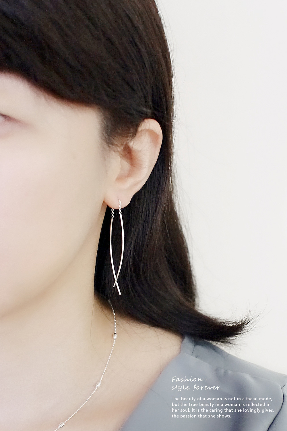 在耳邊垂墜出優美的弧線
