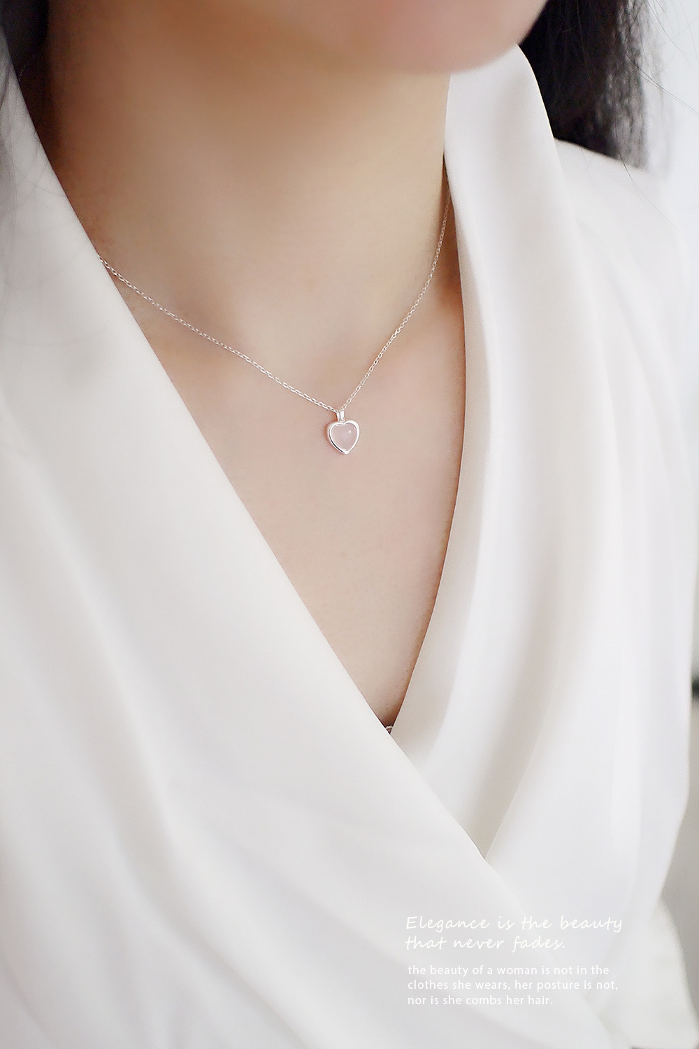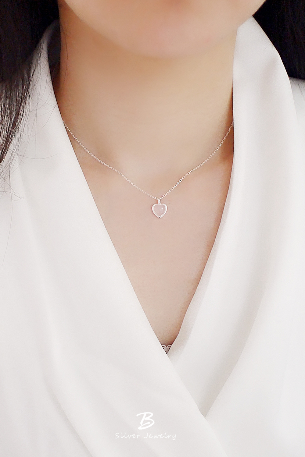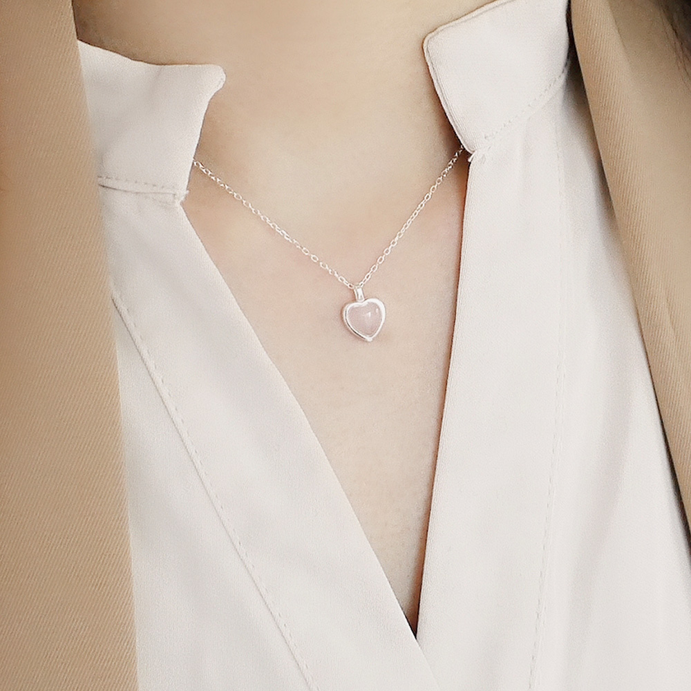 精緻的粉晶愛心搭配925純銀鍊