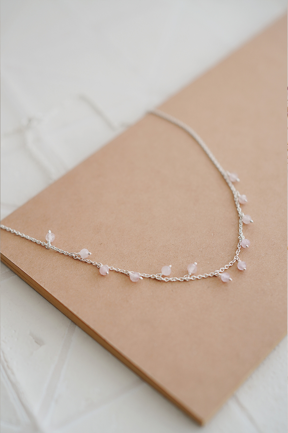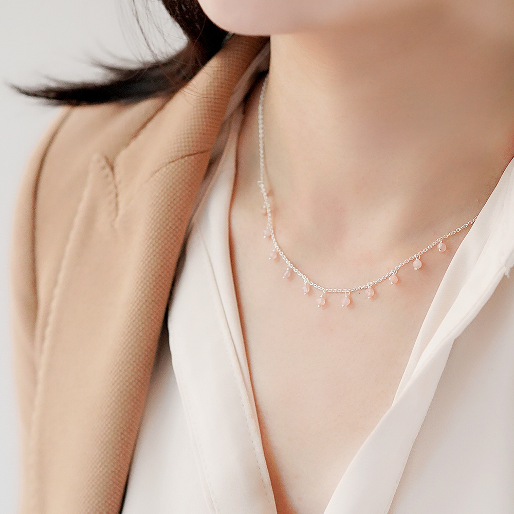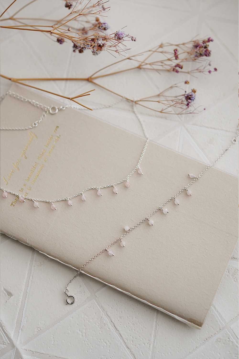 這一款採用天然粉晶,半透明的淡粉紅色,展現女生的浪漫氣息